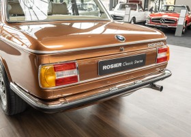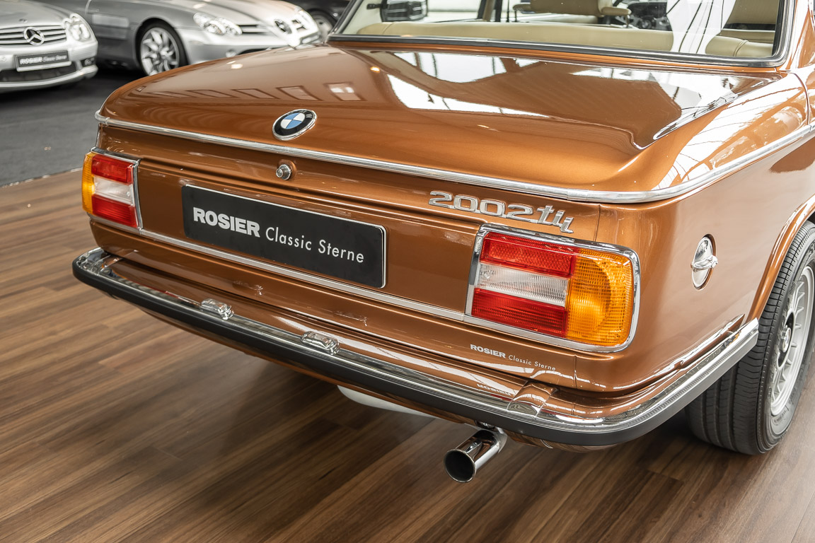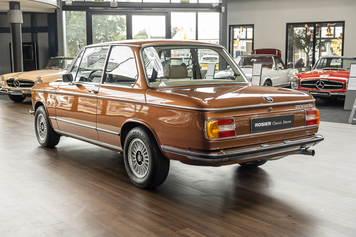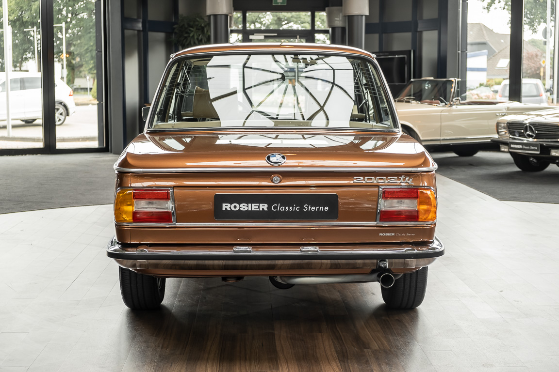 Wir freuen uns, Ihnen diesen BMW 2002tii aus dem Jahre 1974 anbieten zu dürfen. Der Auftritt in Sienabraun Metallic in Kombination mit beigem Leder steht diesem Fahrzeug ausgezeichnet. Die bereits werkseitig verbauten Extras machen diesen 2002 zu einem echten Schmuckstück. Mit Schiebedach, Klimaanlage, Colorverglasung sowie Leichtmetallfelgen blieben für damalige Verhältnisse keine Wünsche offen. Im Jahre 2014 wurde das Fahrzeug aus Evanston in Illinois in sein Ursprungsland zurückgeholt. Trotz des soliden Zustandes entschied sich der Besitzer für einen vollumfänglichen Neuaufbau dieses Traum-Bayern, bei dem weder Kosten noch Mühen gescheut wurden. So wurde das Fahrzeug in den Jahren 2014 und 2015 umfangreich und auf höchstem Niveau bei einem BMW- und Alpina-Klassikspezialisten in Albaching, nahe München restauriert. Das Ergebnis dieser Qualitätsarbeit kann sich sehen lassen: Der Motor wurde aufwändig auf den Deutschen Standard umgebaut – inklusive einer höheren Verdichtung. Das Original-Getriebe wurde überholt und alle Verschleißteile ausgetauscht. Bremsen, Lenken, Schalten: alles fühlt sich an, wie bei einem Jahreswagen. Ein absoluter Traum, bei dem man die „Freude am Fahren“ mit allen Sinnen erfährt! Steigen Sie ein und „erfahren“ Sie es selbst.