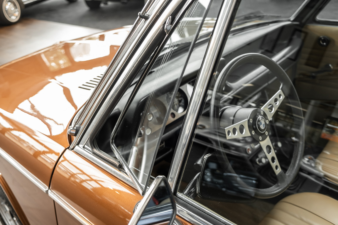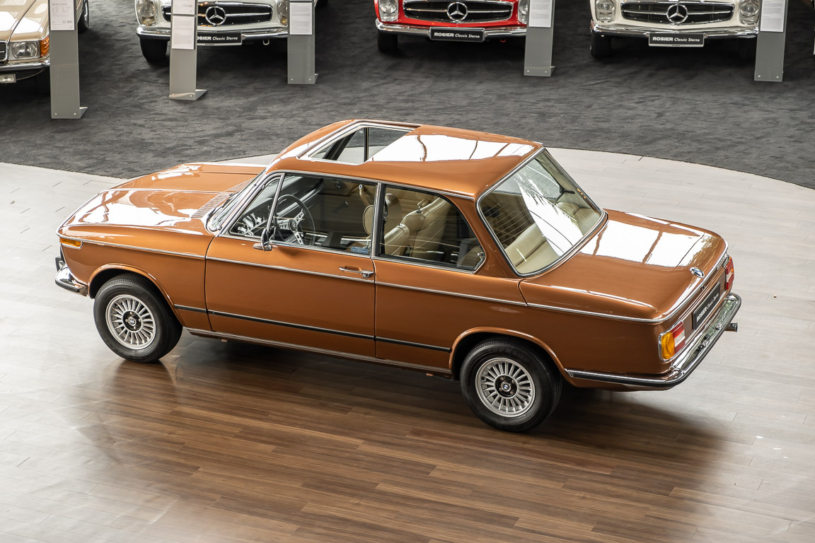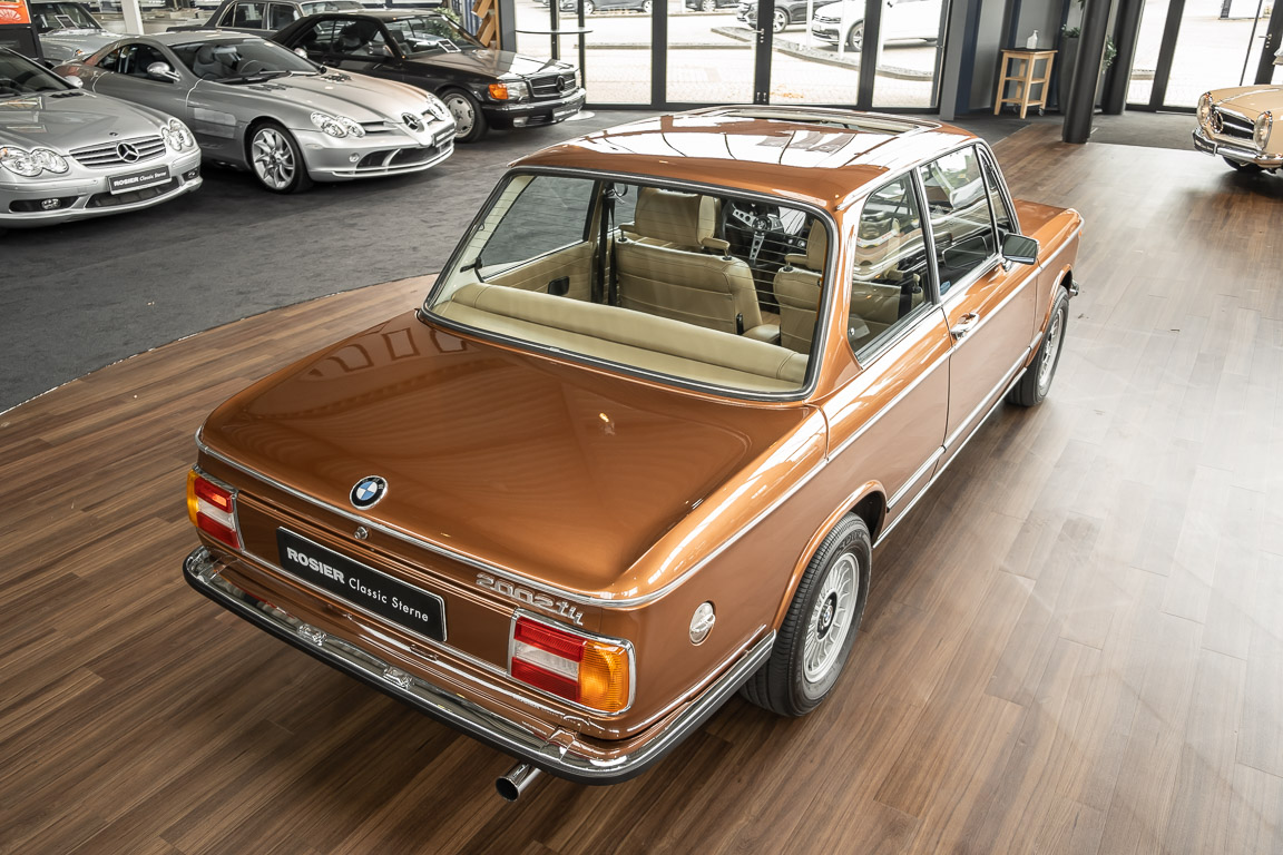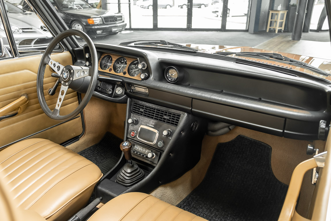 Wir freuen uns, Ihnen diesen BMW 2002tii aus dem Jahre 1974 anbieten zu dürfen. Der Auftritt in Sienabraun Metallic in Kombination mit beigem Leder steht diesem Fahrzeug ausgezeichnet. Die bereits werkseitig verbauten Extras machen diesen 2002 zu einem echten Schmuckstück. Mit Schiebedach, Klimaanlage, Colorverglasung sowie Leichtmetallfelgen blieben für damalige Verhältnisse keine Wünsche offen. Im Jahre 2014 wurde das Fahrzeug aus Evanston in Illinois in sein Ursprungsland zurückgeholt. Trotz des soliden Zustandes entschied sich der Besitzer für einen vollumfänglichen Neuaufbau dieses Traum-Bayern, bei dem weder Kosten noch Mühen gescheut wurden. So wurde das Fahrzeug in den Jahren 2014 und 2015 umfangreich und auf höchstem Niveau bei einem BMW- und Alpina-Klassikspezialisten in Albaching, nahe München restauriert. Das Ergebnis dieser Qualitätsarbeit kann sich sehen lassen: Der Motor wurde aufwändig auf den Deutschen Standard umgebaut – inklusive einer höheren Verdichtung. Das Original-Getriebe wurde überholt und alle Verschleißteile ausgetauscht. Bremsen, Lenken, Schalten: alles fühlt sich an, wie bei einem Jahreswagen. Ein absoluter Traum, bei dem man die „Freude am Fahren“ mit allen Sinnen erfährt! Steigen Sie ein und „erfahren“ Sie es selbst.