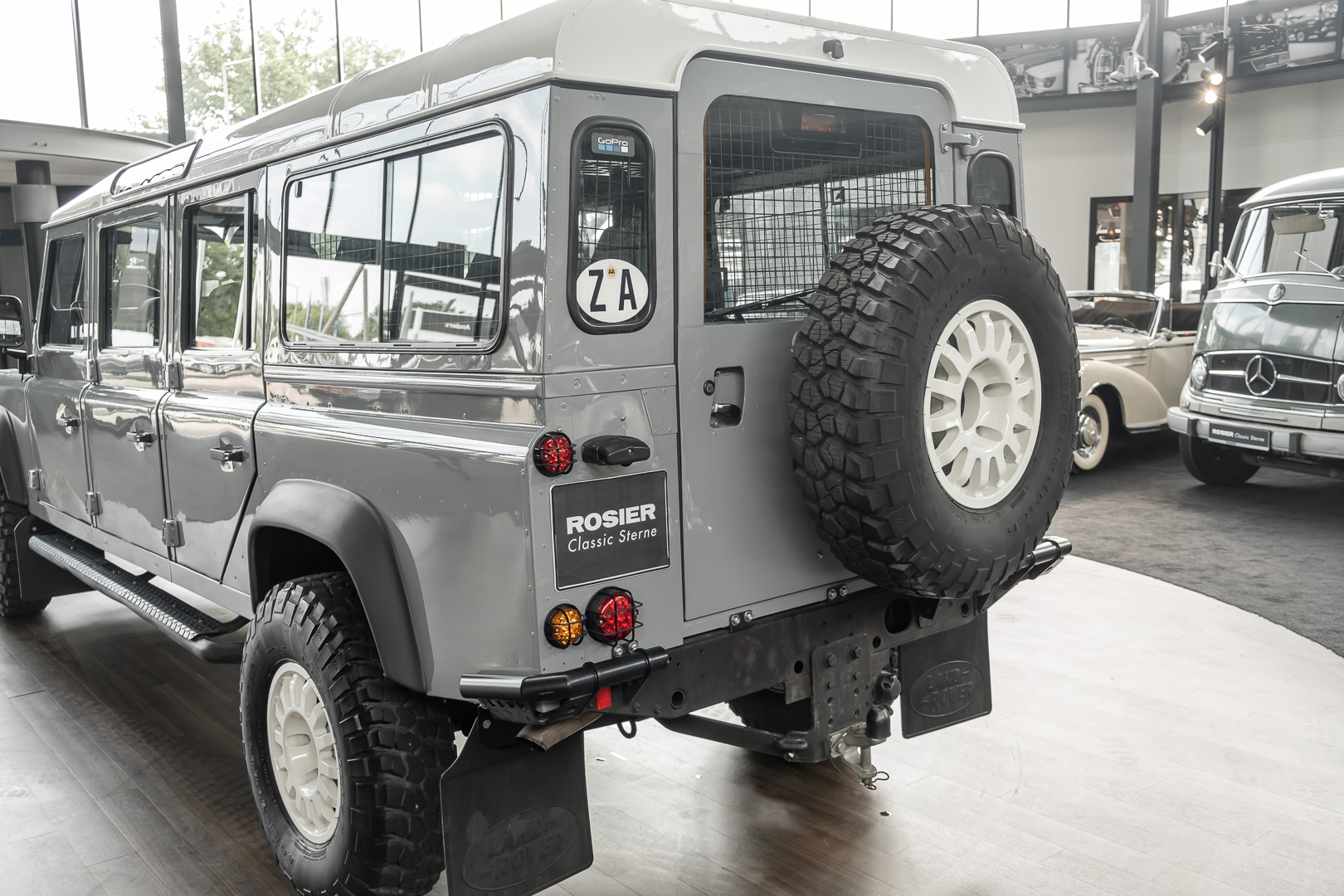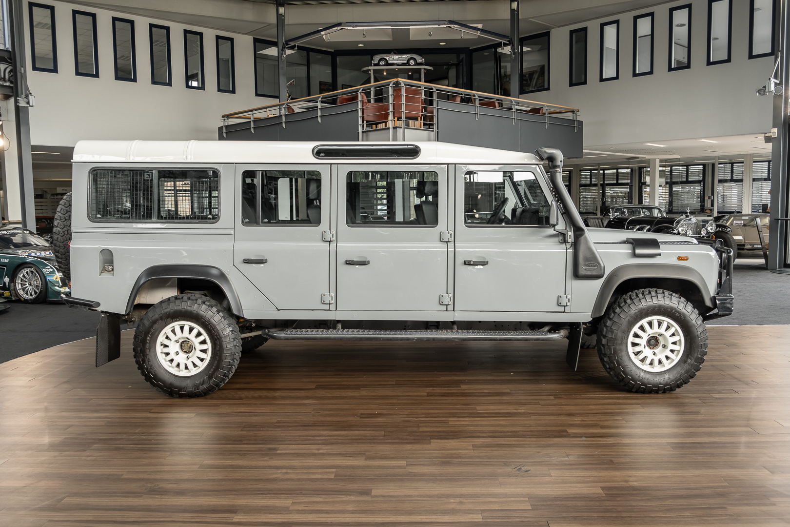 Ein Outdoor-Campingfan sah in diesem Siebensitzer die ideale Basis eines (Groß-)Familien-Fahrzeugs, das er noch mit Dachzelt und Offroad-Wohnwagen ausstatten ließ. Der Umbau zum Linkslenker machen diesen, ohnehin schon besonderen Defender 147, einmalig. Ein umfangreiches Entertainment-System sowie eine Klimaanlagen sorgen für angenehme Reisen, ganz gleich, wie abgelegen Sie unterwegs sind.
