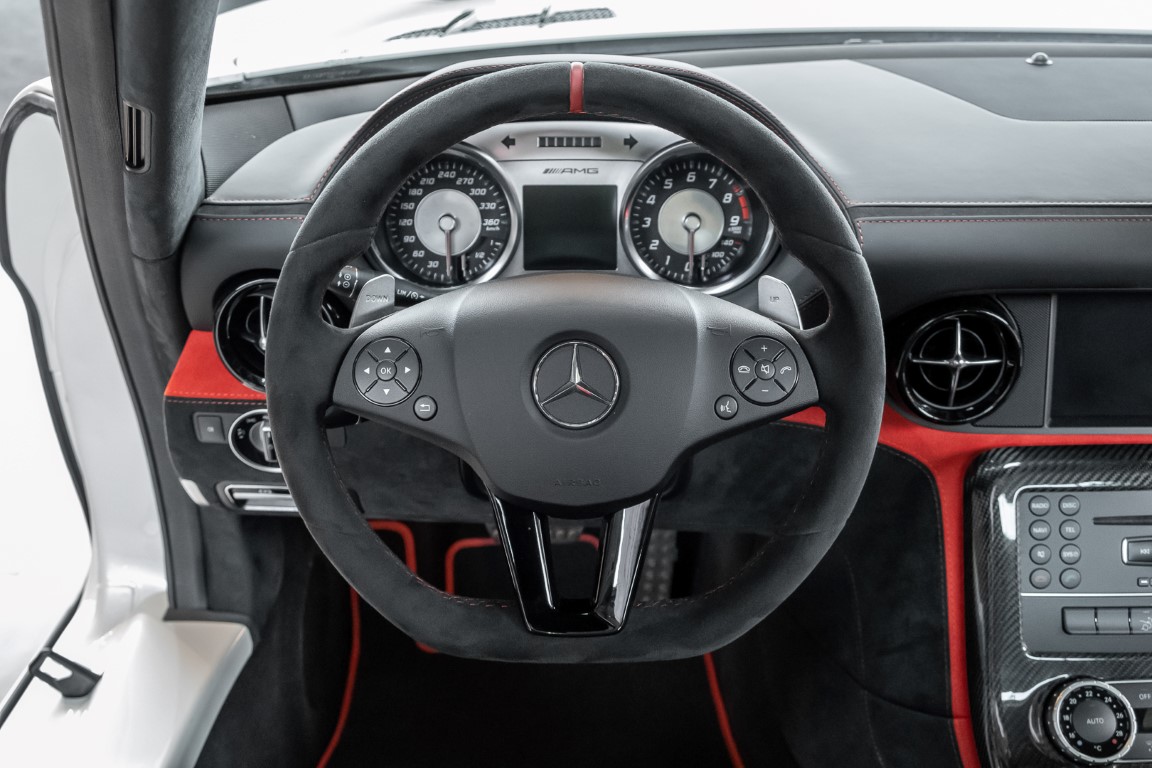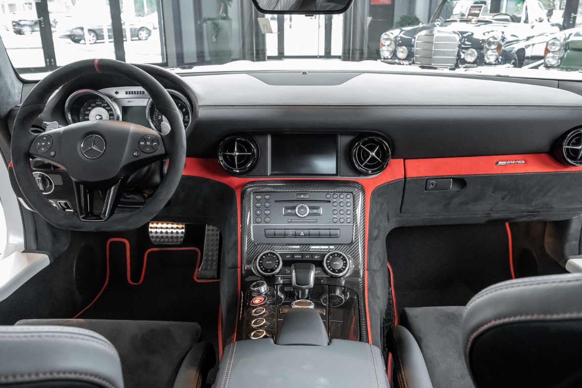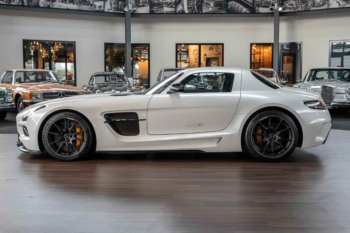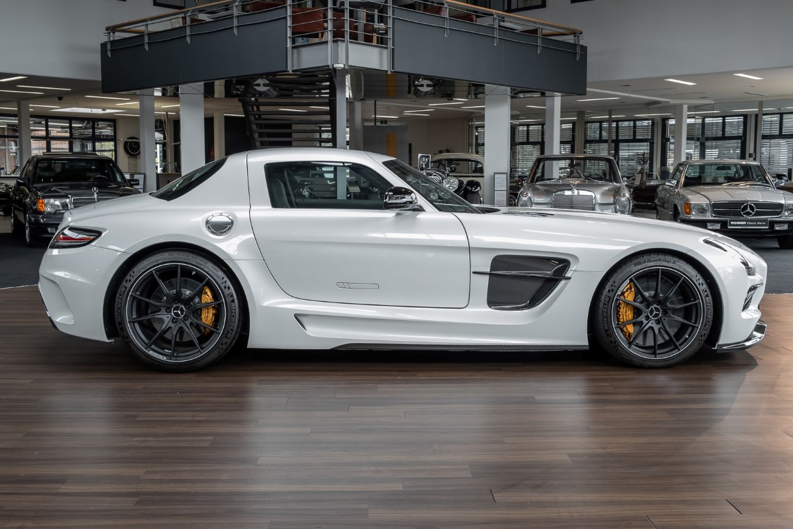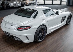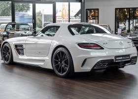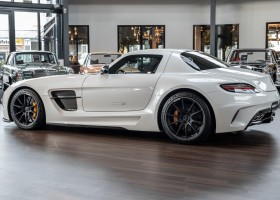 Im Juni 2013 war der offizielle Verkaufsstart der Highend-Version des Flügeltürers, den SLS AMG Coupé Black Series. Wer dieses von der Rennversion SLS AMG GT3 inspirierte Supersport-Coupé haben wollte, musste schnell sein: Denn die gerade einmal 408 Einheiten wurden von Sammlern aus der ganzen Welt sehnsüchtig erwartet und waren unverzüglich ausverkauft. Das fünfte Black Series-Modell von Mercedes-AMG faszinierte seine Liebhaber durch atemberaubendes Design, überragende Fahrdynamik und konsequenten Leichtbau. Mit einem Leergewicht von 1550 Kilogramm und einer Motorleistung von 631 PS bei 7400/min erreicht der SLS AMG Black Series ein Leistungsgewicht von 2,45 kg/PS. Damit wird der dynamischste straßenzugelassene Flügeltürer in nur 3,6 Sekunden auf Tempo 100 katapultiert.