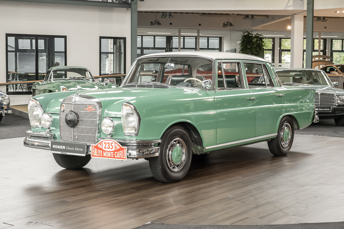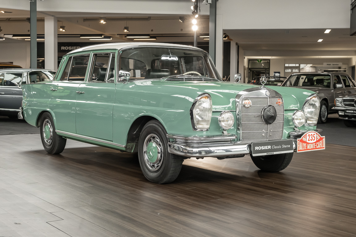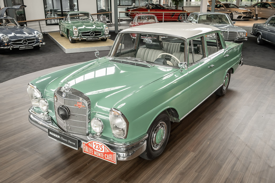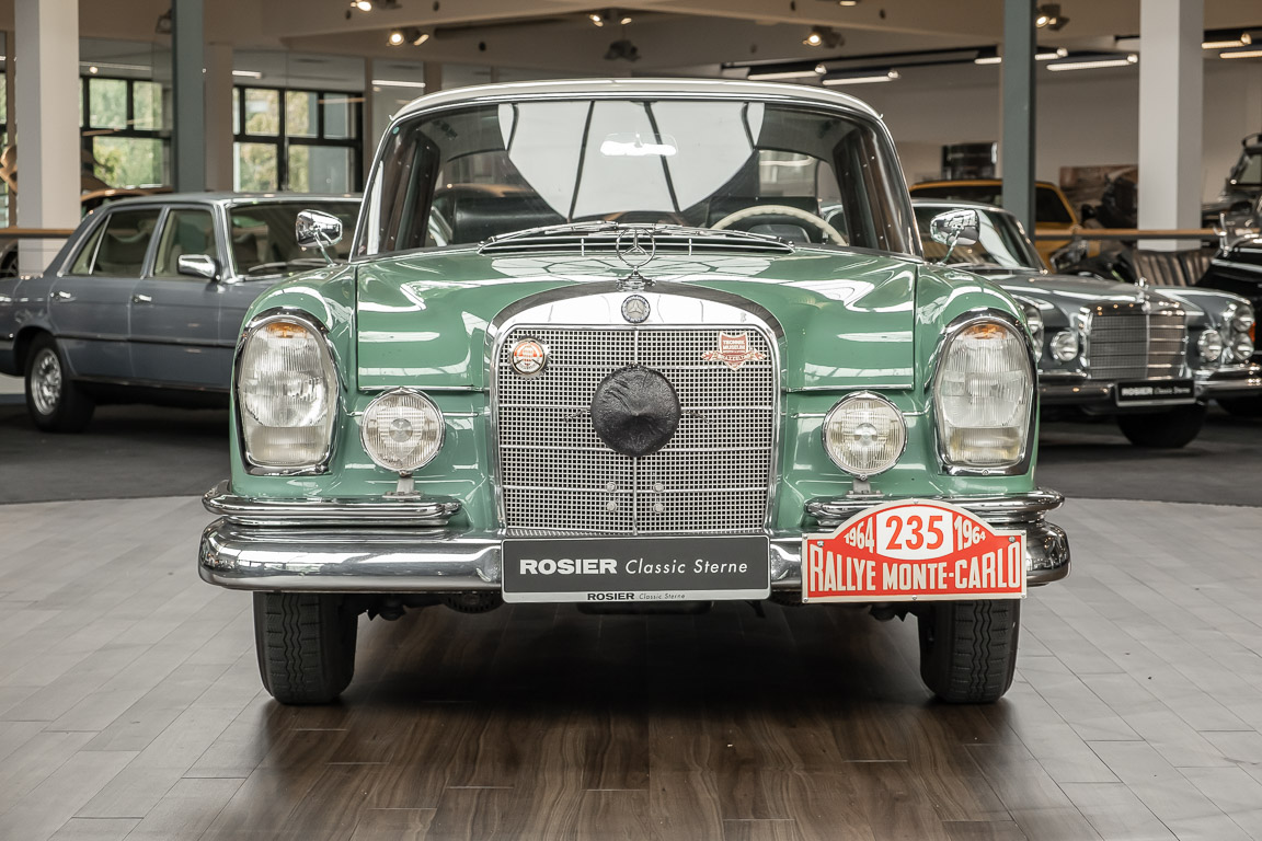 Kaum auf dem Markt zu bekommen sind originale Rallye-Fahrzeuge aus den 1950er und 1960er Jahren. Meist wurden die Fahrzeuge parallel im normalen Straßenverkehr eingesetzt und Ihr ruhmreiches Doppelleben wurde in der Öffentlichkeit nicht bekannt. Wir freuen uns sehr, Ihnen mit dem hier angebotenen Wagen ein tolles Original mit eindrucksvoller Rallye-Geschichte anbieten zu können. Diese Mercedes-Benz 220S Limousine wurde in 1963 im Werk fertiggestellt und gleich nach seiner Übergabe an den damaligen Erstbesitzer, nach den Vorgaben der in 1963 gültigen Rallyereglements, modifiziert. Diverse Versteifungen der Karosserie wurden vorgenommen, bessere Scheinwerfer und Zusatzscheinwerfer wurden verbaut, ebenso wie Sportstoßdämpfer. Der Motor wurde so modifiziert, dass er auch mit Kraftstoff schlechterer Qualität auskommen konnte.