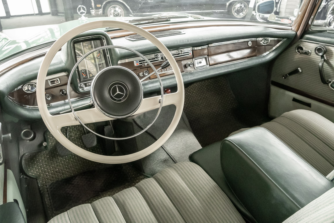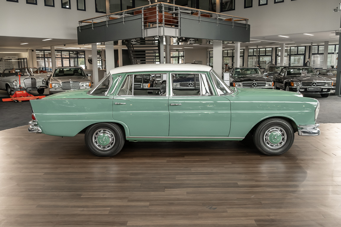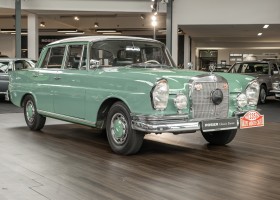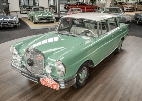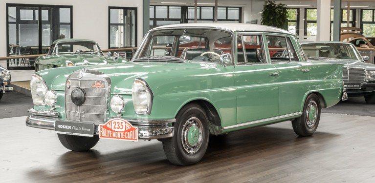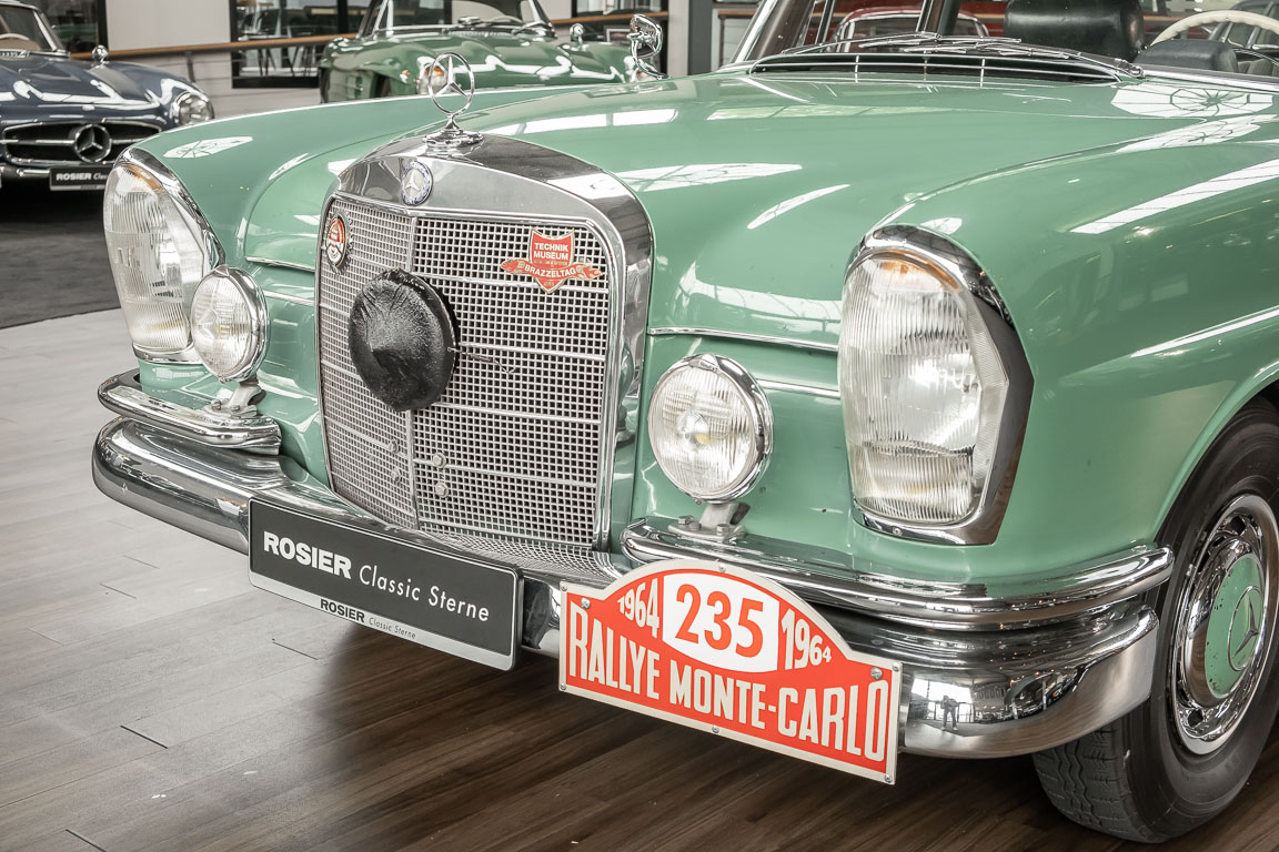 Kaum auf dem Markt zu bekommen sind originale Rallye-Fahrzeuge aus den 1950er und 1960er Jahren. Meist wurden die Fahrzeuge parallel im normalen Straßenverkehr eingesetzt und Ihr ruhmreiches Doppelleben wurde in der Öffentlichkeit nicht bekannt. Wir freuen uns sehr, Ihnen mit dem hier angebotenen Wagen ein tolles Original mit eindrucksvoller Rallye-Geschichte anbieten zu können. Diese Mercedes-Benz 220S Limousine wurde in 1963 im Werk fertiggestellt und gleich nach seiner Übergabe an den damaligen Erstbesitzer, nach den Vorgaben der in 1963 gültigen Rallyereglements, modifiziert. Diverse Versteifungen der Karosserie wurden vorgenommen, bessere Scheinwerfer und Zusatzscheinwerfer wurden verbaut, ebenso wie Sportstoßdämpfer. Der Motor wurde so modifiziert, dass er auch mit Kraftstoff schlechterer Qualität auskommen konnte.