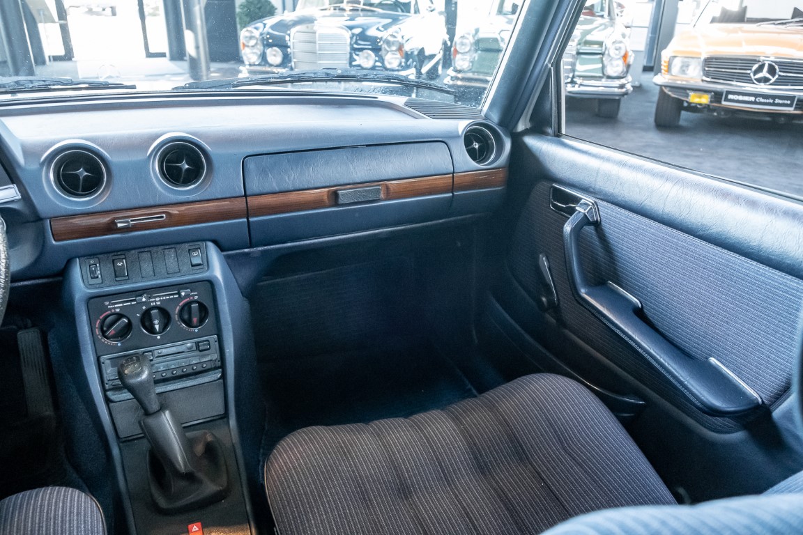 Dieser wundervolle 230 E im passenden Farbton Classicweiß stammt aus dem letzten Baujahr 1985 und ist mit dem robusten 2,3l-Vierzylinder ausgestattet. Am 17.07.1985 wurde das Fahrzeug durch seinen Erstbesitzer, einen Herren aus Woudrichem im Niederländischen Nordbrabant, zugelassen. Über viele Jahre und Jahrzehnte hinweg wurde das Fahrzeug stets gehegt und gepflegt. Das Serviceheft ist lückenlos gepflegt und nachvollziehbar. Sogar die original Datenkarte sowie die Originalrechnung sind noch vorhanden. Der „Tellerrapport“, also der Zählerreport, zeigt eindrücklich, wie wenig das Fahrzeug in den letzten knapp 27 Jahren bewegt wurde.