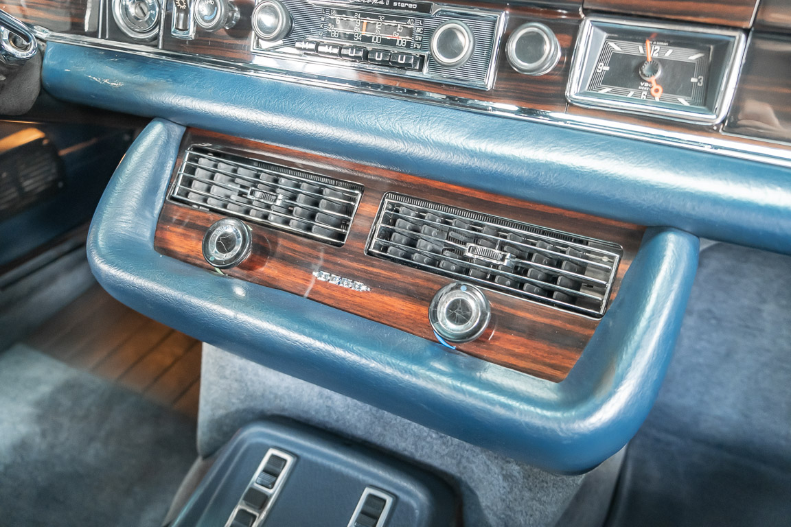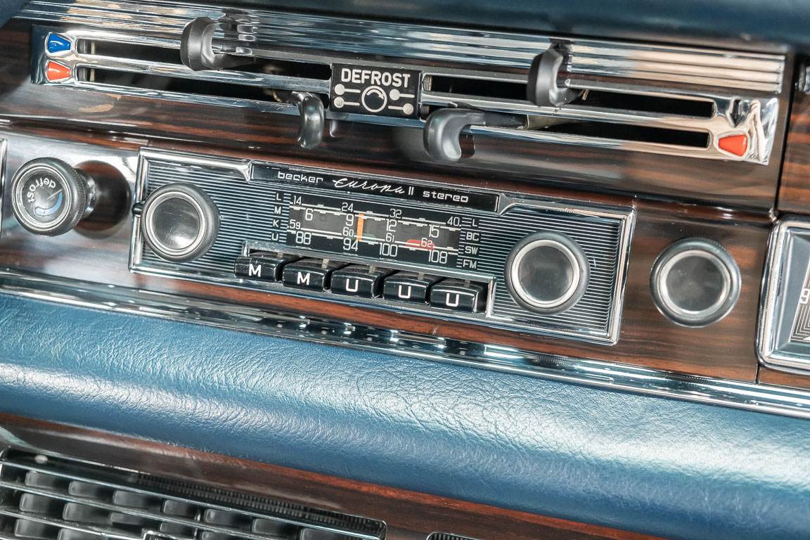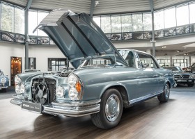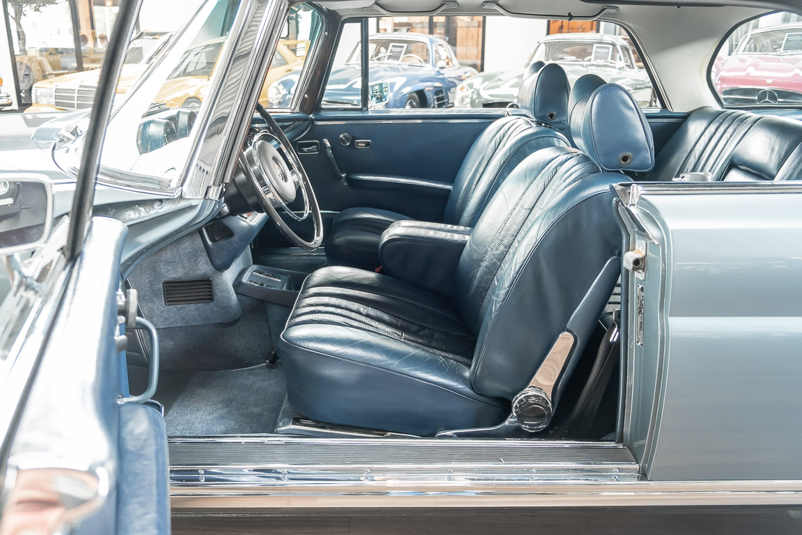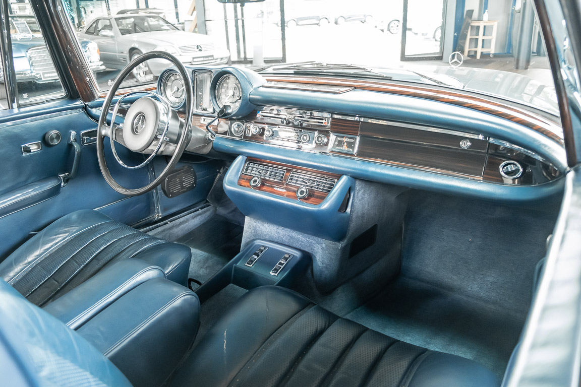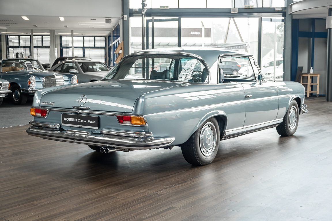 Ende 1969 verließ dieses bildschöne Flachkühler-Coupé die Fabrik in Sindelfingen und wurde im April 1970 seinem ersten Besitzer in Kalifornien übergeben. Es ist wohl dessen umsichtigen Umgang, sachkundiger technischer Betreuung und den günstigen klimatischen Verhältnissen zu verdanken, dass der Wagen in einer ausgezeichneten Kondition erhalten geblieben ist. Zuletzt befand er sich dort in einer Sammlung, worauf auch die niedrige Laufleistung zurückzuführen ist. Nach vierzig Jahren ging es aus dem Sonnenstaat zurück nach Deutschland. Hier bestätigte sich der nach wie vor außergewöhnliche Original-Zustand der Karosserie, der kompletten Innenausstattung und der Technik.