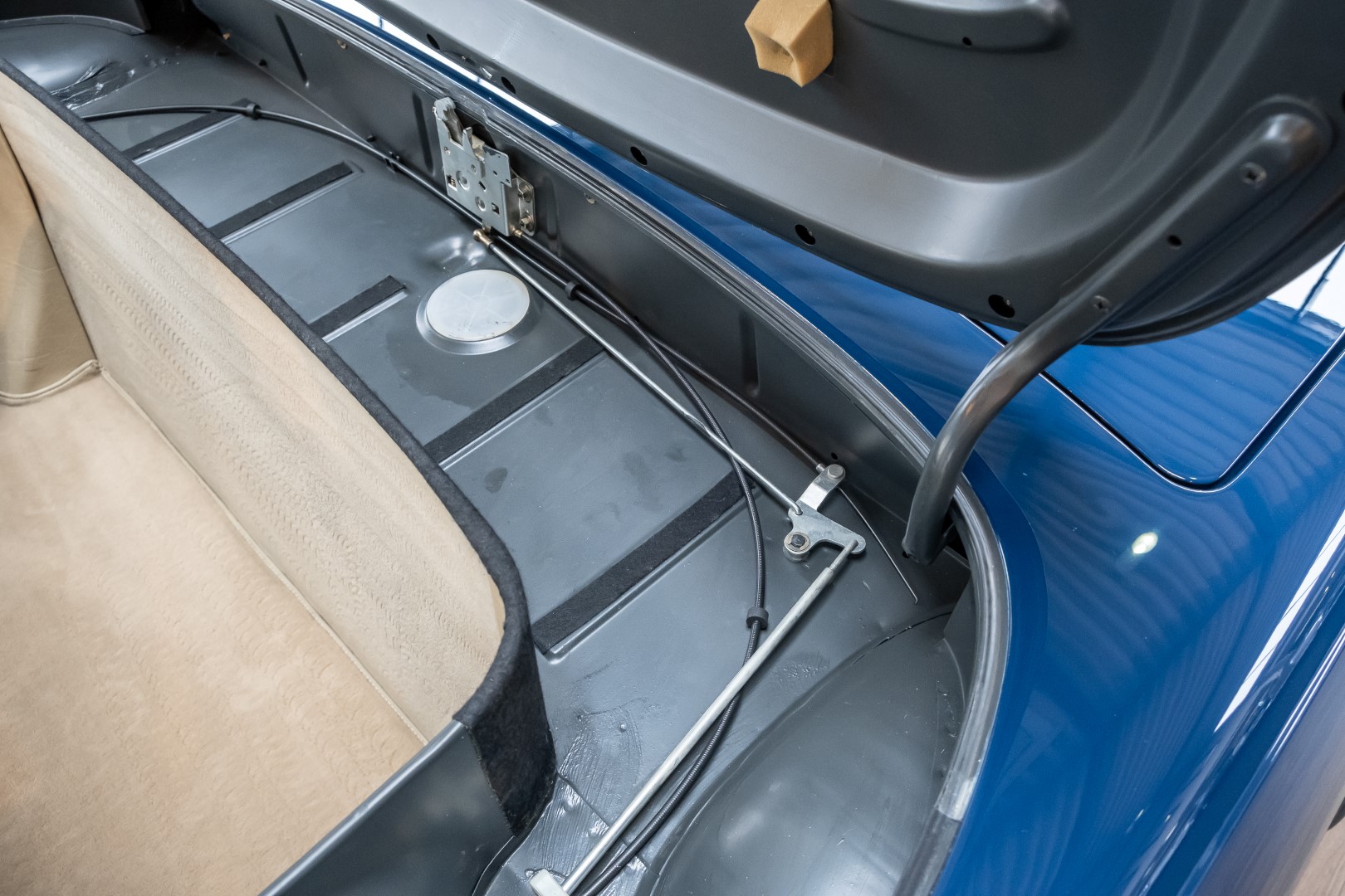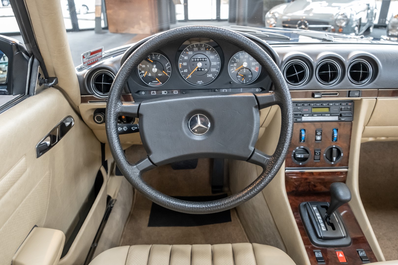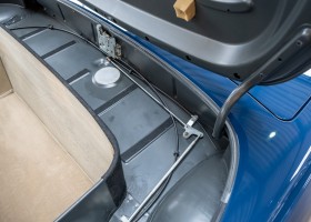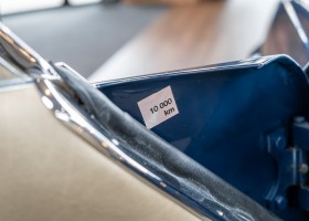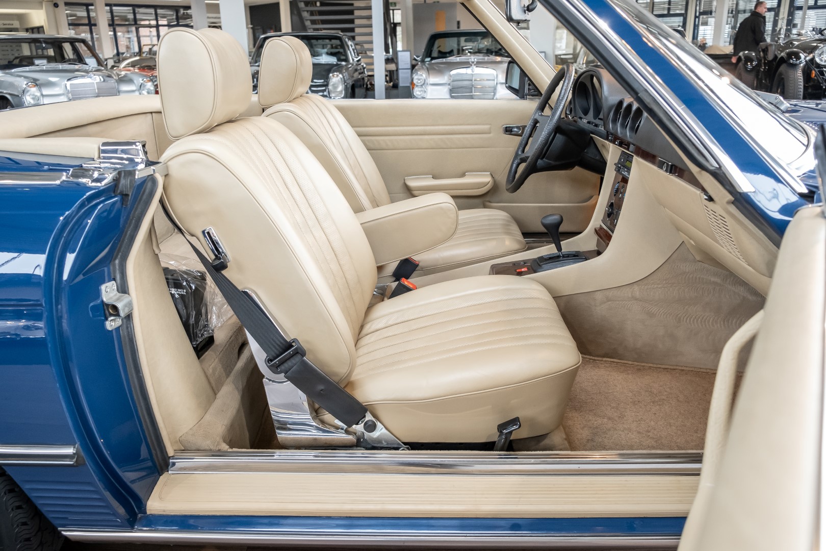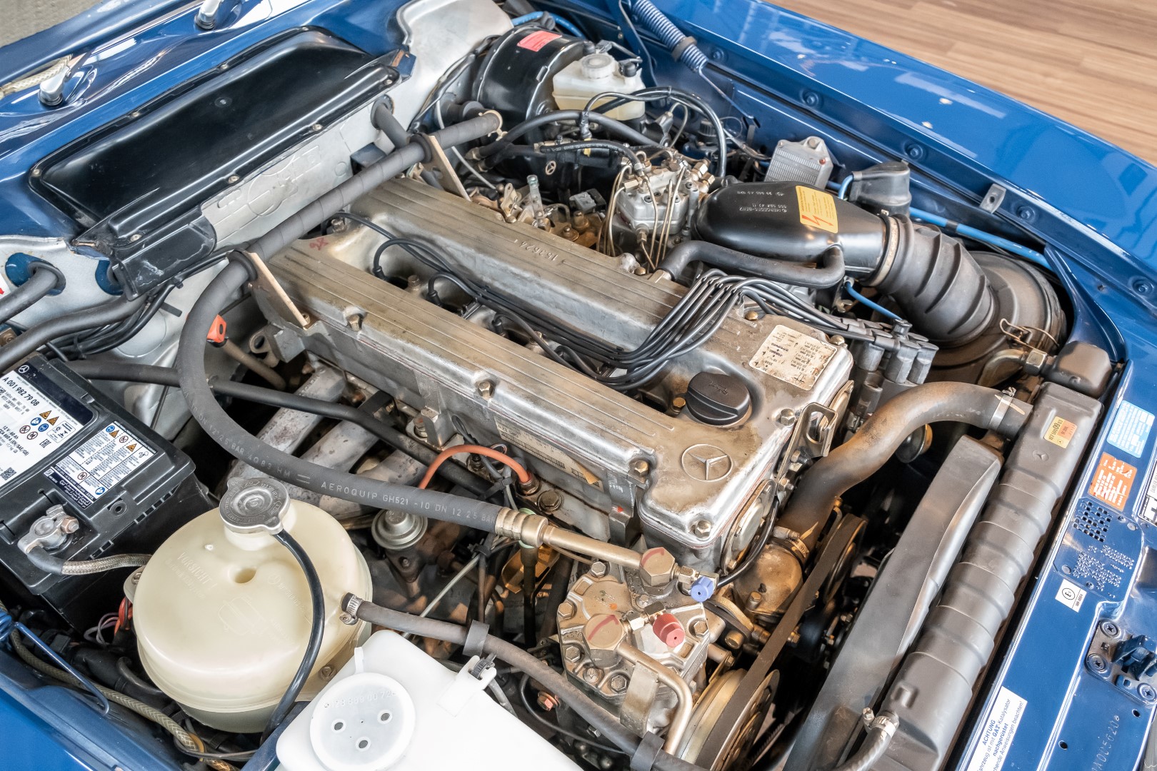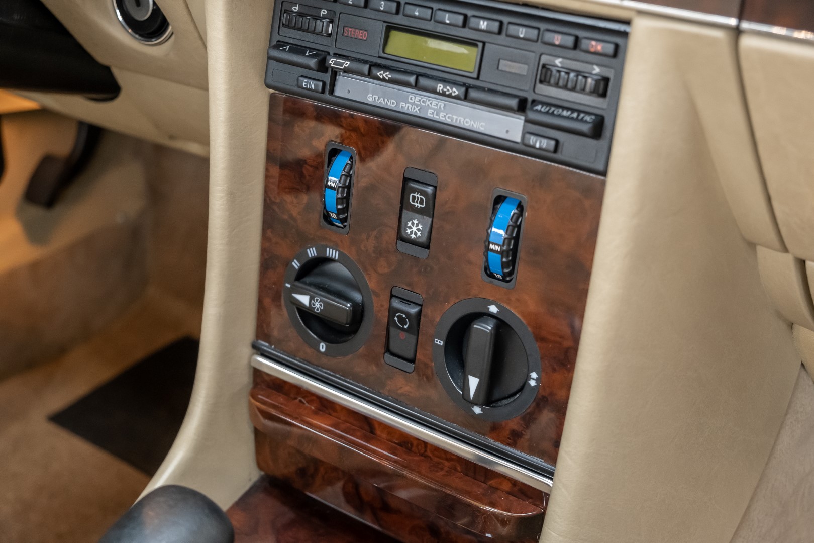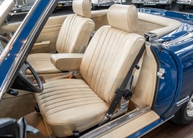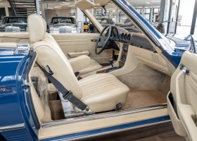 Stolze 62.708,21 DM bezahlte der damalige Besteller – ein erfolgreicher Händler für Landmaschinen und -teile aus Bonn – für den Roadster-Traum in Surfblau (900. Die Liste der Zusatzausstattungen war vergleichsweise lang: Lederausstattung in Creme (255), Automatikgetriebe, Mittelarmlehne, Klimaanlage, elektrische Fensterheber und Leichtmetallräder verliehen dem Roadster das gewisse Etwas und die ganz eigene Note des Besitzers. Das Kassettenradio Becker Grand Prix war ebenfalls mit an Bord. Natürlich sind auch hier alle Unterlagen vorhanden: von der Bedienungsanleitung über die Demonstrations-Kassette bis hin zum Garantie-Scheckheft und den original Tonkopf-Reinigungsstäbchen!