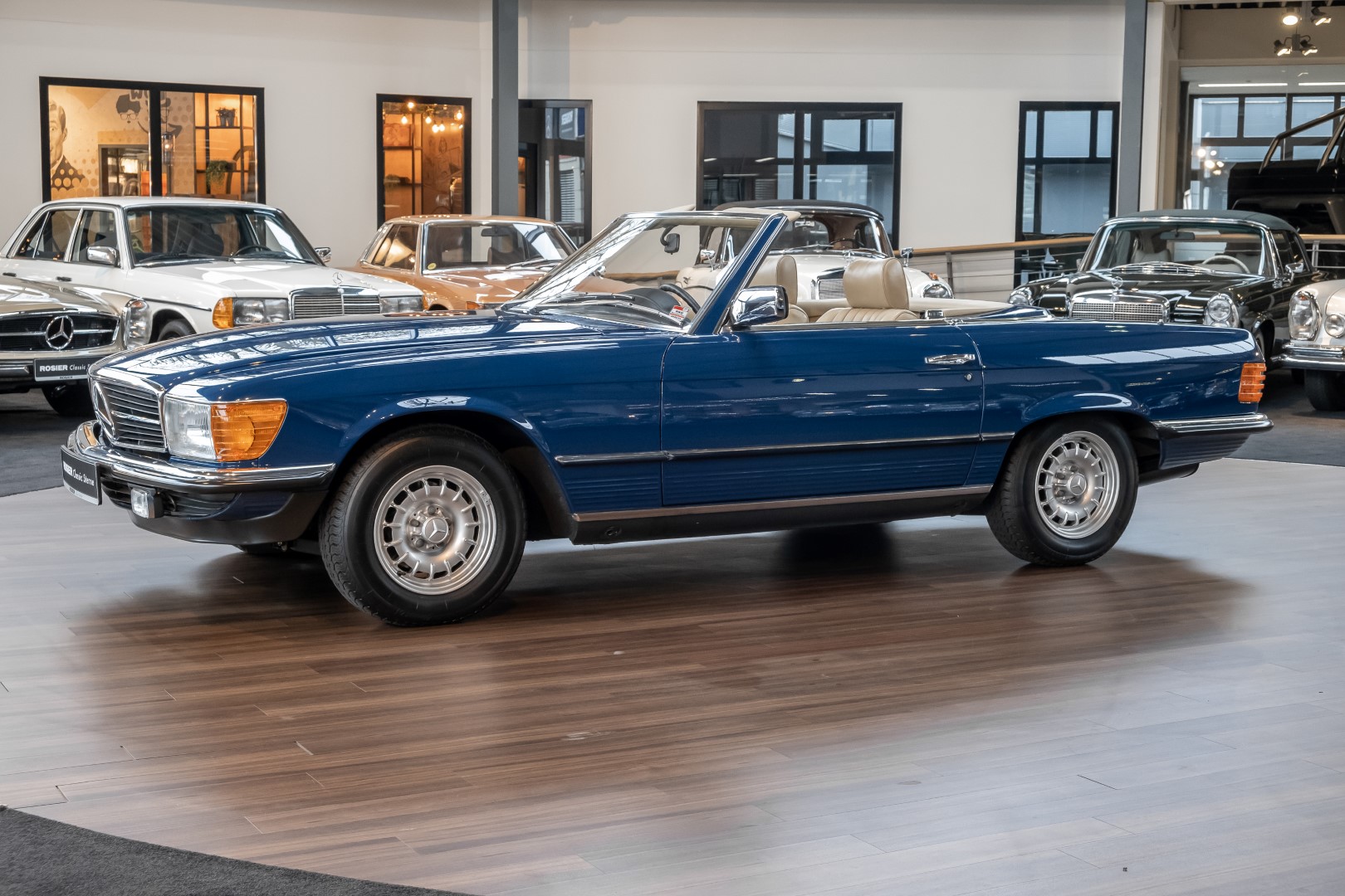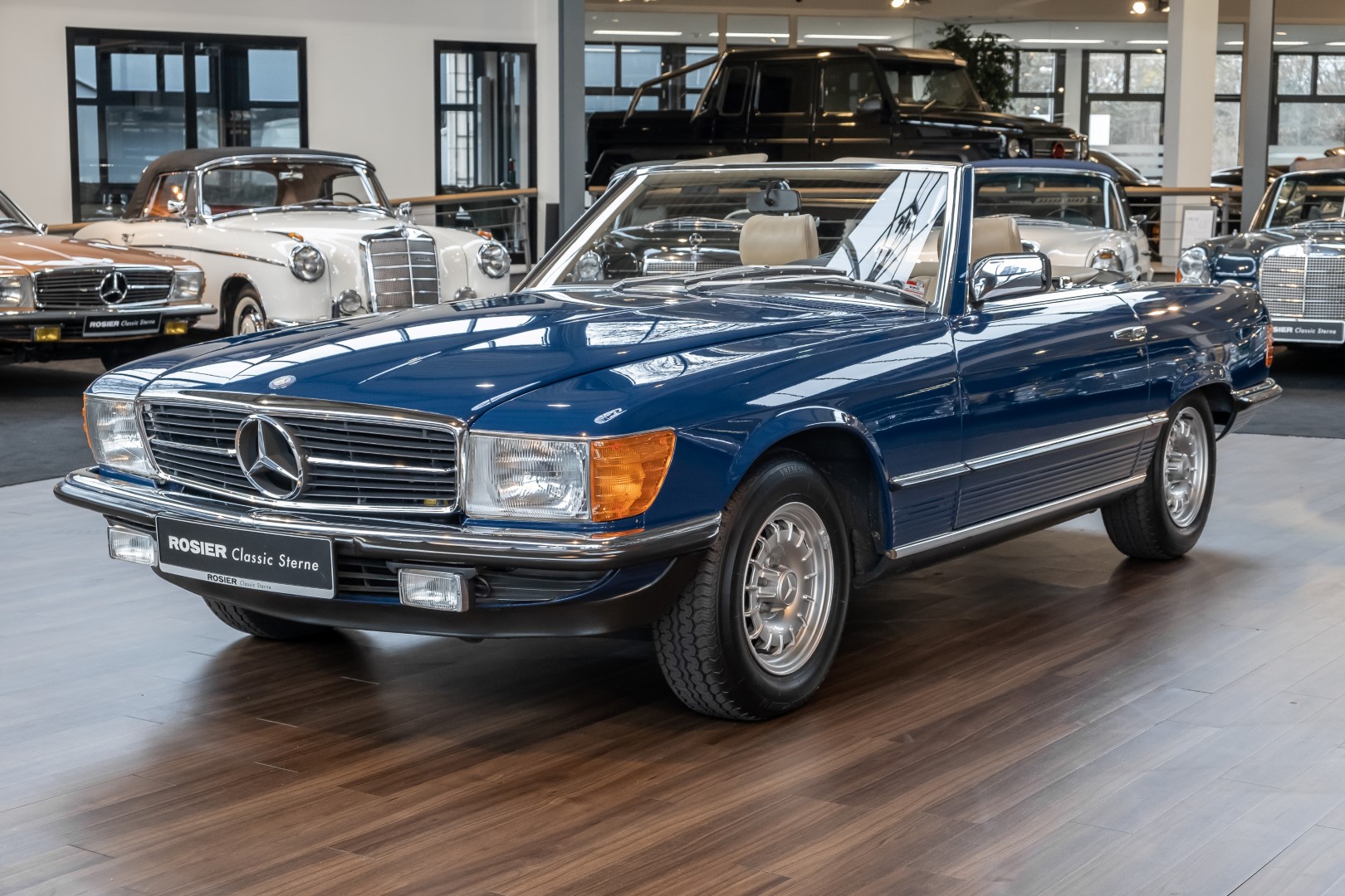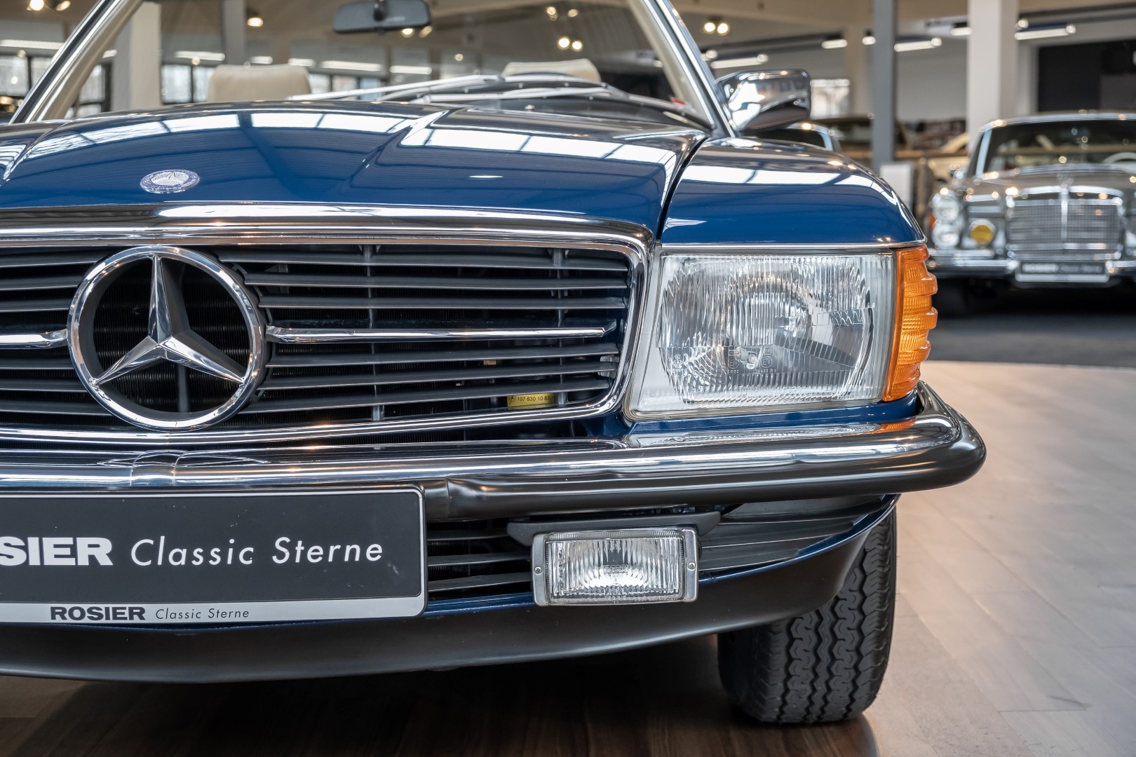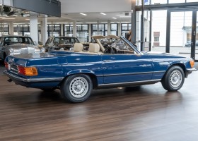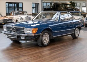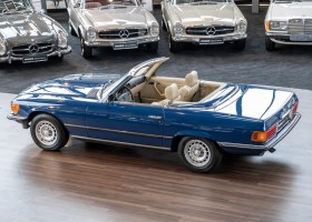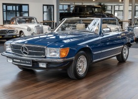 Eine absolute Sensation hält dieser 280 SL der Baureihe 107 aus dem Jahre 1983 für Sie bereit: originale 8.150 km und nur zwei Vorbesitzer! Das Fahrzeug präsentiert sich im absoluten Ausnahmezustand und kann mit gutem Gewissen der Jahreswagenzustand attestiert werden. Optisch und technisch ist der Zustand makellos – fast als habe das Fahrzeug die letzten 37 Jahre in einer Zeitkapsel verbracht. Der alte Fahrzeugbrief, die Fahrzeugrechnung, die Bedienungsanleitung und das Serviceheft. Selbst der damalige Prospekt sowie Sonderausstattungslisten sind vorhanden und befinden sich in ähnlich tollem Zustand wie das Fahrzeug selbst.