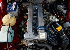 Der Wagen wurde am 17.04.1985 an einen erfolgreichen Handwerksbetrieb an der malerischen Bergstraße ausgeliefert. Ein Jahr später, im März 1986, wurde er in den Odenwaldkreis verkauft und wurde am 31.07.1986 mit gerade einmal 10.000 km von seinem bis heute letzten Besitzer in seine Sammlung übernommen. In seinem Besitz war der Wagen die nächsten 31 Jahre, wurde bestens gepflegt und nur bei schönem Wetter gefahren. Nun konnten wir den Wagen erwerben. Ein Ausnahmefahrzeug, wie es auf dem Markt kaum zu bekommen ist, mit originalen 31.500km. Kenner wissen, dass der als sehr langlebig geltende 280SL mit 5-Gang Schaltgetriebe exzellente Fahrleistungen bietet und enormen Fahrspaß garantiert.
