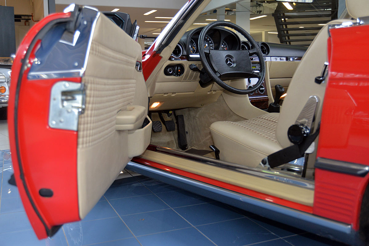 Ein Mercedes-Benz 280SL Roadster (R107) in einem Zustand, von dem man mit Stolz sagen möchte: „Er ist wie neu“.