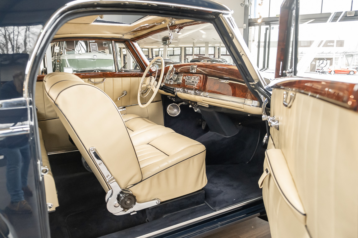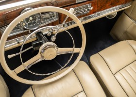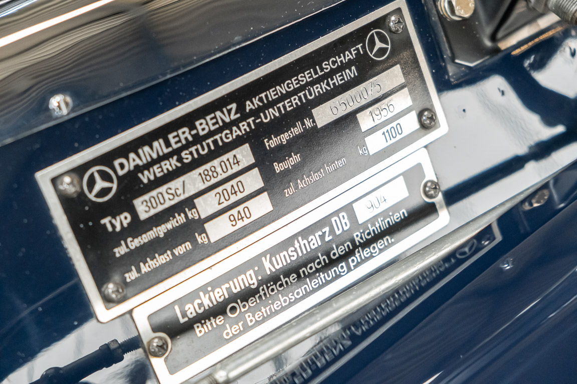 Die Mercedes Reihe W188 wurde im Oktober 1951 auf der Mondial de l‘Automobile in Paris der Öffentlichkeit präsentiert. In 1955 wurde die Modellreihe, die aus Coupé, Cabriolet und Roadster bestand überarbeitet und in 300Sc umbenannt. Neben reichlich Chromzierrat wurde eine aufwändige Benzineinspritzung verbaut, die dem Wagen kraftvolle 175 PS Leistung bescherte.
