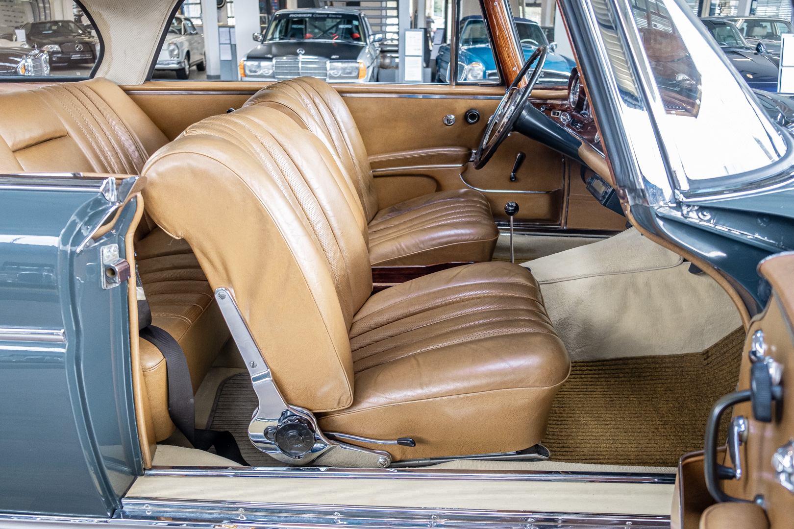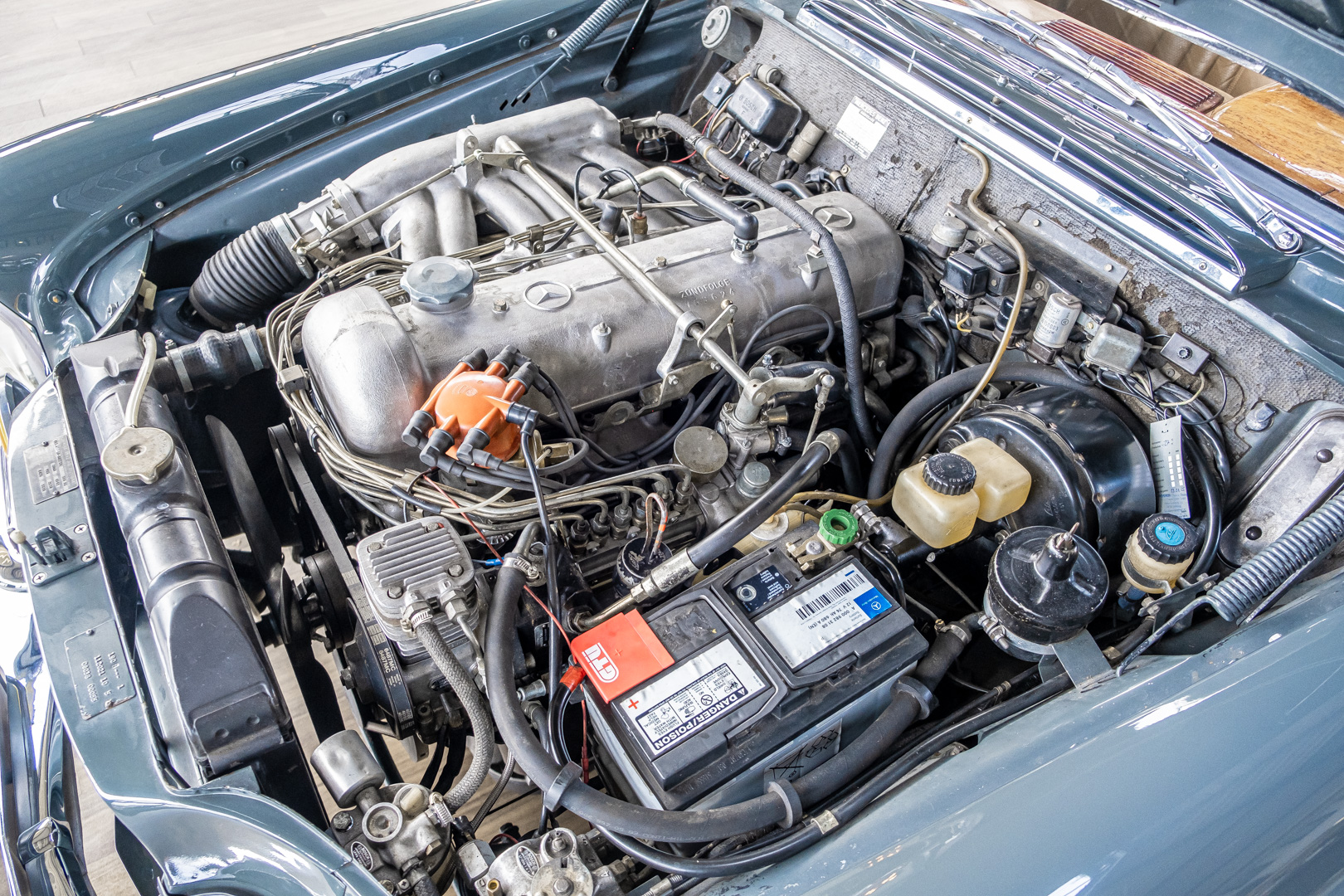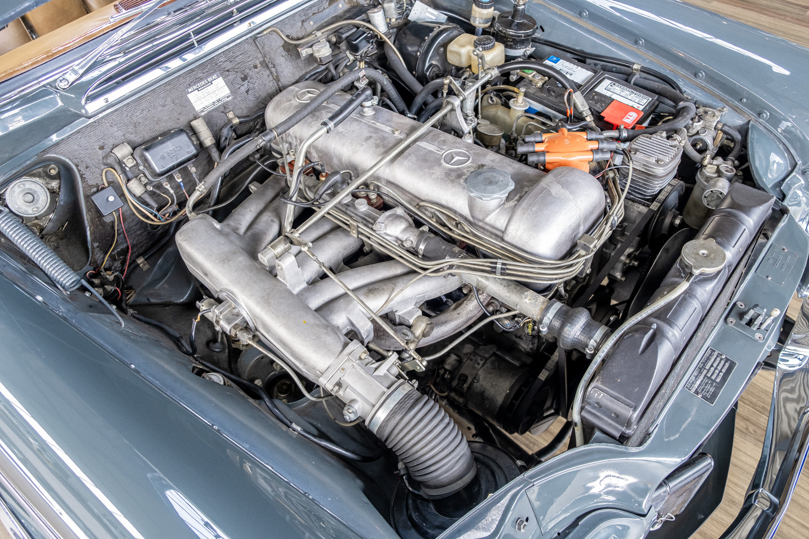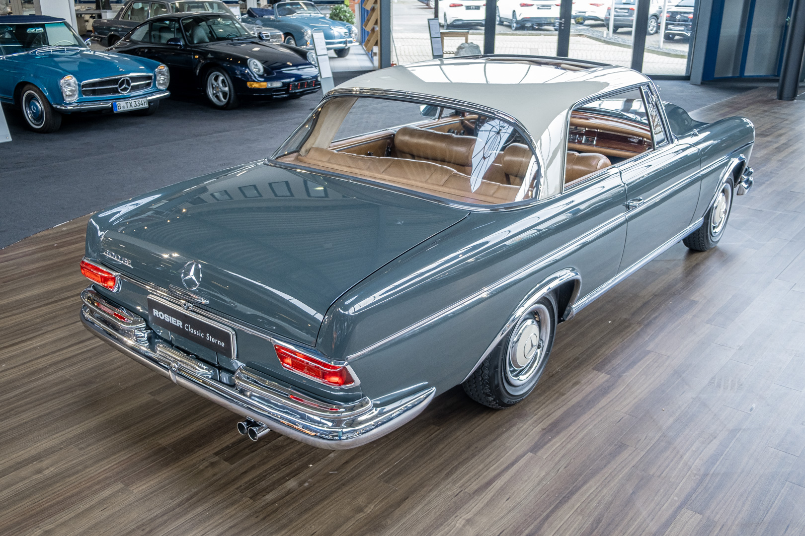 Wir freuen uns, Ihnen dieses charismatische 300 SE Coupé der Baureihe w112 anbieten zu können. Das traumhafte S-Klasse Coupe mit Luftfederung verließ im Jahre 1965 das Werk – allem Anschein nach mit dem Ziel Frankreich. Ein erfolgreicher Geschäftsmann und Direktor eines Radiogeräte-Herstellers aus Paris erfüllte sich mit diesem Luxus-Coupé wohl einen lang gehegten Wunsch. Nach dem Tod des Direktors verblieb das Fahrzeug noch im Besitz der Familie, bevor das Fahrzeug im Jahre 2012 seinen Weg nach Deutschland fand. Das originale ungeschweißte Fahrzeug wurde hier fachmännisch überarbeitet, wobei besonderes Augenmerk auf den authentischen Originalzustand gelegt wurde. Anstelle des 4-Gang-Schaltgetriebes wurde ein 5-Gang-Getriebe verbaut, was in Kombination mit einer lang übersetzen Hinterachse enorm zur Fahrqualität beiträgt. Das Gleiten bei 100-120 km/h bei angenehmer Drehzahl macht das Reisen zu einem wahren Genuss. Das originale matching-numbers 4-Gang-Getriebe ist eingelagert und wird auf Wunsch mit verkauft. Mit nur einem bekannten Vorbesitzer in Frankreich und zwei verbrieften Besitzern in Deutschland befindet sich dieses 300 SE Coupé in einem sensationellen Zustand. Erfahren Sie die Faszination eines 60er Jahre S-Klasse Coupés. Herzlich willkommen.