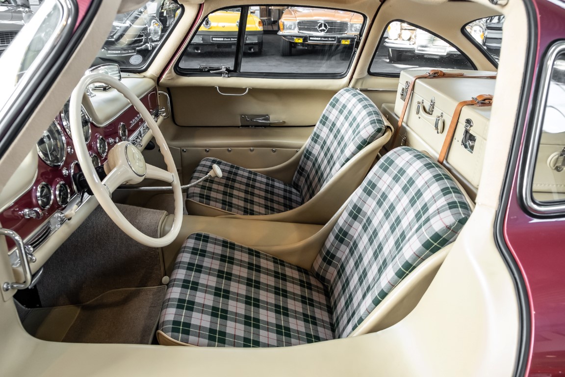 Dieses sehr frühe 300 SL Coupé verließ die Fabrik am 30. September 1954. Ursprünglich in DB190 grau lackiert, mit blauem Vinyl/blau karierten Sitzen und blauem Lederinterieur, war es für den renommierten Mercedes- Benz Vertreter Max Hoffman‘s in New York bestimmt. Das besondere Fahrzeug mit der Fahrgestell Nr. 20 weist zahlreiche „Prototypen“-Merkmale auf, die nur die ersten 50 Fahrzeuge, der insgesamt 1.400 Exemplare, aufweisen und Überbleibsel der Rennwagen von 1952 sind, auf denen das 300 SL Coupé basierte. Alle Unterscheidungsmerkmale sind bis ins kleinste Detail dokumentiert und bestätigt und unterscheiden dieses Coupé deutlich von der Serienproduktion. Eine absolute Rarität unter den ohnehin begehrten 300 SL Coupés.