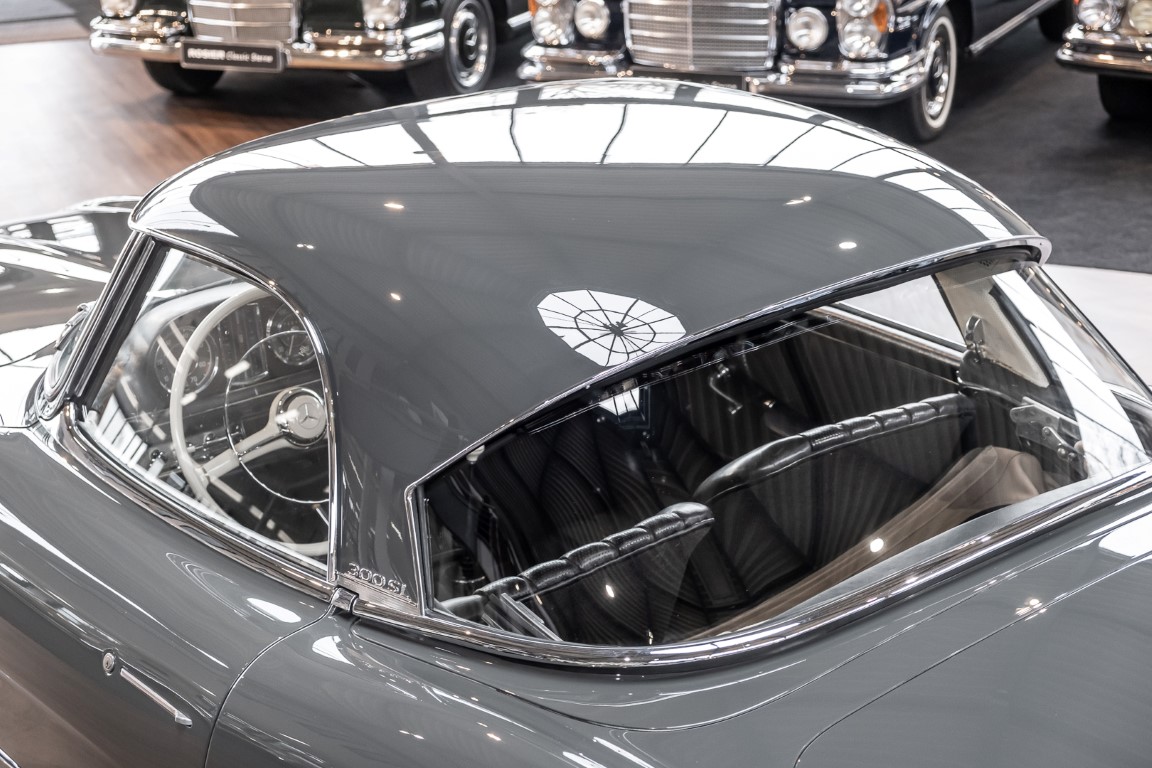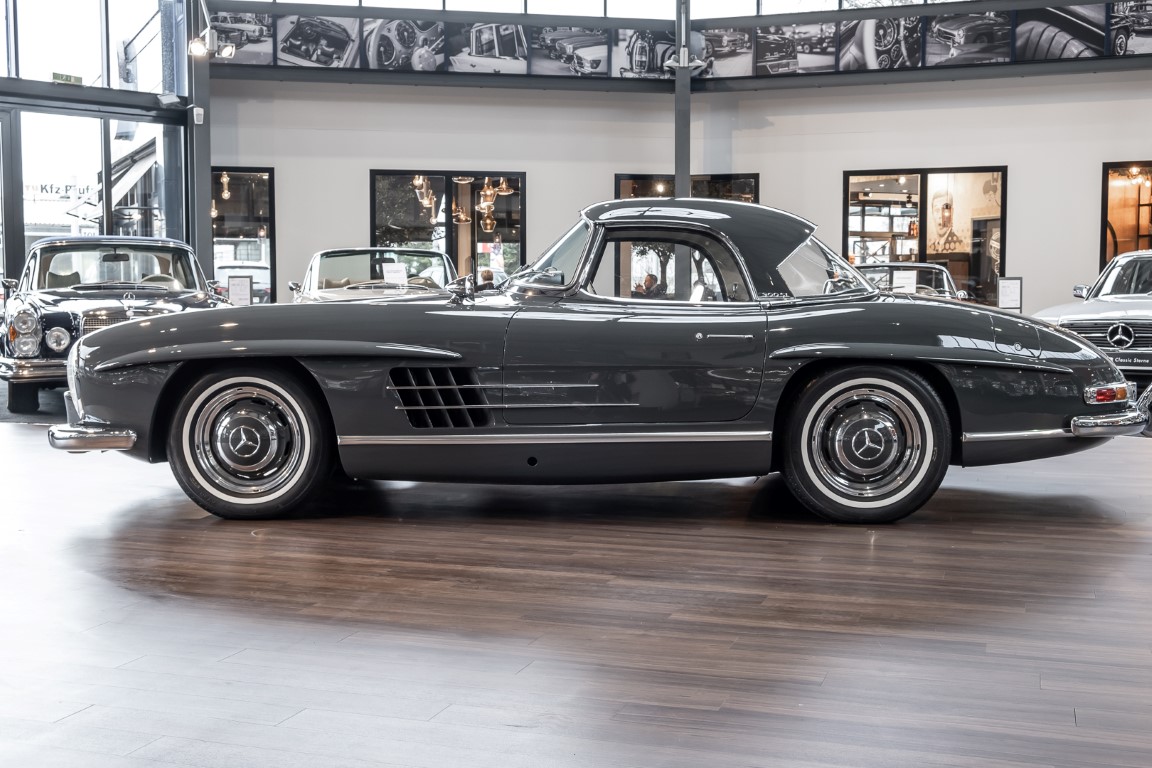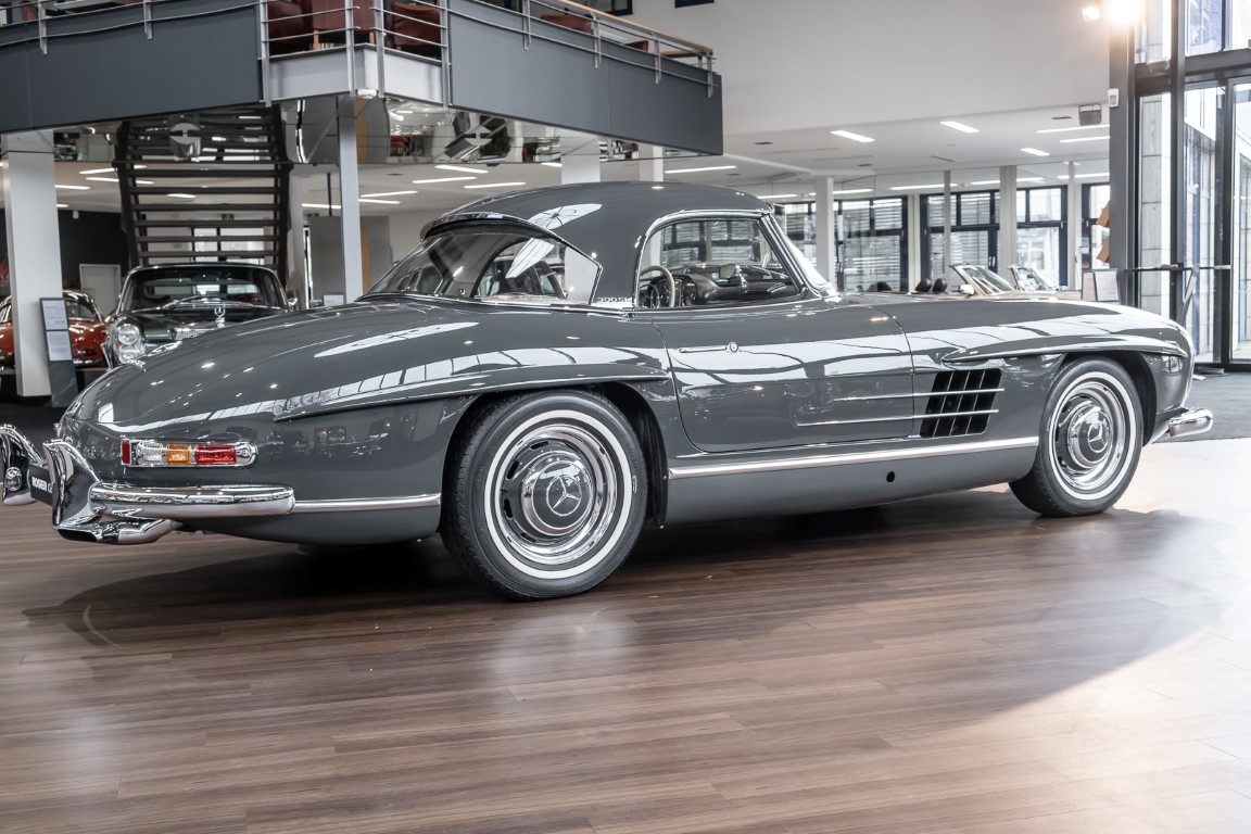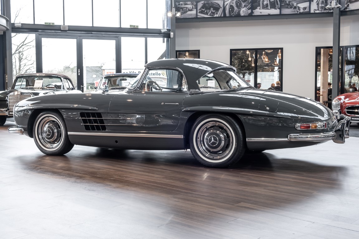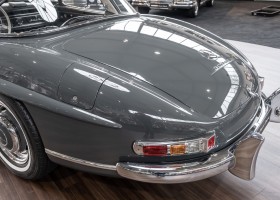 Dieser wundervolle 300 SL Roadster wurde am 02. September 1962 in Sindelfingen fertiggestellt und wurde anschließend an einen niederländischen Mercedes-Benz Händler ausgeliefert. Insgesamt drei Jahre wartete dieser Traum-Roadster auf seinen Erstbesitzer, einem wohlhabenden Herren aus Tilburg. Bis 1972 verbleib das Fahrzeug im Erstbesitz. Anschließend erwarb eine niederländische Familie das Fahrzeug, finanziert durch einen Goldbarren, der bei einer Schweizer Bank eingelagert war. Bis zum Jahre 2008 verblieb das Fahrzeug in der Familie und wurde als „Familienschatz“ mehr oder weniger unberührt gelassen. Das änderte sich im Januar 2009, als das Fahrzeug zum Spezialisten HK Engineering nach Stuttgart überführt wurde. Eine allumfassende und qualitativ perfekte Restauration des Fahrzeuges wurde ohne Rücksicht auf jegliche Kosten umgesetzt. Das Ergebnis ist, optisch wie auch technisch betrachtet, ein Ausnahme-Roadster, wie man ihn wohl nur noch extrem selten vorfindet.