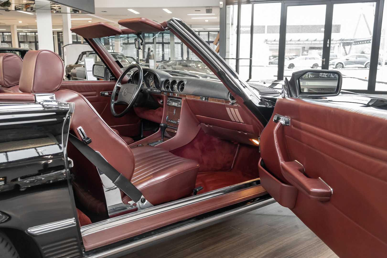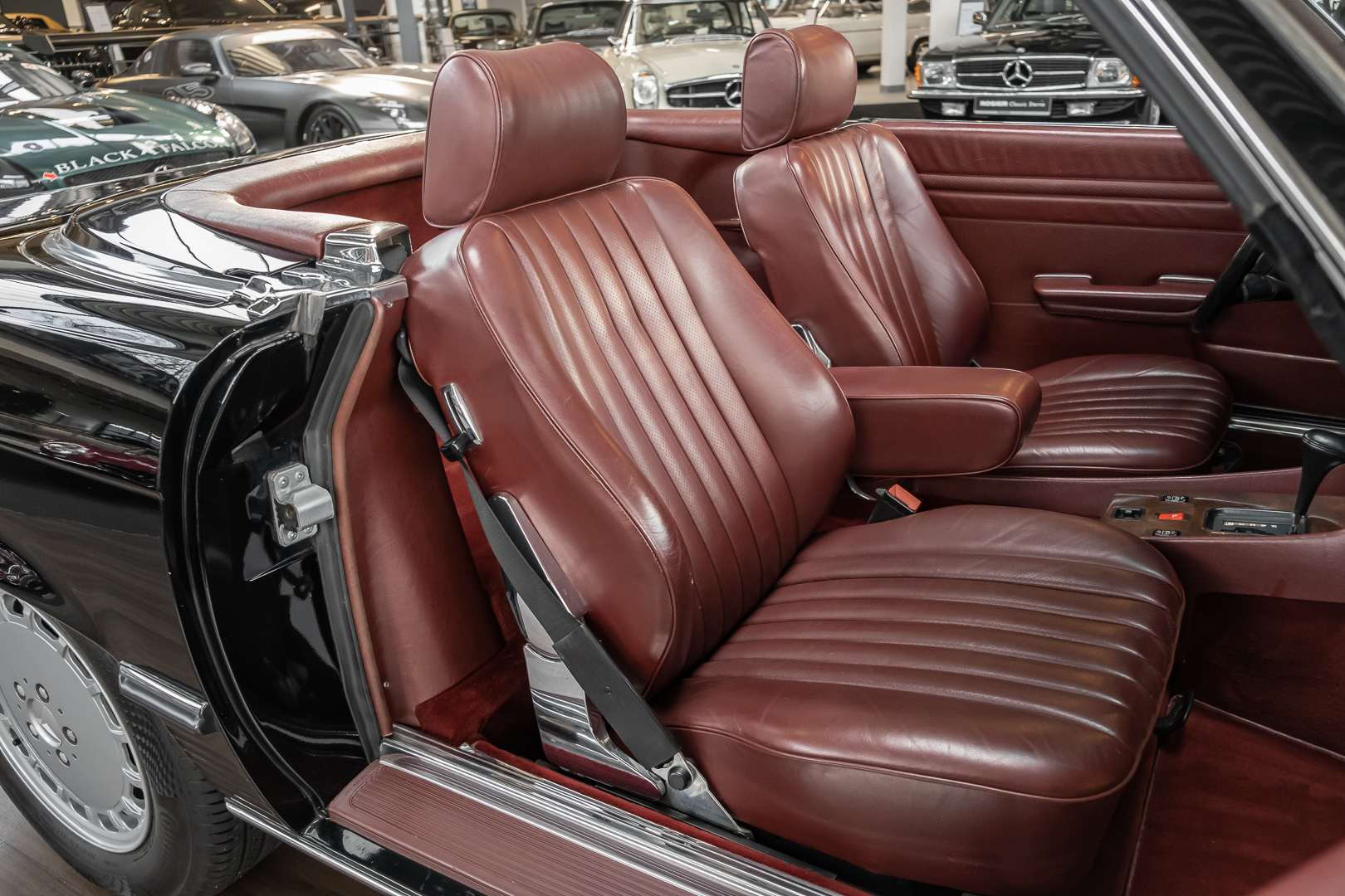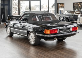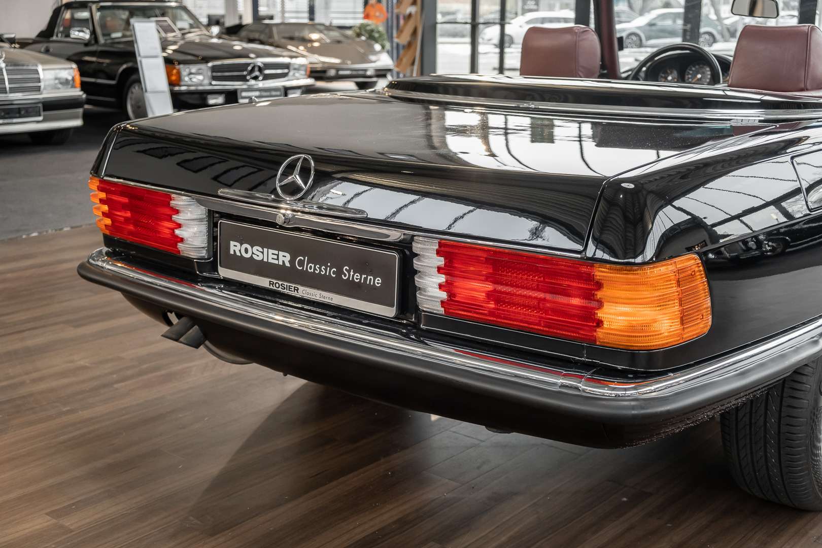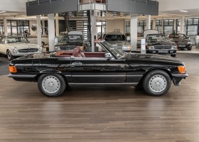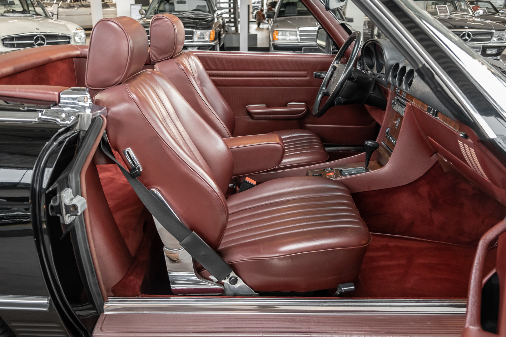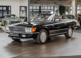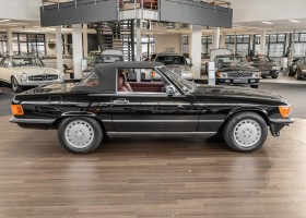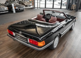 Wir freuen uns, Ihnen diesen tollen 560 SL der begehrten Baureihe 107 anbieten zu können. Die seltene und charmante Farbkombination aus tiefschwarzem Lackkleid (040) und rotem Leder steht dem SL außerordneltich gut zu Gesicht. Das Fahrzeug ist komplett auf europischen Standard umgerüstet und besitzt ein sauberes Carfax. Eine tolle Gelegenheit ein gepflegtes Fahrzeug mit überschaubarer Laufleistung zu erwerben. Gerne führen wir Ihnen das Fahrzeug persönlich vor.