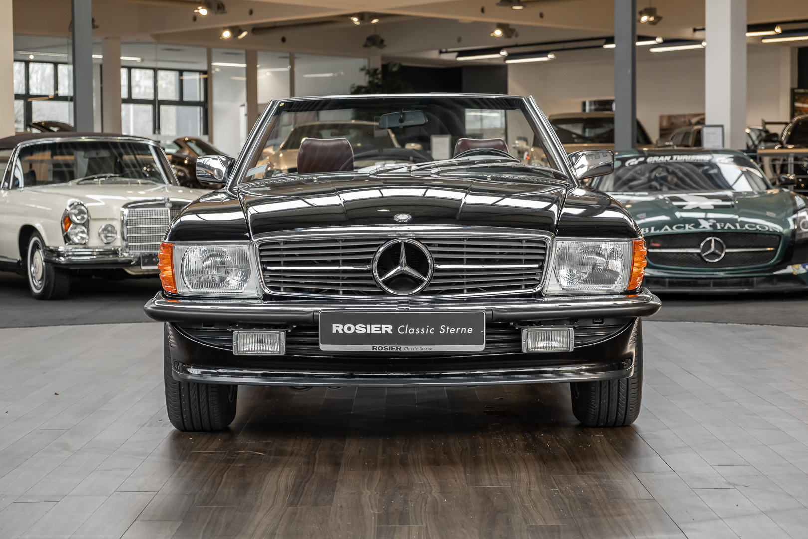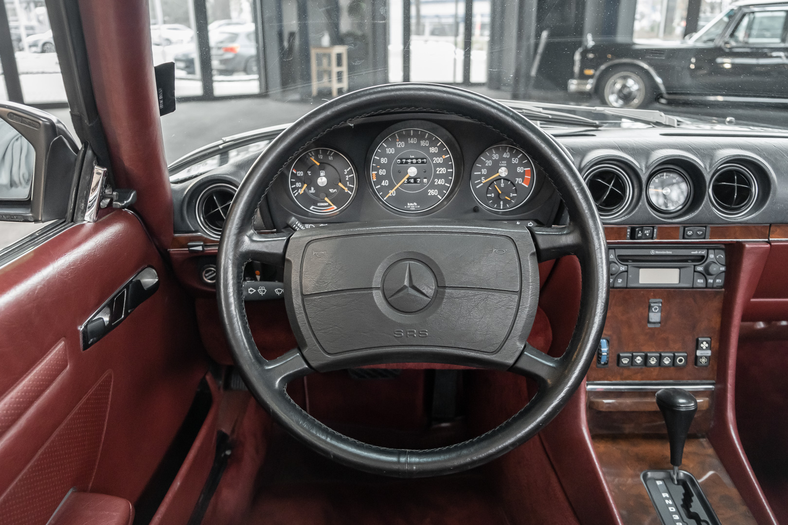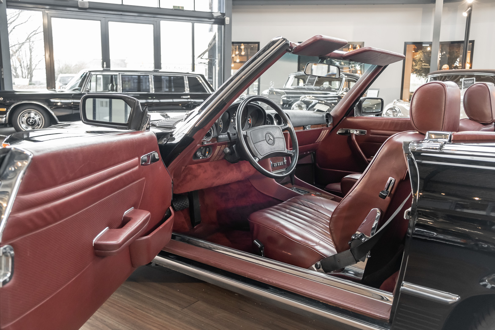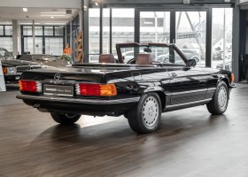 Wir freuen uns, Ihnen diesen tollen 560 SL der begehrten Baureihe 107 anbieten zu können. Die seltene und charmante Farbkombination aus tiefschwarzem Lackkleid (040) und rotem Leder steht dem SL außerordneltich gut zu Gesicht. Das Fahrzeug ist komplett auf europischen Standard umgerüstet und besitzt ein sauberes Carfax. Eine tolle Gelegenheit ein gepflegtes Fahrzeug mit überschaubarer Laufleistung zu erwerben. Gerne führen wir Ihnen das Fahrzeug persönlich vor.