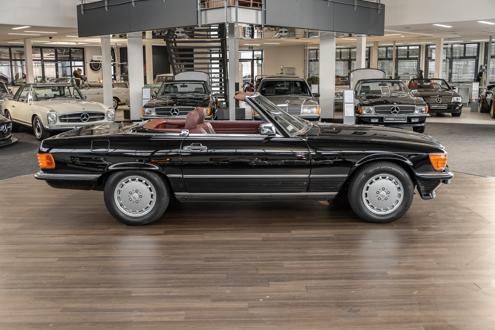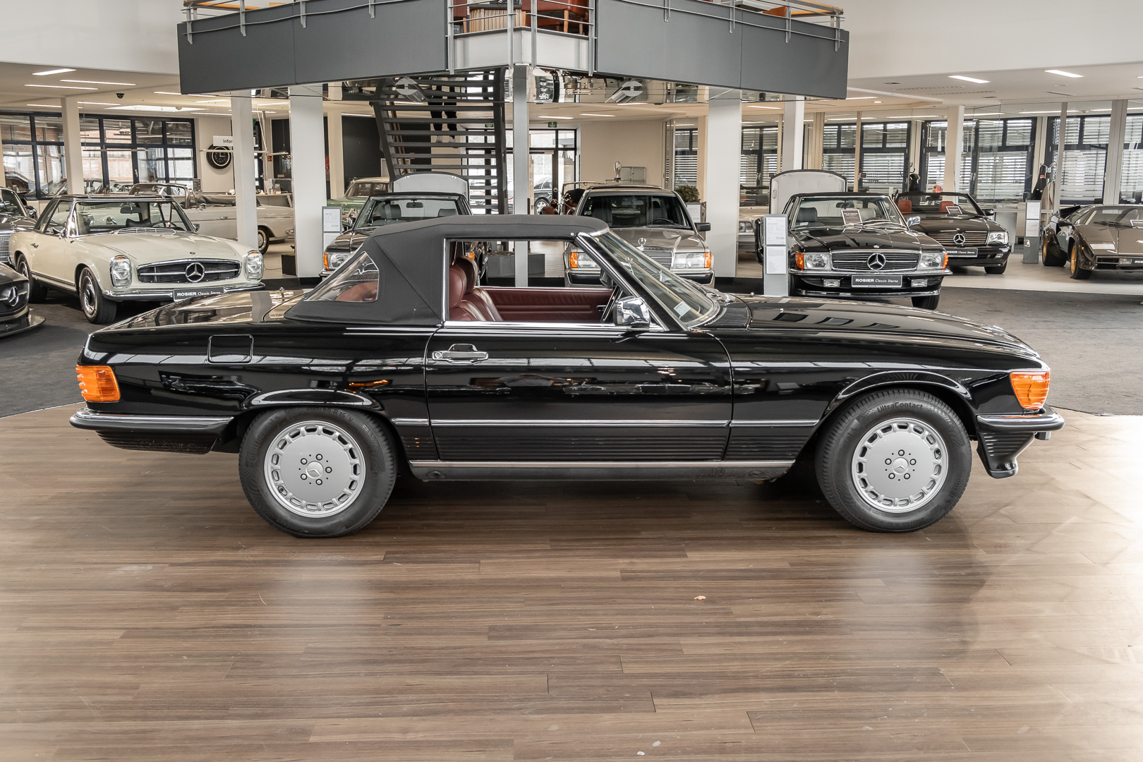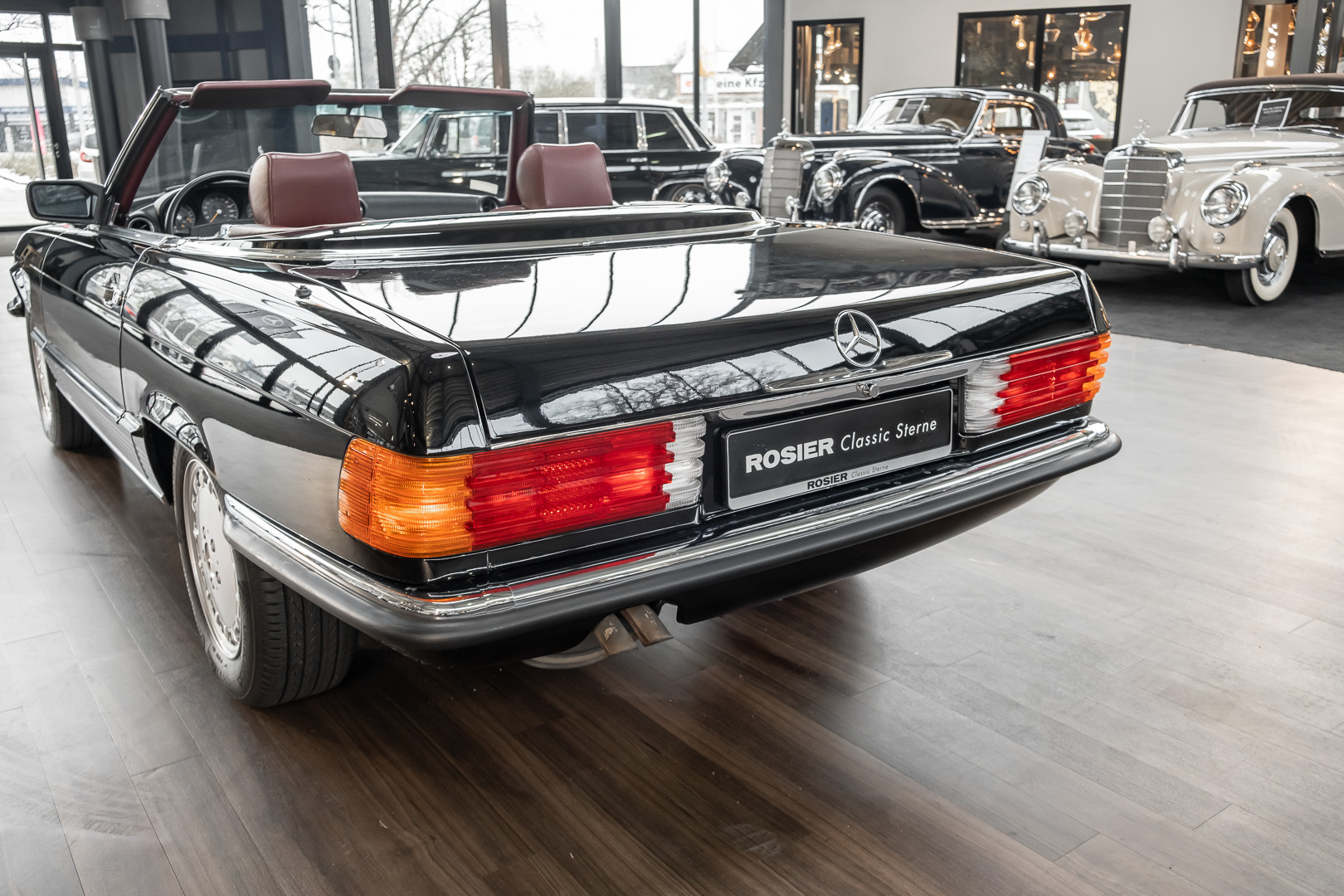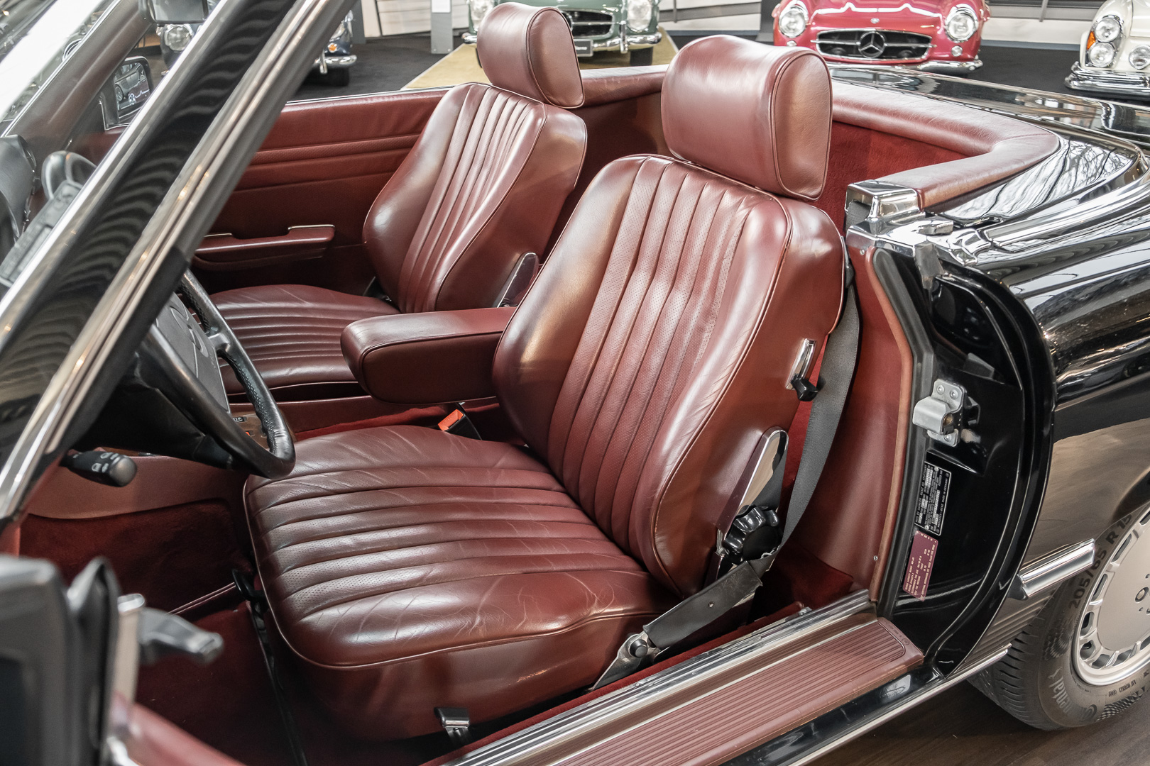Wir freuen uns, Ihnen diesen tollen 560 SL der begehrten Baureihe 107 anbieten zu können. Die seltene und charmante Farbkombination aus tiefschwarzem Lackkleid (040) und rotem Leder steht dem SL außerordneltich gut zu Gesicht. Das Fahrzeug ist komplett auf europischen Standard umgerüstet und besitzt ein sauberes Carfax. Eine tolle Gelegenheit ein gepflegtes Fahrzeug mit überschaubarer Laufleistung zu erwerben. Gerne führen wir Ihnen das Fahrzeug persönlich vor.