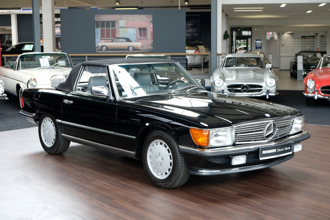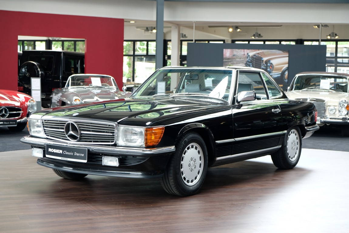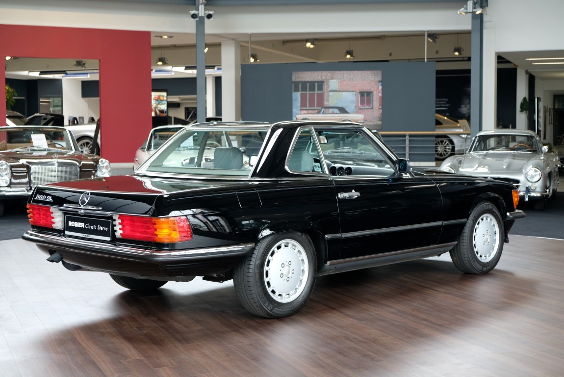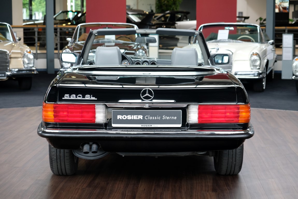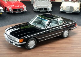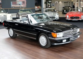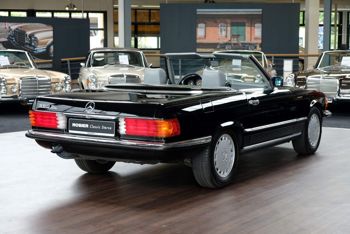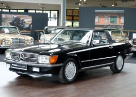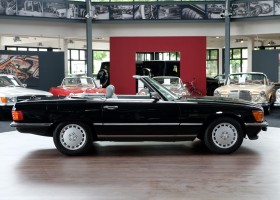 Der Roadster wurde am 10.09.1988 an ein vermögendes Ehepaar im sonnigen Kalifornien /USA ausgeliefert. Sie fuhren den Roadster bis Ende 1992 und verkauften ihn mit etwa 20.000 Meilen an ein befreundetes Ehepaar ebenfalls in Glendora/Kalifornien/USA. Dort verblieb der Wagen für die nächsten 22 Jahre. Alle Servicearbeiten wurden ordnungsgemäß gemacht, wie man der History Mappe des jetzigen Besitzers eindrucksvoll entnehmen kann. In 2014 hatte ein deutscher, auf Mercedes-Benz R 107 Modelle spezialisierter Händler, den zum Verkauf stehenden Wagen dem Ehepaar in Glendora abgekauft. Er holte den 560 SL mit erst 53.228 Meilen nach Norddeutschland. Das Erscheinungsbild wurde den deutschen Käuferwünschen entsprechend angepasst, der so ungeliebte Heckspoiler und das dicke 3. Bremslicht wurden entfernt. Ein Traum von einem Roadster, schwarz mit grauem Leder, gepflegt und stets gewartet. Gerade die stärksten 8 Zylinder Versionen der R107er Reihe erfreuen sich bei Sammlern und Liebhabern klassischer Automobile größter Beliebtheit. Sie gelten als zuverlässig, langlebig und wertstabil mit Potential nach oben.