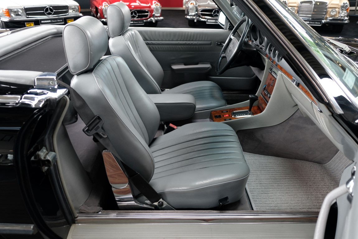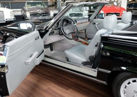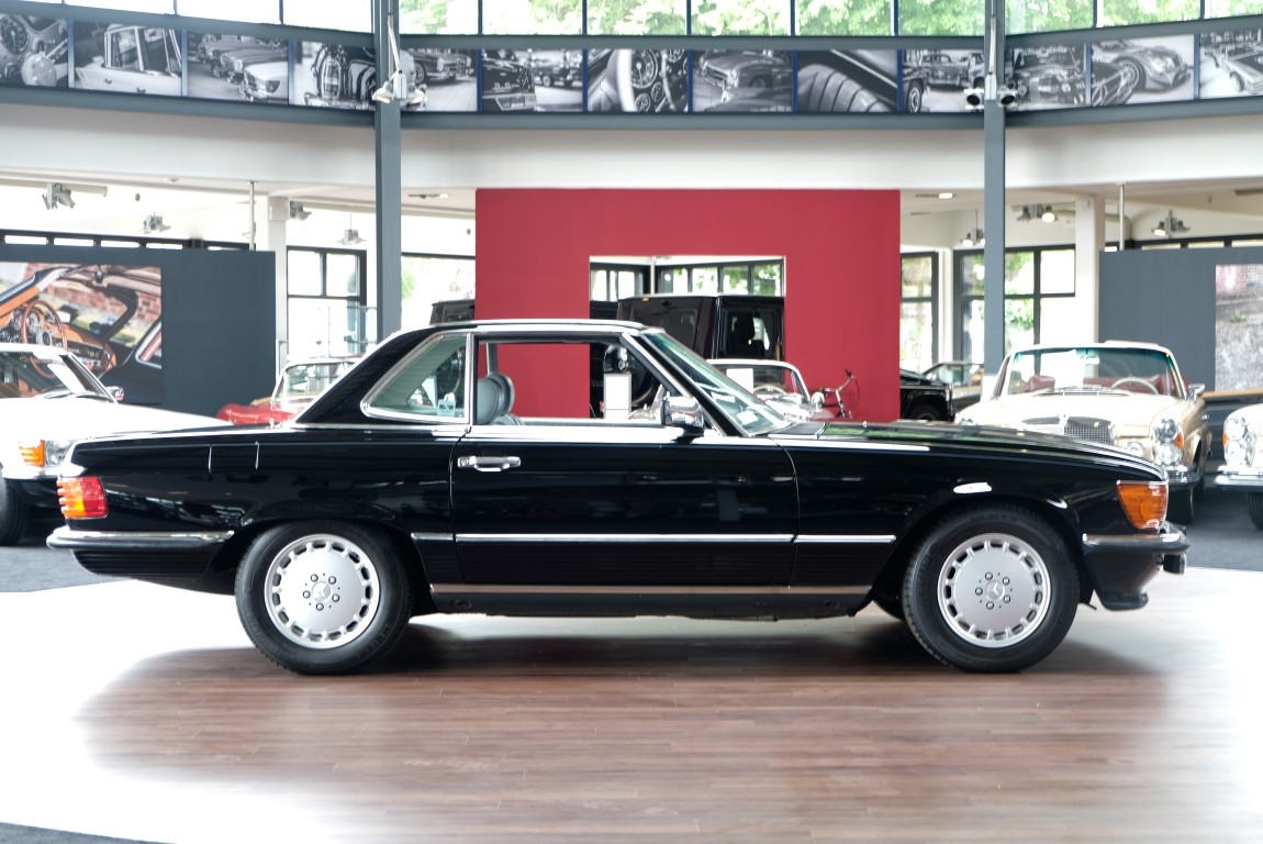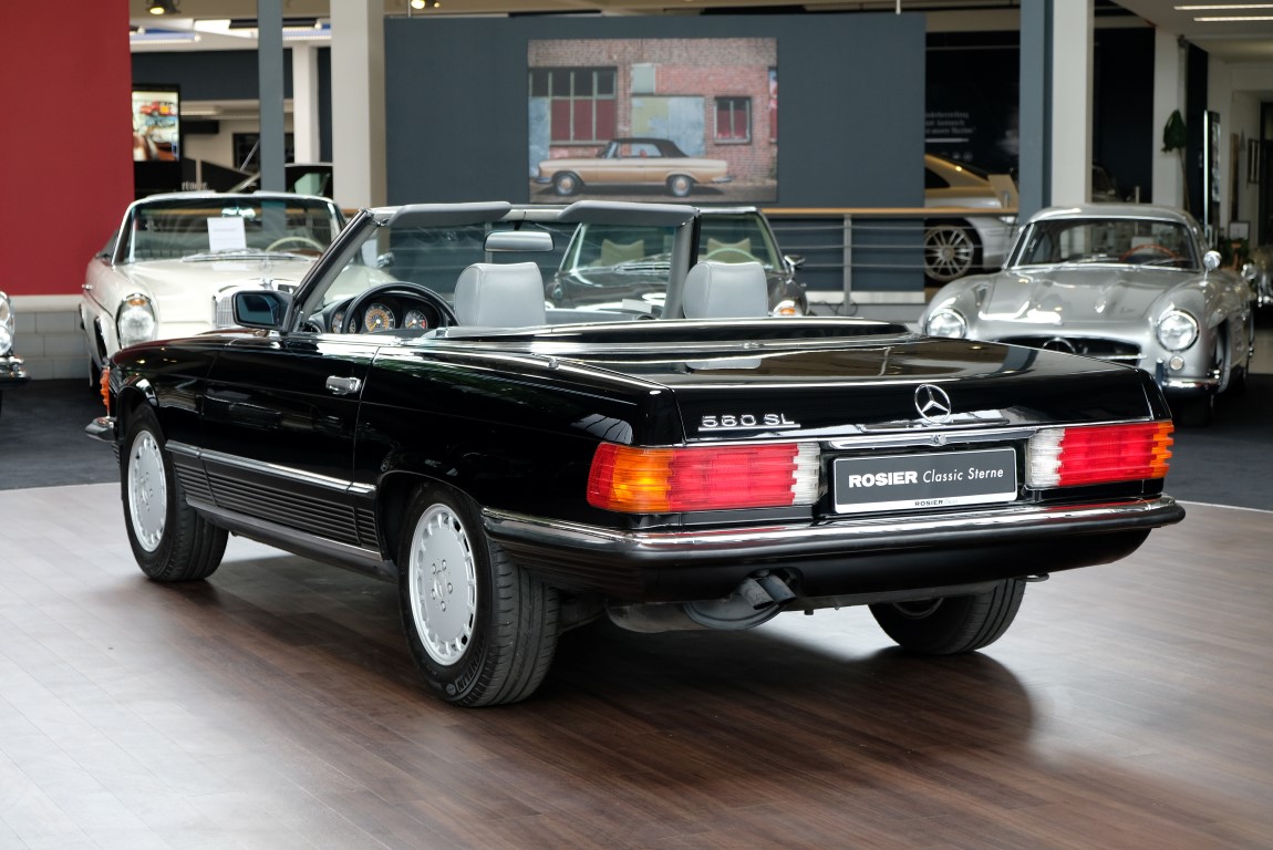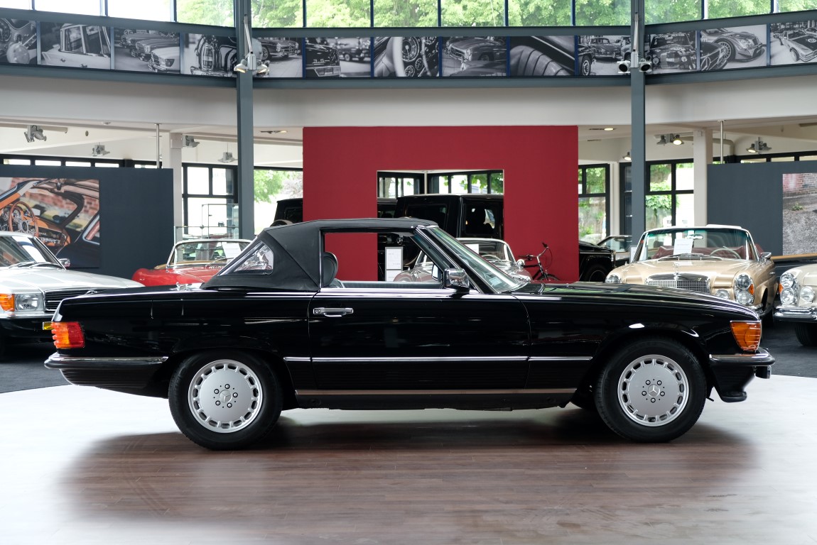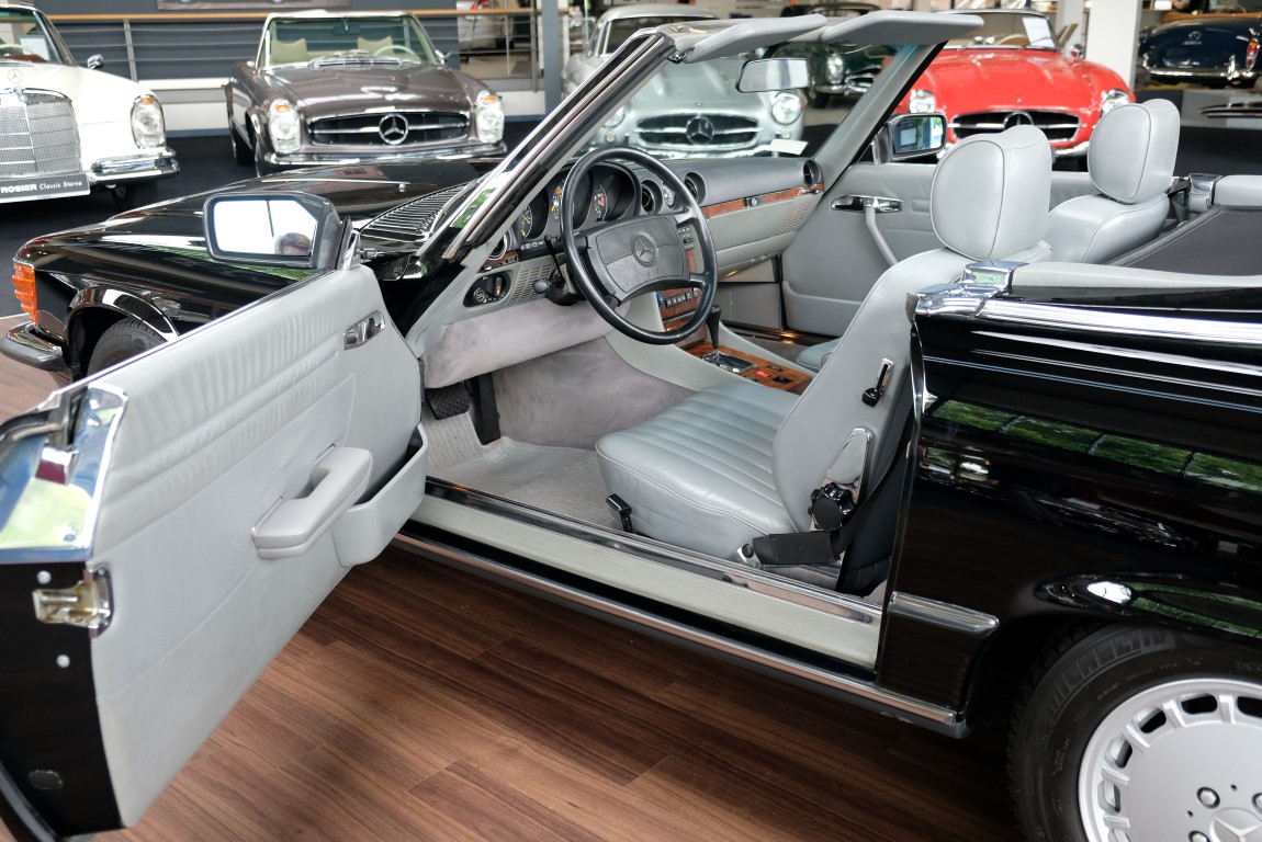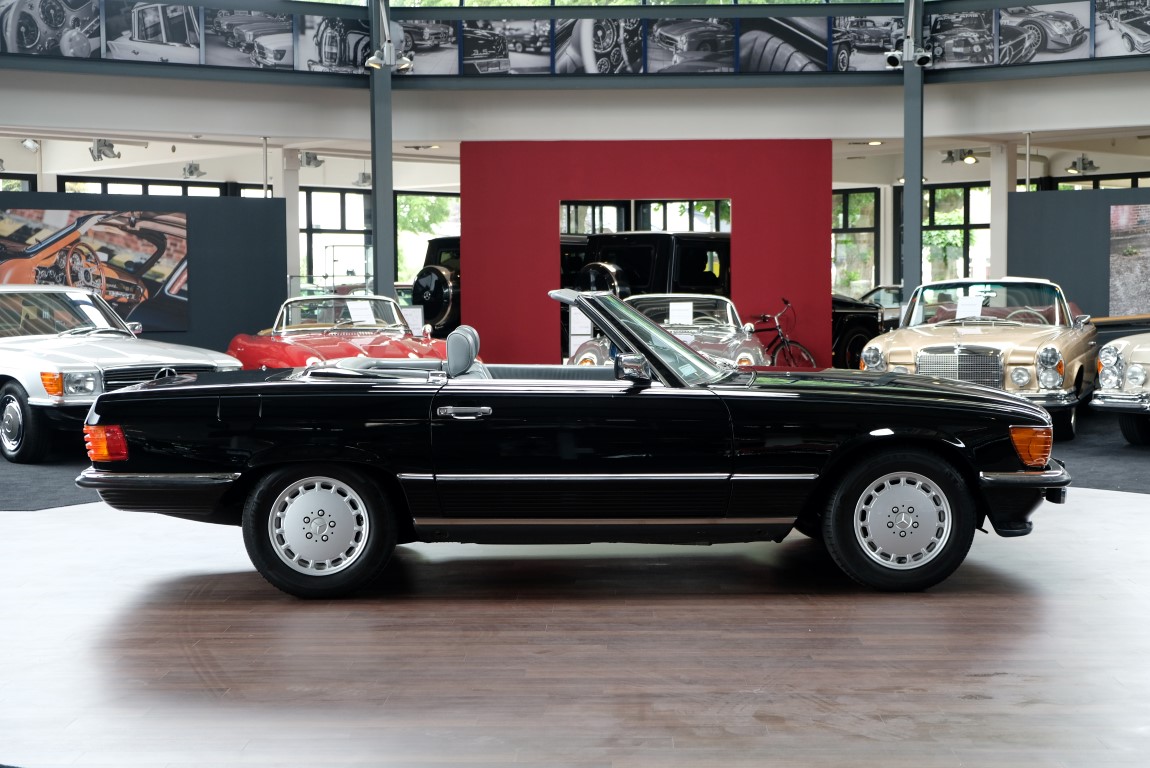 Der Roadster wurde am 10.09.1988 an ein vermögendes Ehepaar im sonnigen Kalifornien /USA ausgeliefert. Sie fuhren den Roadster bis Ende 1992 und verkauften ihn mit etwa 20.000 Meilen an ein befreundetes Ehepaar ebenfalls in Glendora/Kalifornien/USA. Dort verblieb der Wagen für die nächsten 22 Jahre. Alle Servicearbeiten wurden ordnungsgemäß gemacht, wie man der History Mappe des jetzigen Besitzers eindrucksvoll entnehmen kann. In 2014 hatte ein deutscher, auf Mercedes-Benz R 107 Modelle spezialisierter Händler, den zum Verkauf stehenden Wagen dem Ehepaar in Glendora abgekauft. Er holte den 560 SL mit erst 53.228 Meilen nach Norddeutschland. Das Erscheinungsbild wurde den deutschen Käuferwünschen entsprechend angepasst, der so ungeliebte Heckspoiler und das dicke 3. Bremslicht wurden entfernt. Ein Traum von einem Roadster, schwarz mit grauem Leder, gepflegt und stets gewartet. Gerade die stärksten 8 Zylinder Versionen der R107er Reihe erfreuen sich bei Sammlern und Liebhabern klassischer Automobile größter Beliebtheit. Sie gelten als zuverlässig, langlebig und wertstabil mit Potential nach oben.