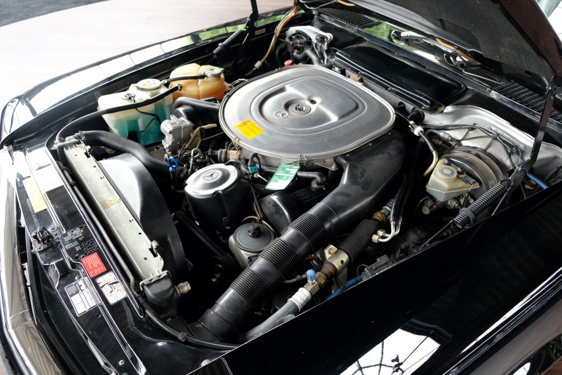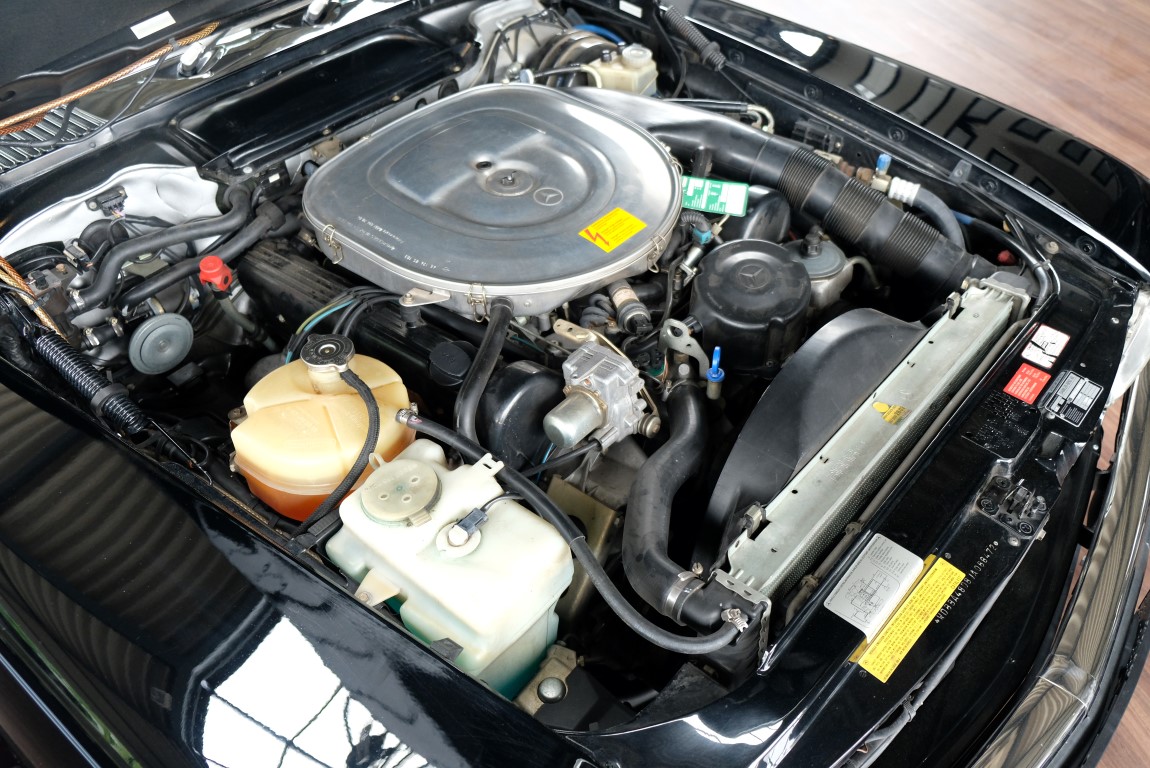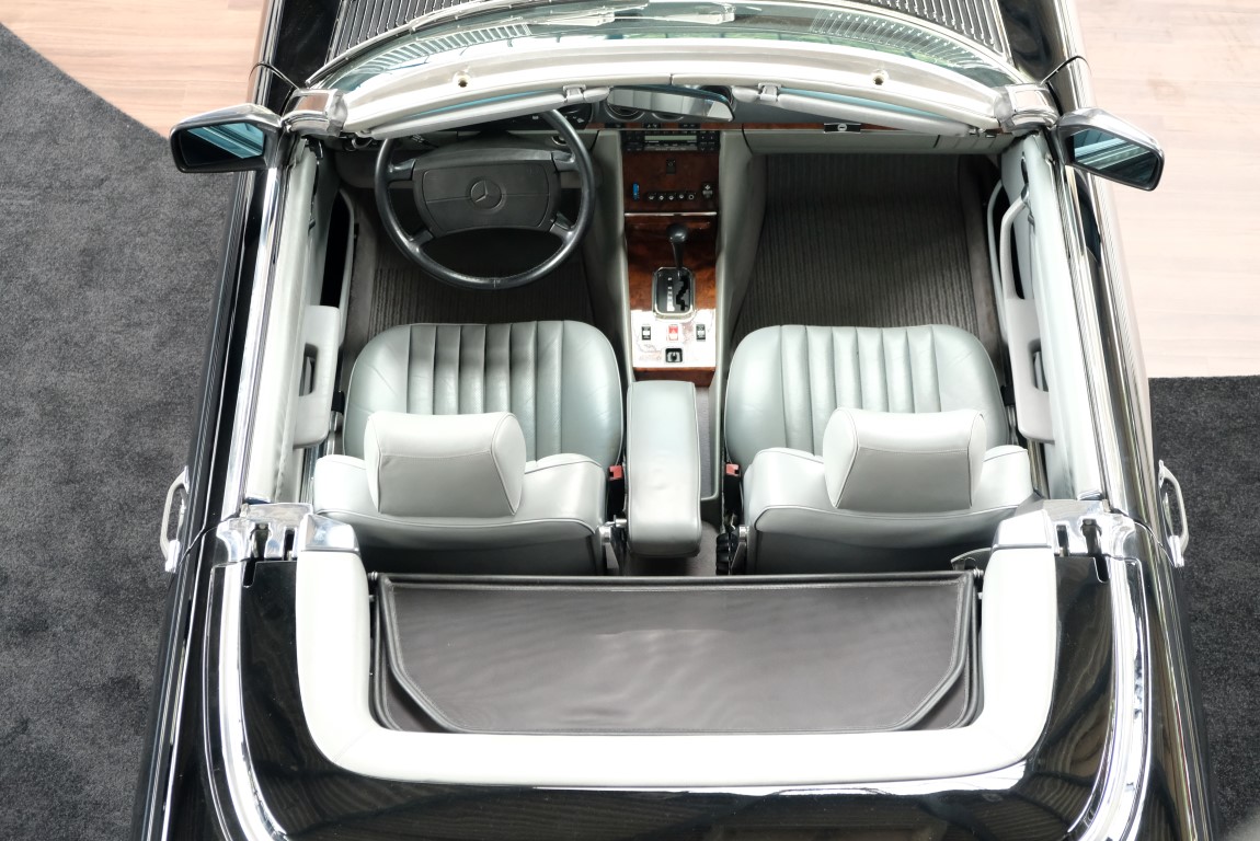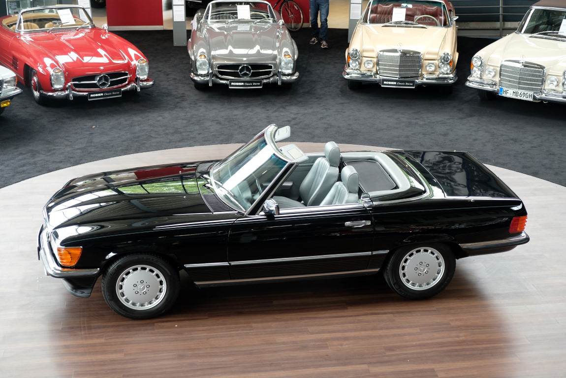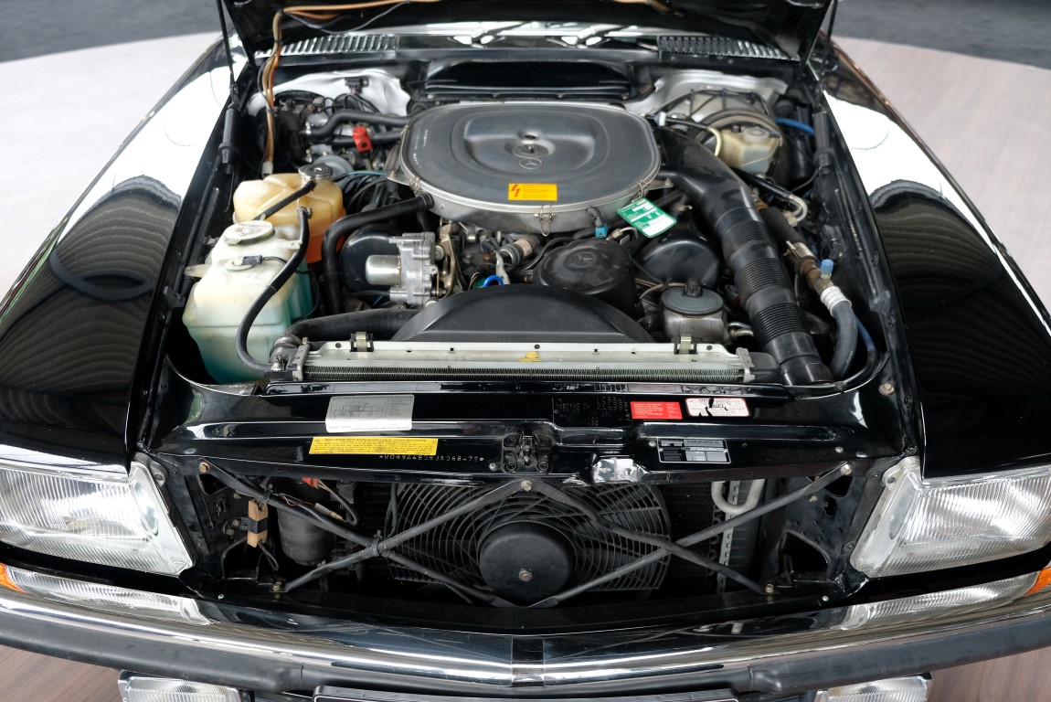 Der Roadster wurde am 10.09.1988 an ein vermögendes Ehepaar im sonnigen Kalifornien /USA ausgeliefert. Sie fuhren den Roadster bis Ende 1992 und verkauften ihn mit etwa 20.000 Meilen an ein befreundetes Ehepaar ebenfalls in Glendora/Kalifornien/USA. Dort verblieb der Wagen für die nächsten 22 Jahre. Alle Servicearbeiten wurden ordnungsgemäß gemacht, wie man der History Mappe des jetzigen Besitzers eindrucksvoll entnehmen kann. In 2014 hatte ein deutscher, auf Mercedes-Benz R 107 Modelle spezialisierter Händler, den zum Verkauf stehenden Wagen dem Ehepaar in Glendora abgekauft. Er holte den 560 SL mit erst 53.228 Meilen nach Norddeutschland. Das Erscheinungsbild wurde den deutschen Käuferwünschen entsprechend angepasst, der so ungeliebte Heckspoiler und das dicke 3. Bremslicht wurden entfernt. Ein Traum von einem Roadster, schwarz mit grauem Leder, gepflegt und stets gewartet. Gerade die stärksten 8 Zylinder Versionen der R107er Reihe erfreuen sich bei Sammlern und Liebhabern klassischer Automobile größter Beliebtheit. Sie gelten als zuverlässig, langlebig und wertstabil mit Potential nach oben.