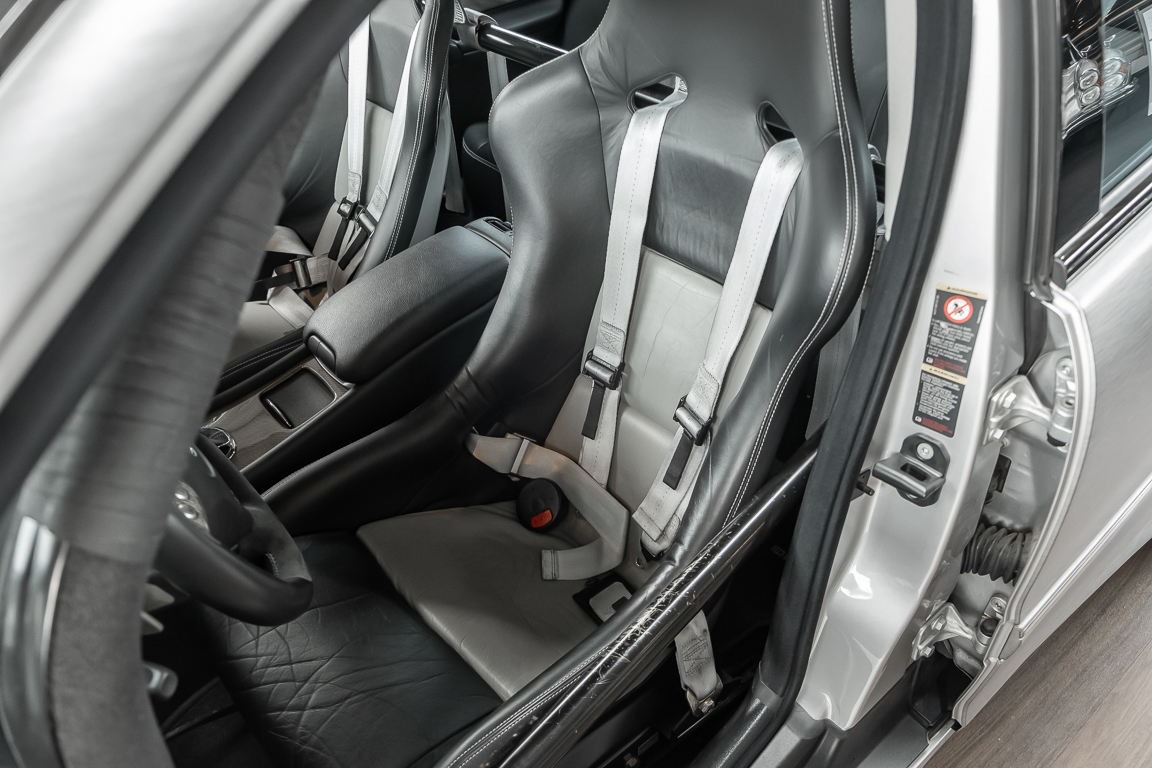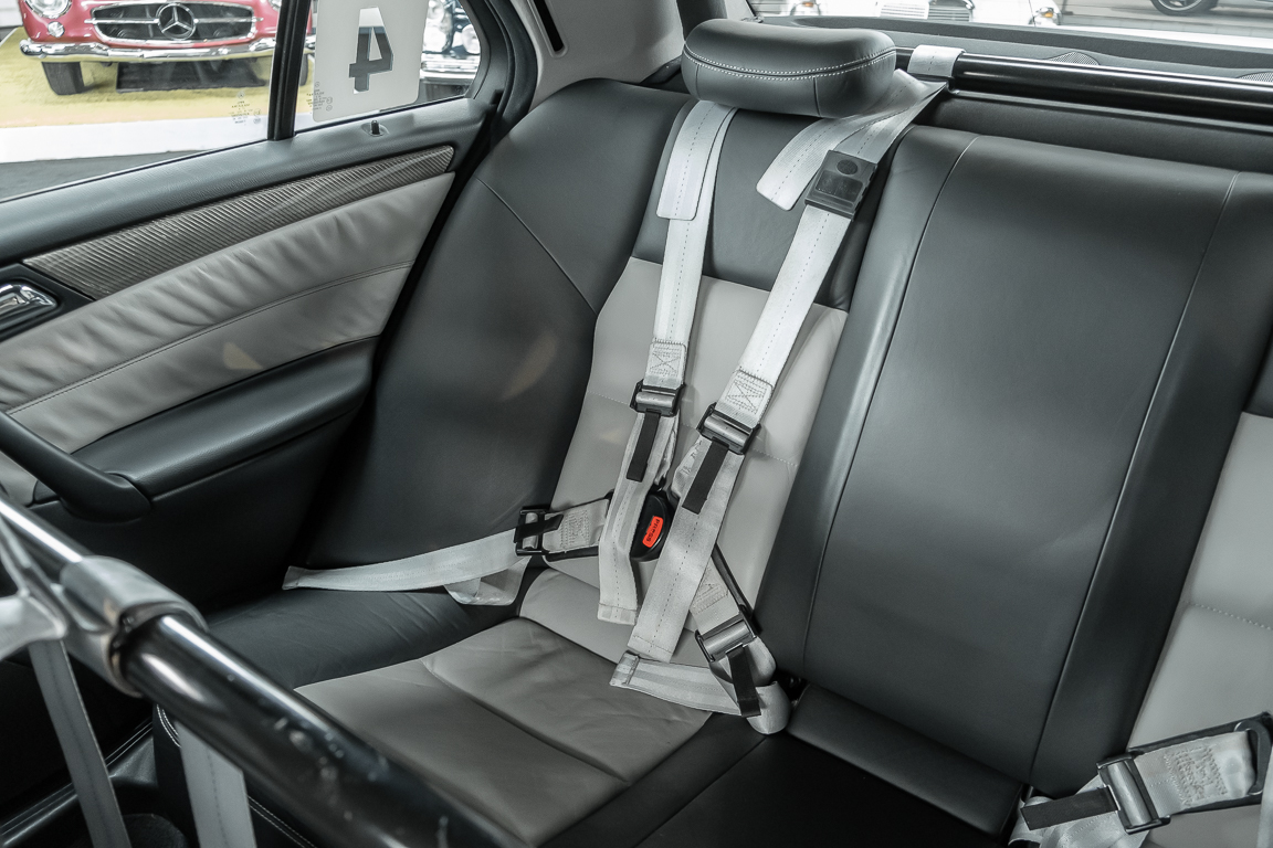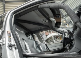 Mit einem optimierten Fahrwerk, und kompletter Karosserieversteifungen dank Überrollkäfig wurde das Fahrzeug nach ONS-Standard auf Renntauglichkeit getrimmt. Alle vier Passagiere werden mit Fünfpunktgurt in Ihren Sitzen gehalten, wenn die – eigentlich so biedere Limousine – kräftig anschiebt und erstaunlich dynamisch auf Lastwechsel reagiert.