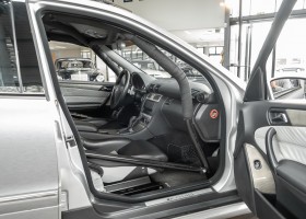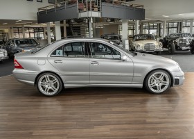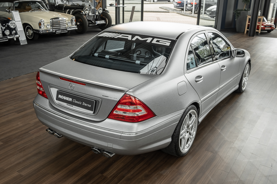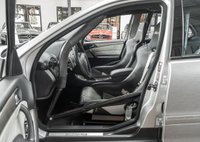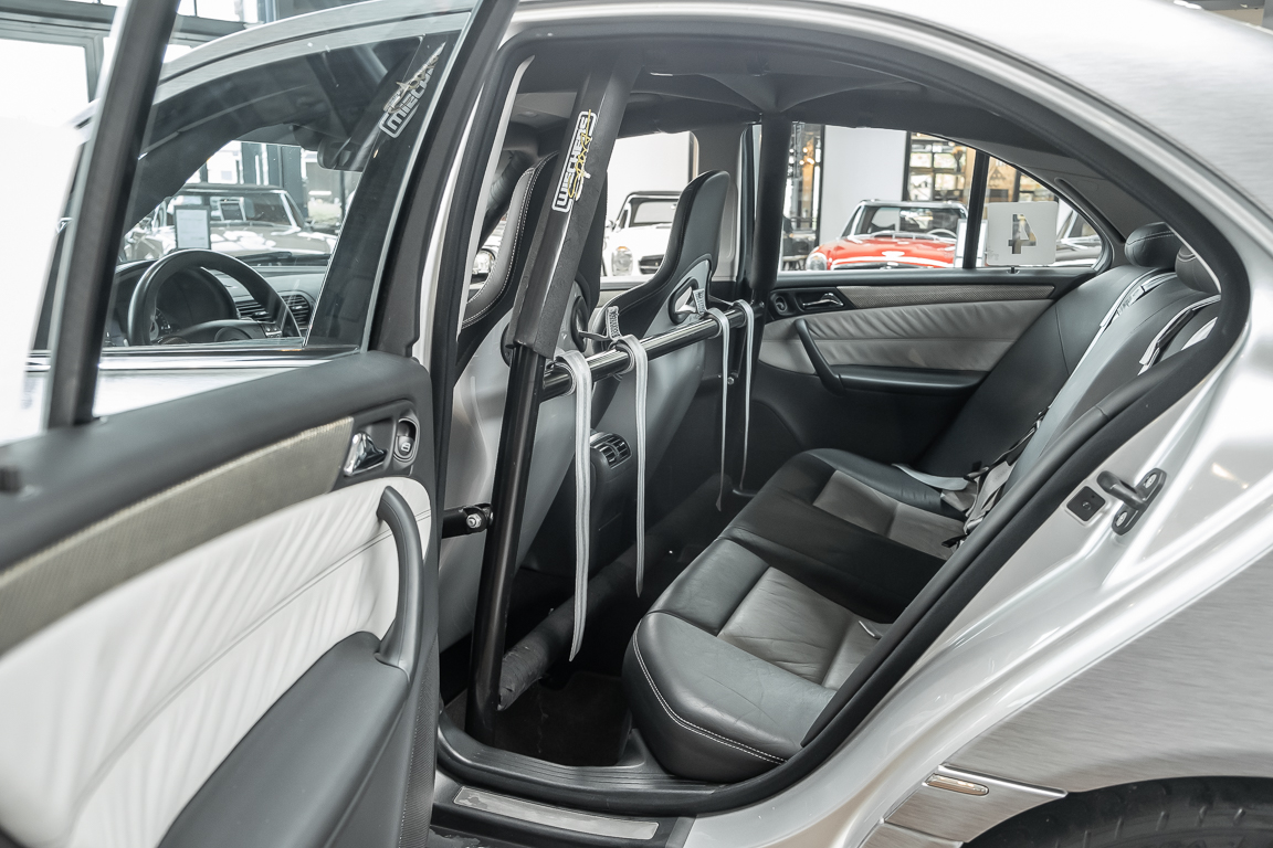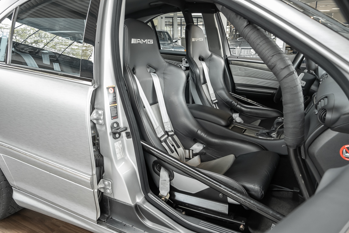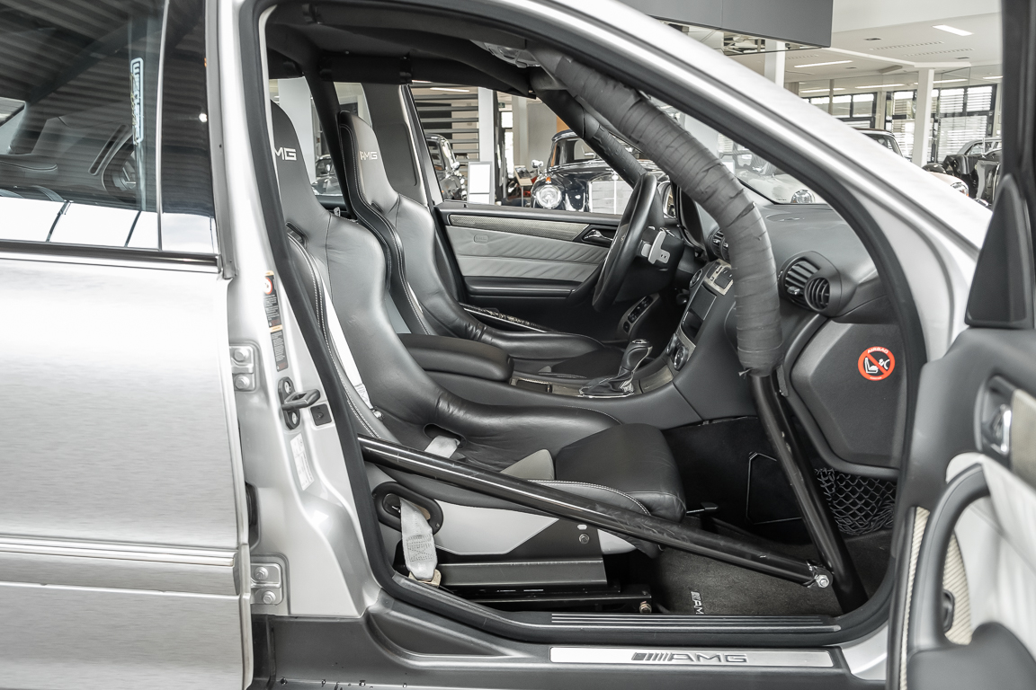 Einen ganz besonderen Vertreter der AMG-Gattung können wir Ihnen mit diesem C55 AMG Tracksport anbieten. Neben dem „klassischen“ Mercedes Tuning im Serienprozess baute AMG immer wieder auch Kleinstserien auf Individualwunsch. Im offiziellen Auftrag von AMG wurde bei der Firma HWA der Umbau von insgesamt nur 4 Fahrzeugen beauftragt, die für Rennsportveranstaltungen der Formel1 sowie der DTM als Renntaxis und Vorausfahrzeugen gebraucht wurden. Inhaber und Namensgeber der HWA AG war kein geringerer als Hans Werne Aufrecht, der zusammen mit Erhard Melcher im Jahre 1967 das Automobilsport-Unternehmen AMG gründete und später an die Daimler AG verkaufte. Aufrechts Spezialgebiet blieb aber immer der Umbau bzw- Aufbau spezieller Rennausführungen. Auch dank seiner Mitarbeit ist das erste Black Series Modell der Mercedes-Geschichte, der SLK 55 AMG Black Series zu einem durchschlagenden Erfolg geworden.