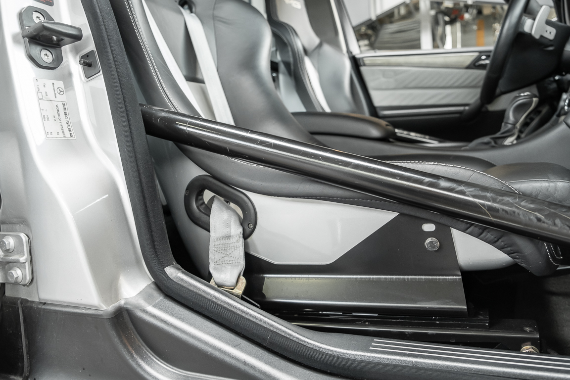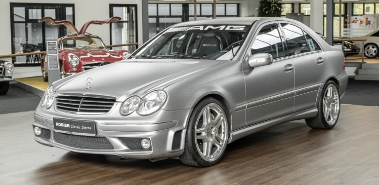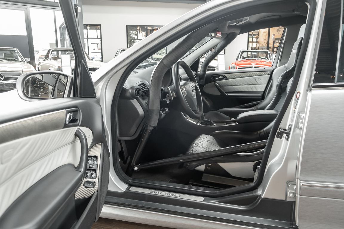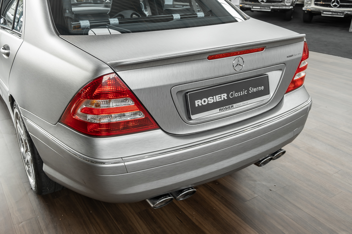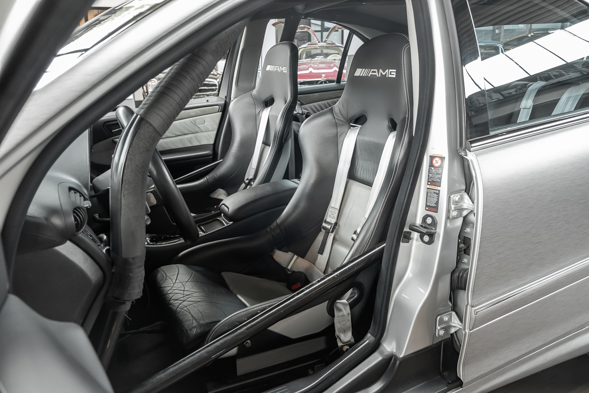 Einen ganz besonderen Vertreter der AMG-Gattung können wir Ihnen mit diesem C55 AMG Tracksport anbieten. Neben dem „klassischen“ Mercedes Tuning im Serienprozess baute AMG immer wieder auch Kleinstserien auf Individualwunsch. Im offiziellen Auftrag von AMG wurde bei der Firma HWA der Umbau von insgesamt nur 4 Fahrzeugen beauftragt, die für Rennsportveranstaltungen der Formel1 sowie der DTM als Renntaxis und Vorausfahrzeugen gebraucht wurden. Inhaber und Namensgeber der HWA AG war kein geringerer als Hans Werne Aufrecht, der zusammen mit Erhard Melcher im Jahre 1967 das Automobilsport-Unternehmen AMG gründete und später an die Daimler AG verkaufte. Aufrechts Spezialgebiet blieb aber immer der Umbau bzw- Aufbau spezieller Rennausführungen. Auch dank seiner Mitarbeit ist das erste Black Series Modell der Mercedes-Geschichte, der SLK 55 AMG Black Series zu einem durchschlagenden Erfolg geworden.