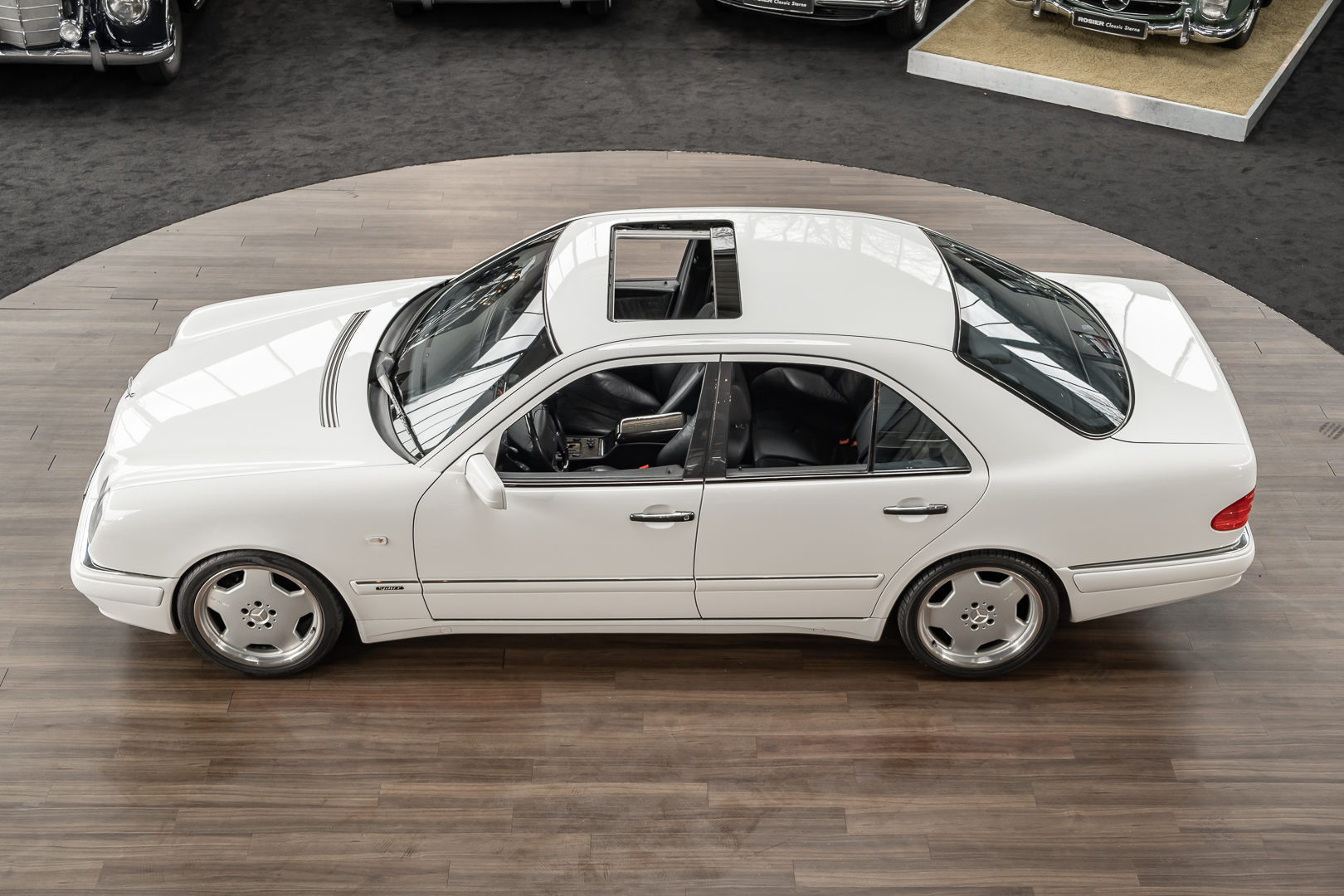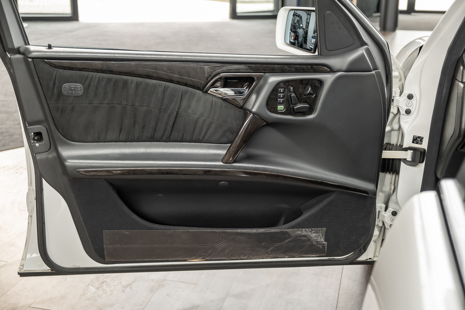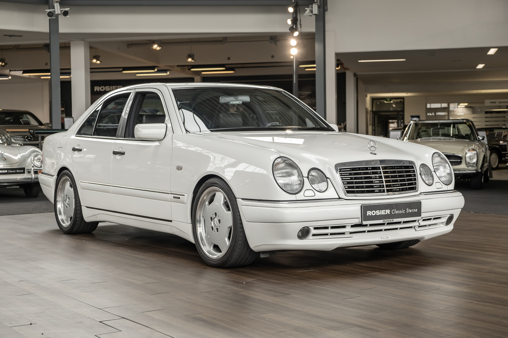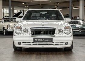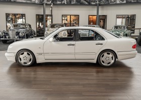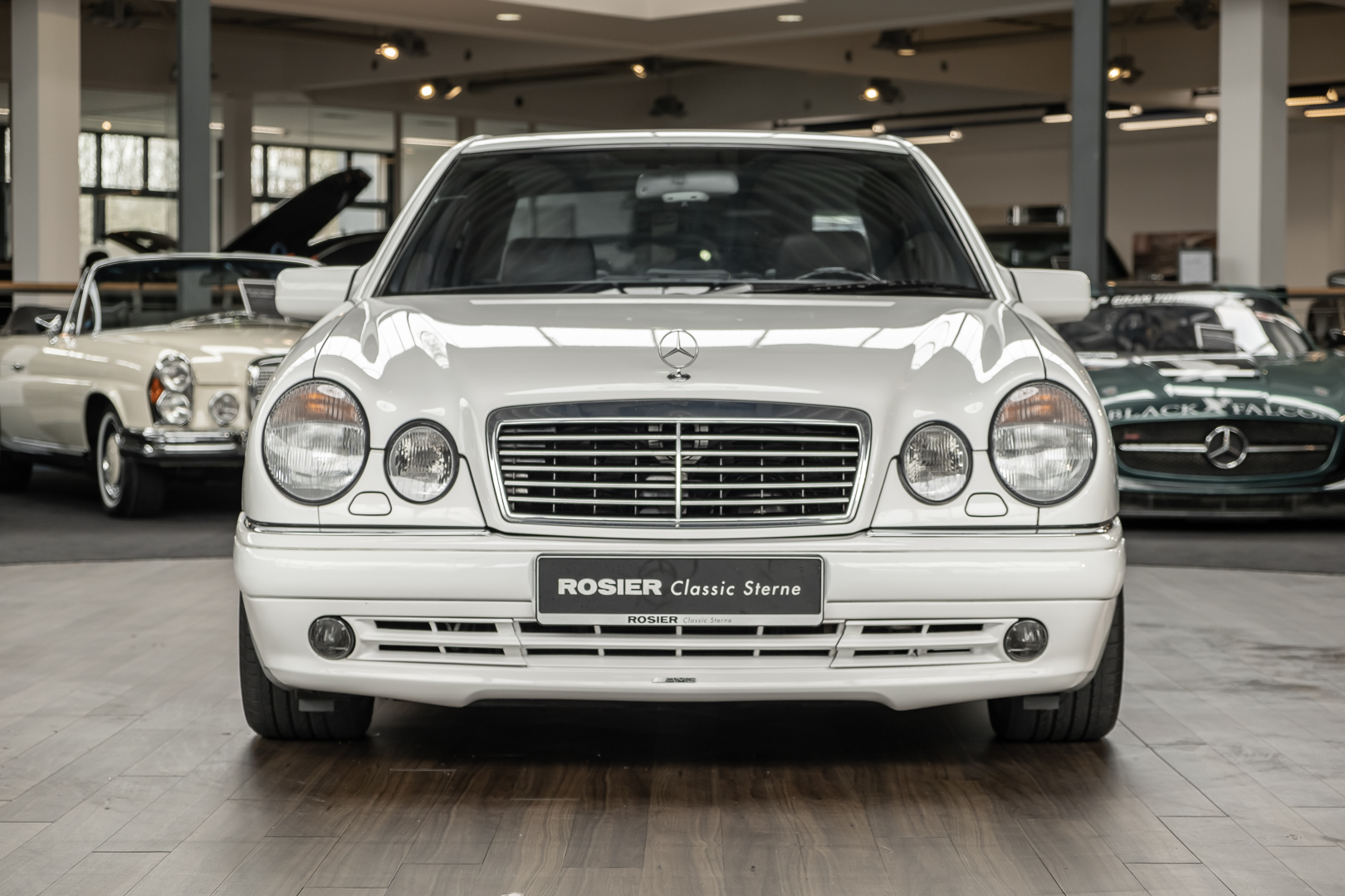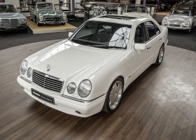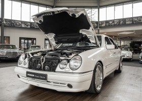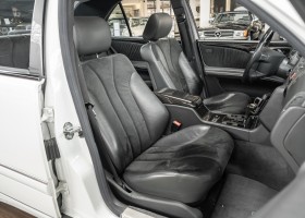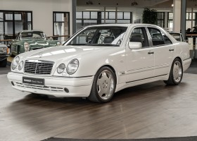 Wir freuen uns, Ihnen dieses 210er-Schmuckstück aus dem Hause AMG anbieten zu können. Zunächst verließ diese AMG-Rarität das Werk in Sindelfingen als E 50 AMG, der mit 347 PS bereits ausreichend Kraftreserven bereithielt. Bestimmt war die vollausgestattete Sport-Limousine in firnweiß für einen japanischen Kunden, der das Exklusive liebte. Genau das war der Grund, warum das Fahrzeug – vor der langen Reise nach Japan – erst noch nach Affalterbach gelang, wo die AMG-Experten auf die besondere Anfrage hin, den Umbau auf den leistungsgesteigerten E 60 AMG vornahmen. Der Umbau umfasste eine Leistungssteigerung durch AMG auf den hubraumvergrößerten Motor M 119-6.0 Kat, eine geänderte Achsübersetzung sowie angepasstes Getriebesteuergerät sowie ein AMG Holz-/Leder-Airbaglenkrad.