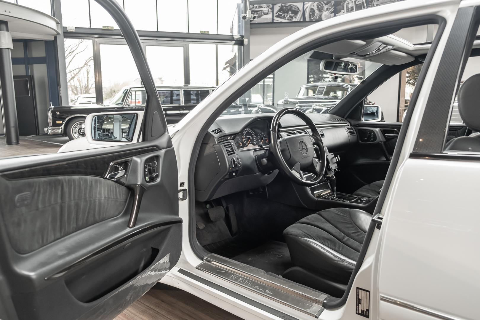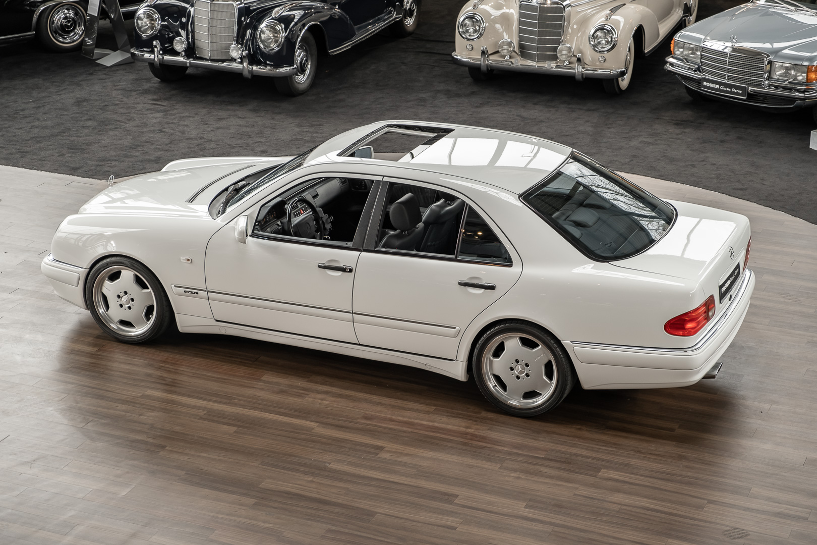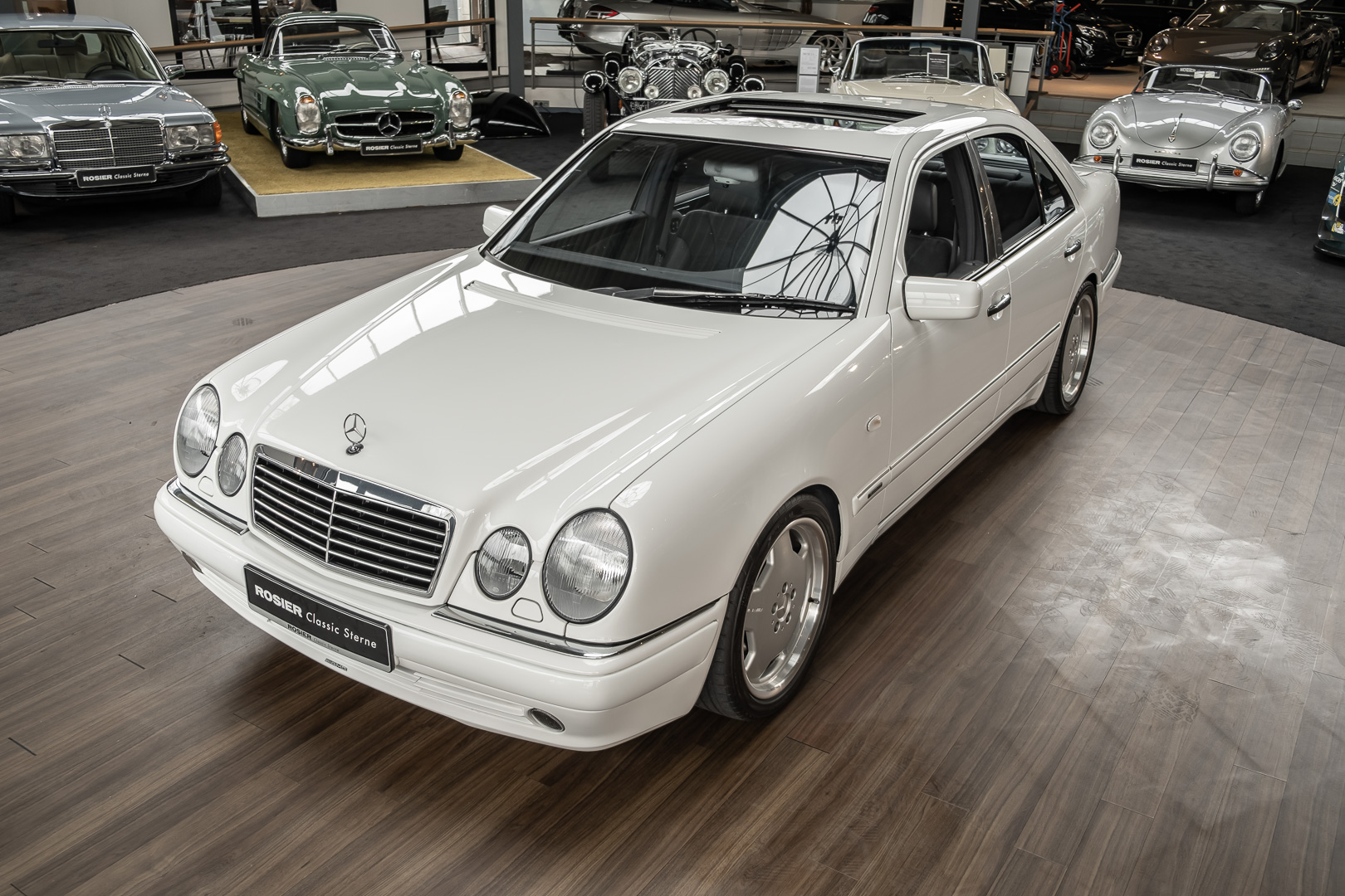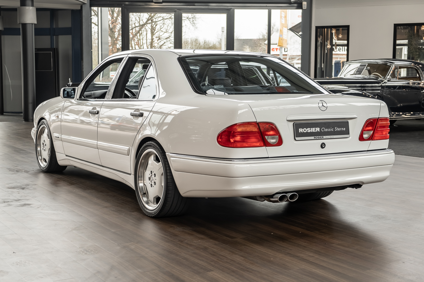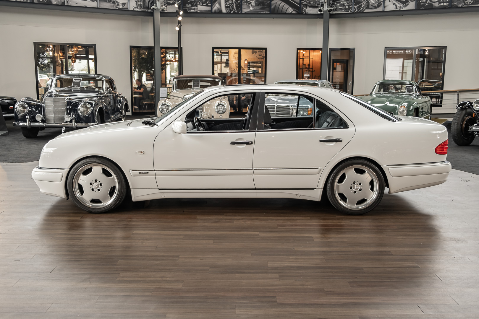 Wir freuen uns, Ihnen dieses 210er-Schmuckstück aus dem Hause AMG anbieten zu können. Zunächst verließ diese AMG-Rarität das Werk in Sindelfingen als E 50 AMG, der mit 347 PS bereits ausreichend Kraftreserven bereithielt. Bestimmt war die vollausgestattete Sport-Limousine in firnweiß für einen japanischen Kunden, der das Exklusive liebte. Genau das war der Grund, warum das Fahrzeug – vor der langen Reise nach Japan – erst noch nach Affalterbach gelang, wo die AMG-Experten auf die besondere Anfrage hin, den Umbau auf den leistungsgesteigerten E 60 AMG vornahmen. Der Umbau umfasste eine Leistungssteigerung durch AMG auf den hubraumvergrößerten Motor M 119-6.0 Kat, eine geänderte Achsübersetzung sowie angepasstes Getriebesteuergerät sowie ein AMG Holz-/Leder-Airbaglenkrad.