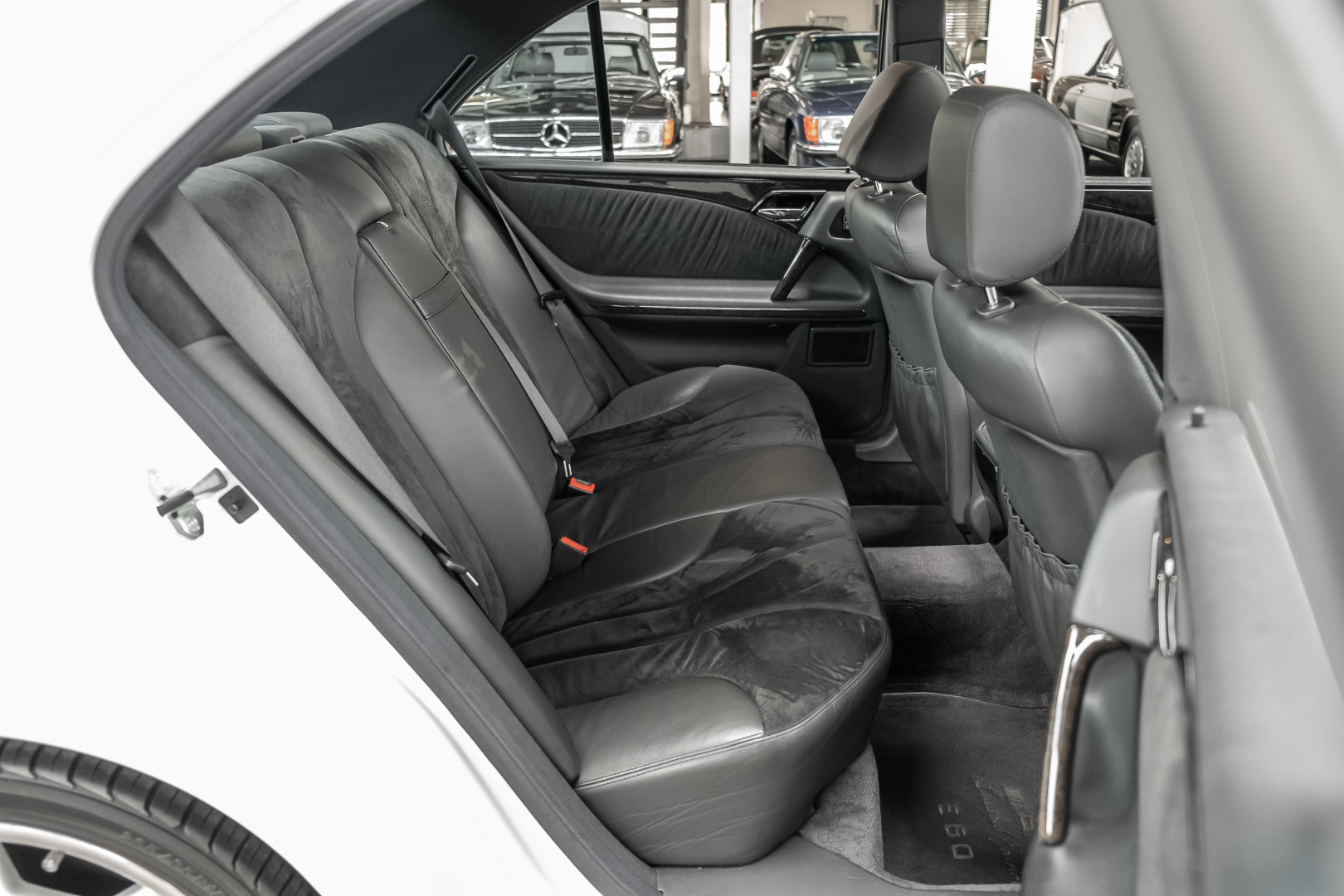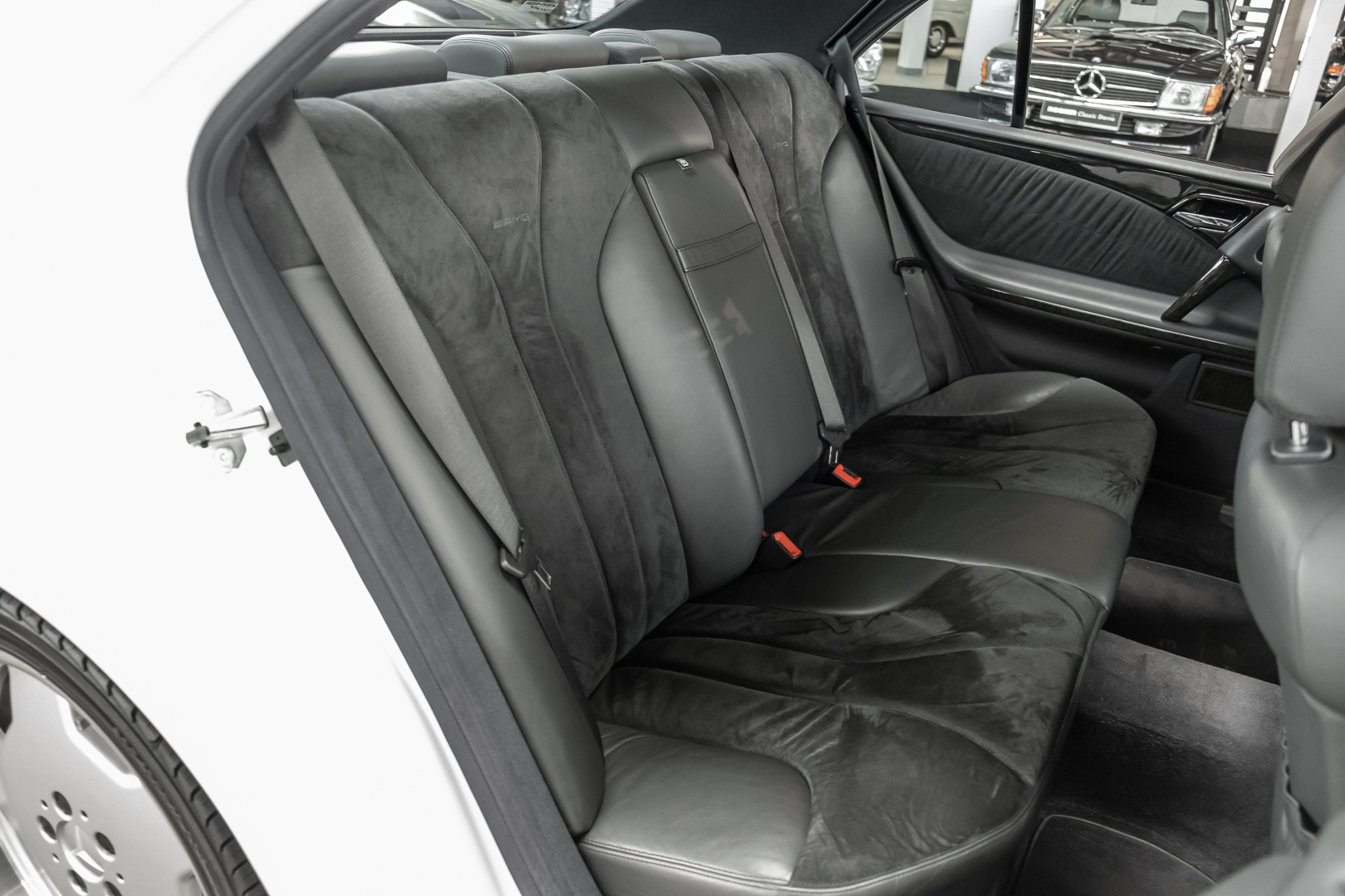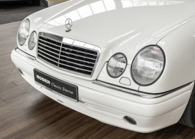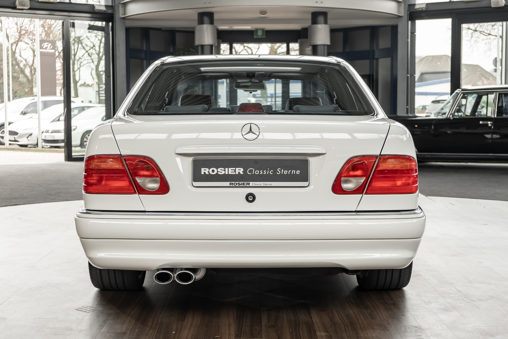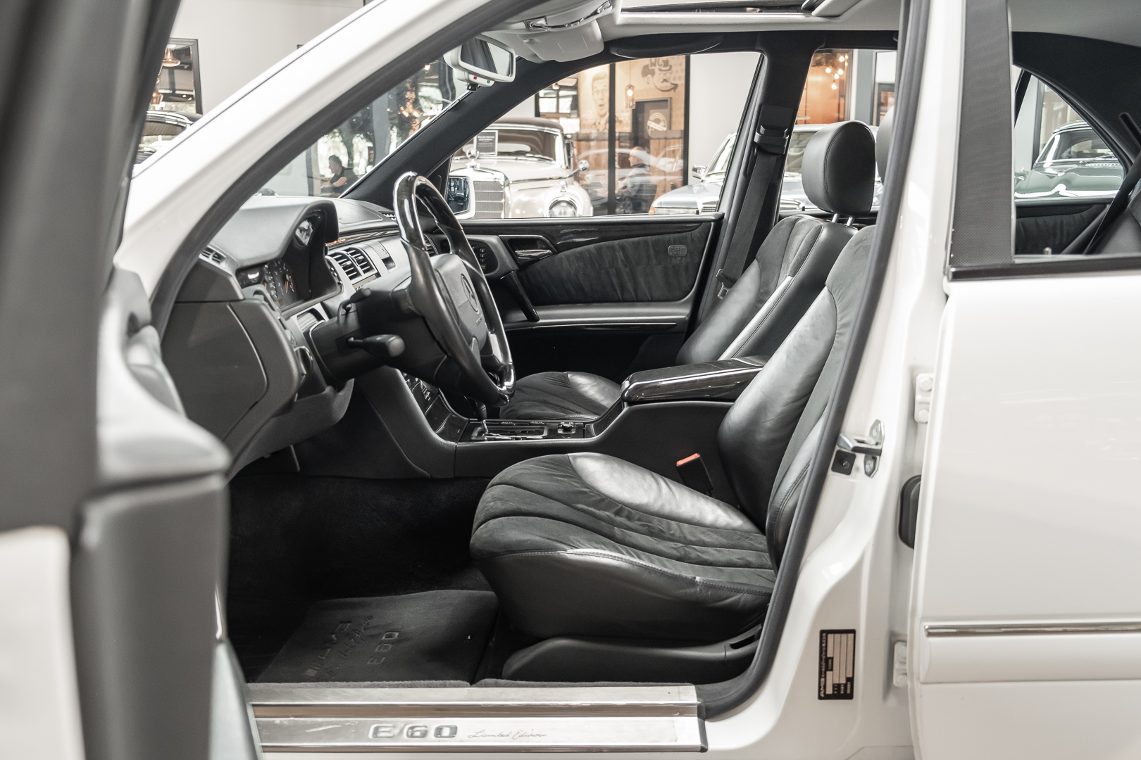 Wir freuen uns, Ihnen dieses 210er-Schmuckstück aus dem Hause AMG anbieten zu können. Zunächst verließ diese AMG-Rarität das Werk in Sindelfingen als E 50 AMG, der mit 347 PS bereits ausreichend Kraftreserven bereithielt. Bestimmt war die vollausgestattete Sport-Limousine in firnweiß für einen japanischen Kunden, der das Exklusive liebte. Genau das war der Grund, warum das Fahrzeug – vor der langen Reise nach Japan – erst noch nach Affalterbach gelang, wo die AMG-Experten auf die besondere Anfrage hin, den Umbau auf den leistungsgesteigerten E 60 AMG vornahmen. Der Umbau umfasste eine Leistungssteigerung durch AMG auf den hubraumvergrößerten Motor M 119-6.0 Kat, eine geänderte Achsübersetzung sowie angepasstes Getriebesteuergerät sowie ein AMG Holz-/Leder-Airbaglenkrad.