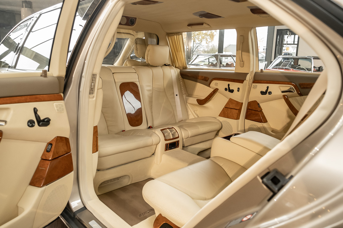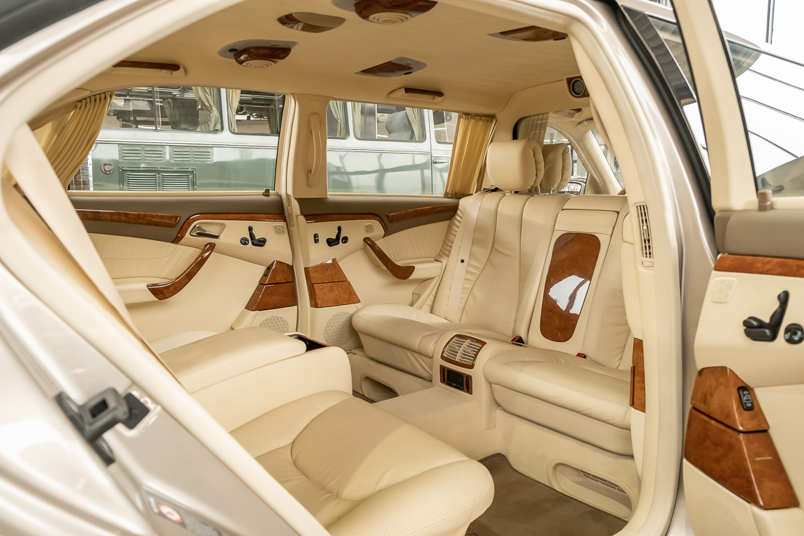 Wir freuen uns, eine außerordentlich seltene Mercedes-Benz S-Klasse anbieten zu können: einen einmaligen S600 Pullman mit langem Radstand, der mit dem vergrößerten 6,3-Liter-V12-Saugmotor von AMG ausgestattet ist und 444 PS leistet. Diese opulente und leistungsstarke Limousine, die komplett von Mercedes-Benz gebaut wurde, wurde für den Vorsitzenden eines der weltgrößten Elektronikkonzerns bestellt. Im Gegensatz zu den wenigen anderen W220-Pullmans, die gebaut wurden, erhielt dieser Wagen eine seltene Option, die nur einen Monat lang im Jahr 2001 über AMG erhältlich war: einen vergrößerten 6,3-Liter-V12, der 77 PS mehr leistete als der Standard-V12. Pullmans gehören seit den frühen 1930er Jahren zum Erbe der S-Klasse von Mercedes-Benz und sind weltweit bei Würdenträgern, Branchenführern und Kunden, für die Privatsphäre an erster Stelle steht, sehr begehrt. Dieser S600 aus dem Jahr 2001 wurde für Fahrten des Vorsitzenden an der Westküste eingesetzt und weist nur 9.600 Meilen auf dem Kilometerzähler auf. Er wurde gemäß den Anforderungen von Mercedes-Benz gepflegt und gewartet und erscheint im Wesentlichen wie neu. Dieser Pullman ist einen ganzen Meter länger als ein normaler S600. Eine Luxuslimousine mit hohem Komfort, kraftvollem und flüsterleisem 12 Zylinder-Motor, vis-à-vis Bestuhlung und einmalig eleganter Ausstrahlung. Kommen Sie und sehen Sie selbst, wir beraten Sie gerne.