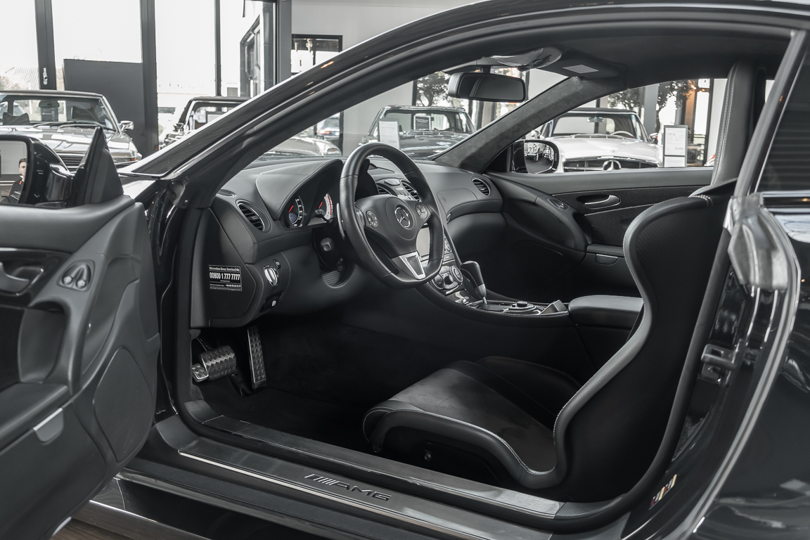 Wir freuen uns, Ihnen diesen Ausnahme SL anbieten zu können. Als Speerspitze der Baureihe 230 produzierte Mercedes-Benz ab 2008 in Zusammenarbeit mit dem Mercedes Motorsport-Spezialisten AMG eine atemberaubende Fahrmaschine, den SL 65 Black Series. Mit einer Stückzahl von 350 produzierten Fahrzeugen kamen jedoch nur Wenige in den Genuss der schier unbändigen Kraft des doppelt aufgeladenen V12 Triebwerks mit brachialen 670 PS Leistung und einem monströsen Drehmoment von 1.000 Nm.