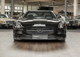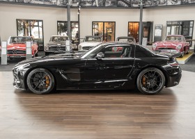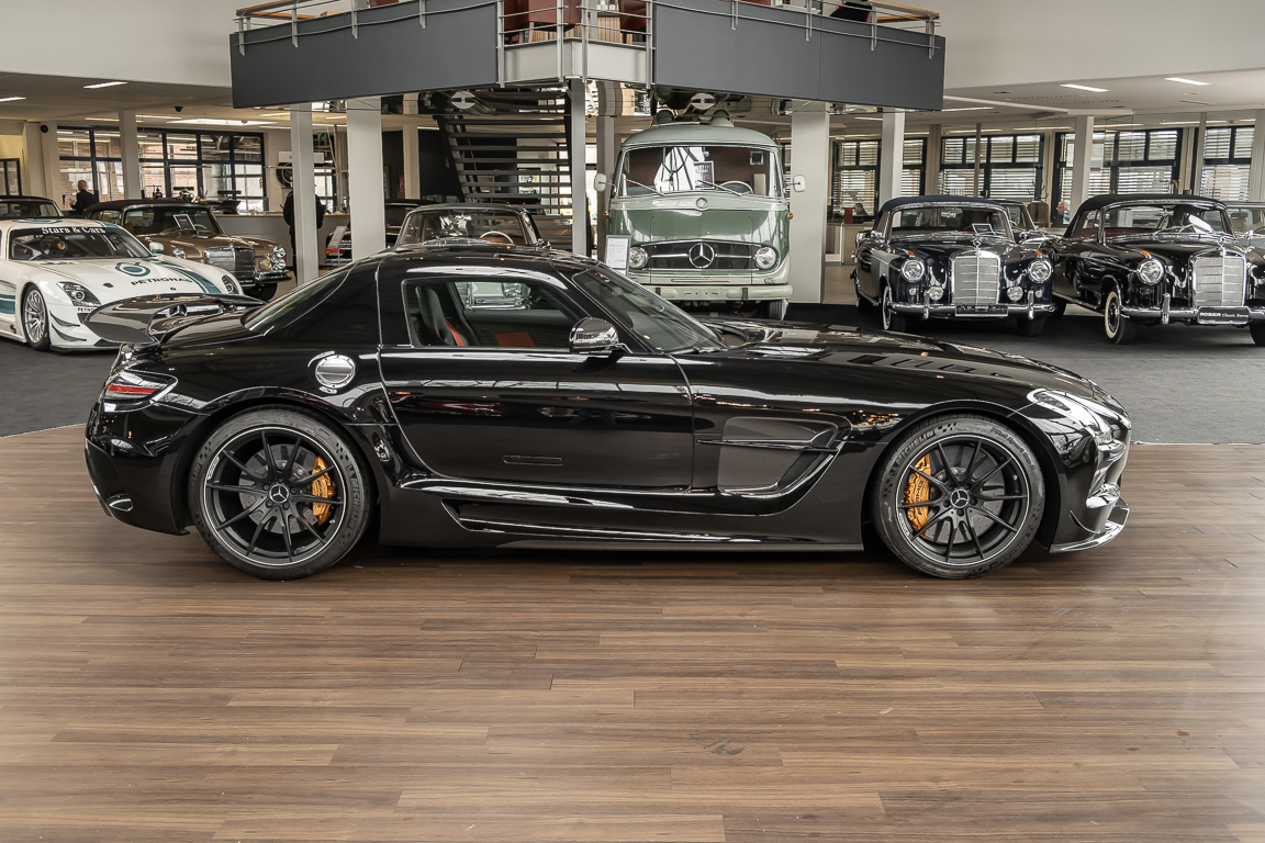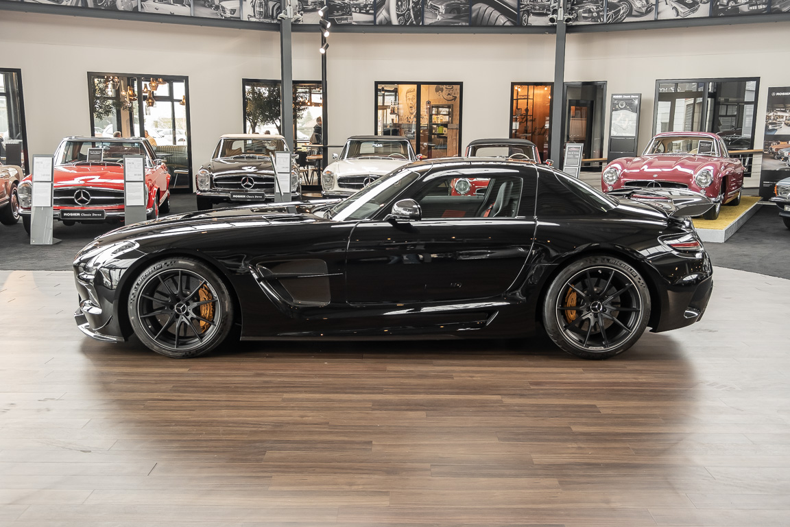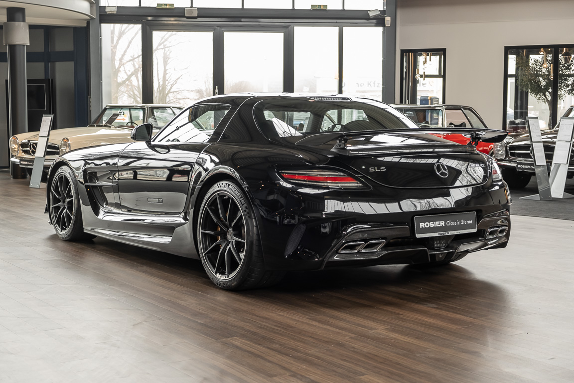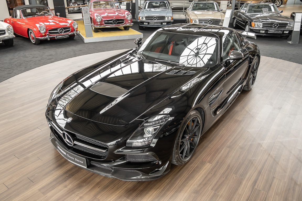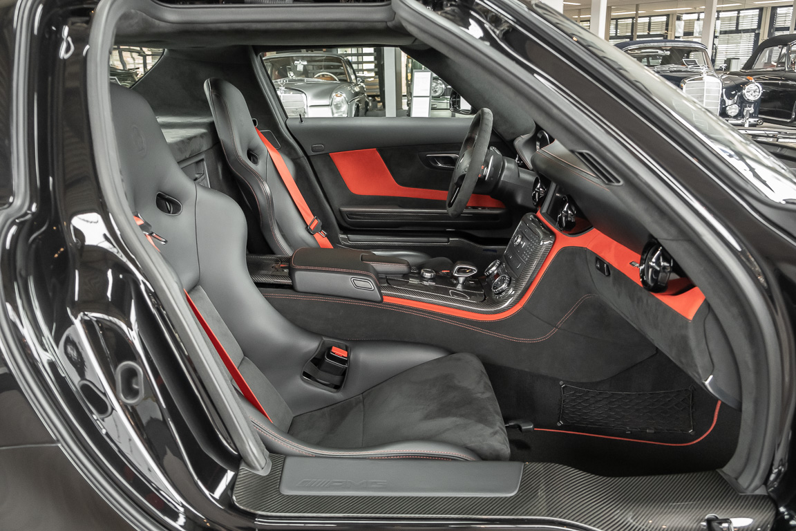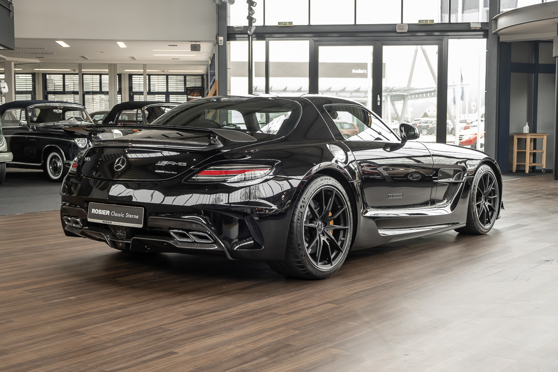 Wir freuen uns, Ihnen die nächste Flügeltür-Ikone nach dem legendären 300 SL anbieten zu können. Der Mercedes-Benz SLS AMG Black Series wurde in Kleinserie, in einer streng limitierten Auflage von 350 Fahrzeugen, aufgelegt und ist für Sammler weltweit ein hochinteressantes Schmuckstück. Mit 631 PS stellt der 6,3l-V8-Saugmotor nicht nur 60 PS mehr Leistung als der Serien SLS bereit, dank intelligentem Leichtbau sorgt der Black Series für Fahrperformance wie ein Rennfahrzeug. Zumindest in der Theorie. In der Praxis wurden die Black Series Modelle trotz Rennsportgenen durch rasant steigende Preise zumeist gelagert und kaum bewegt.