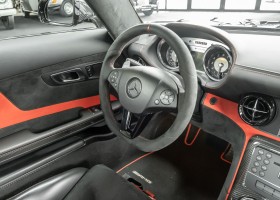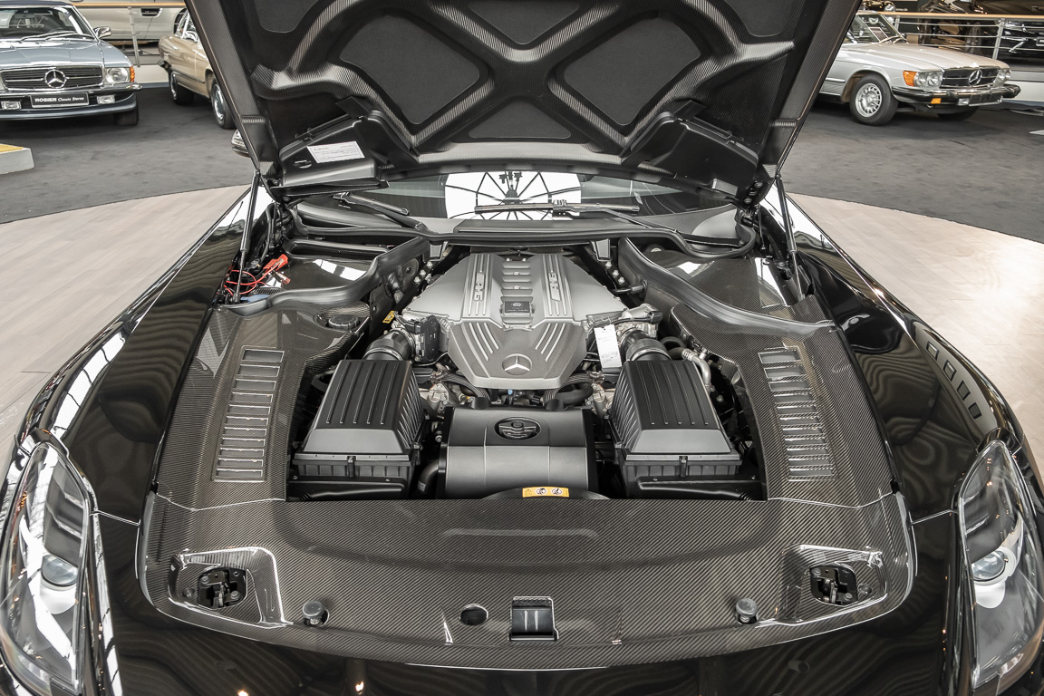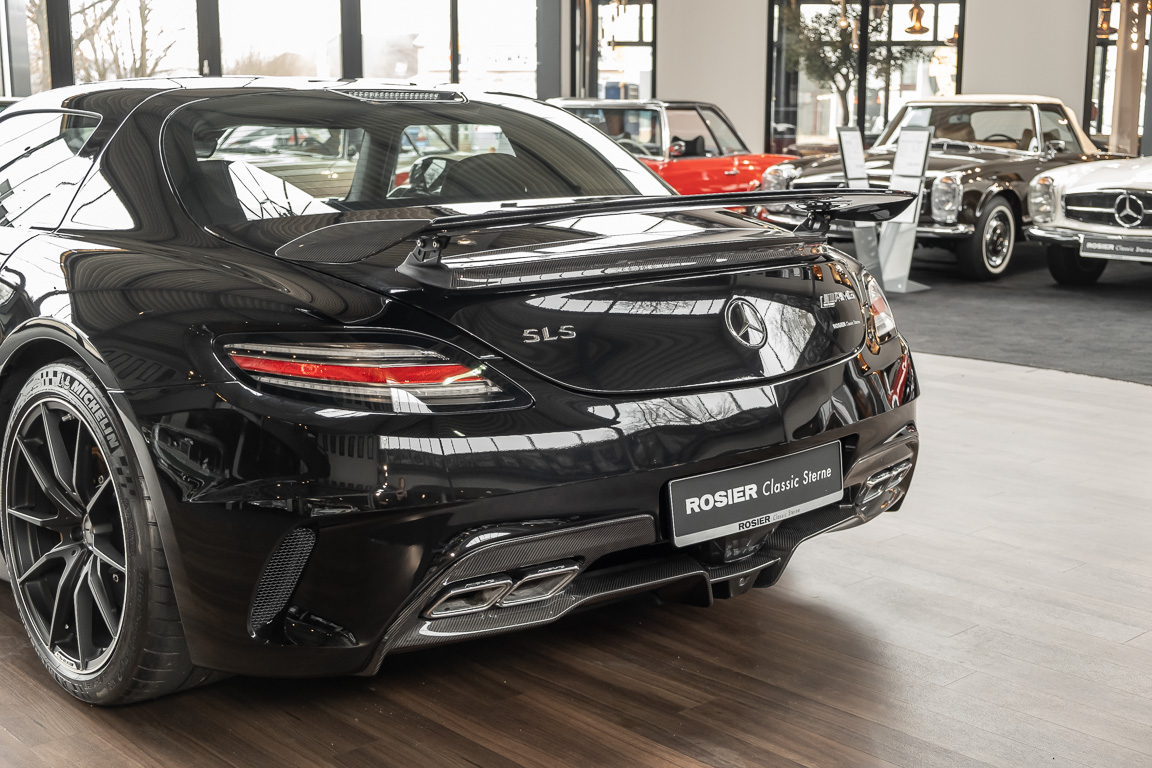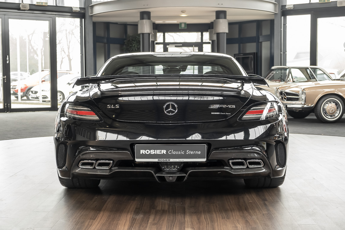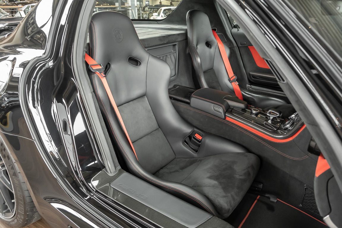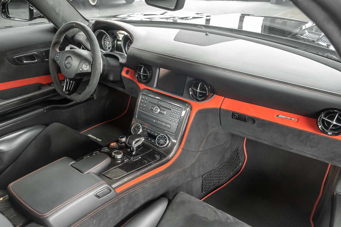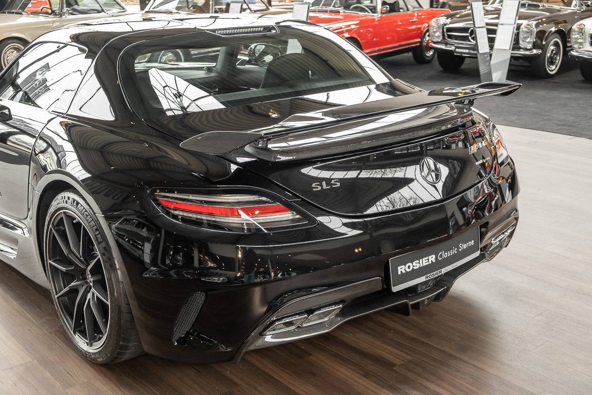 Wir freuen uns, Ihnen die nächste Flügeltür-Ikone nach dem legendären 300 SL anbieten zu können. Der Mercedes-Benz SLS AMG Black Series wurde in Kleinserie, in einer streng limitierten Auflage von 350 Fahrzeugen, aufgelegt und ist für Sammler weltweit ein hochinteressantes Schmuckstück. Mit 631 PS stellt der 6,3l-V8-Saugmotor nicht nur 60 PS mehr Leistung als der Serien SLS bereit, dank intelligentem Leichtbau sorgt der Black Series für Fahrperformance wie ein Rennfahrzeug. Zumindest in der Theorie. In der Praxis wurden die Black Series Modelle trotz Rennsportgenen durch rasant steigende Preise zumeist gelagert und kaum bewegt.
