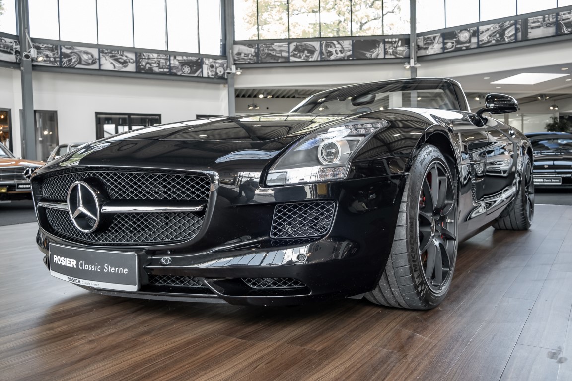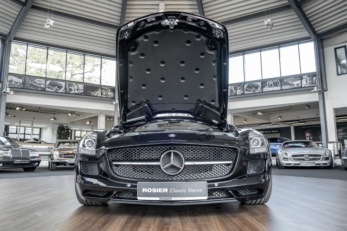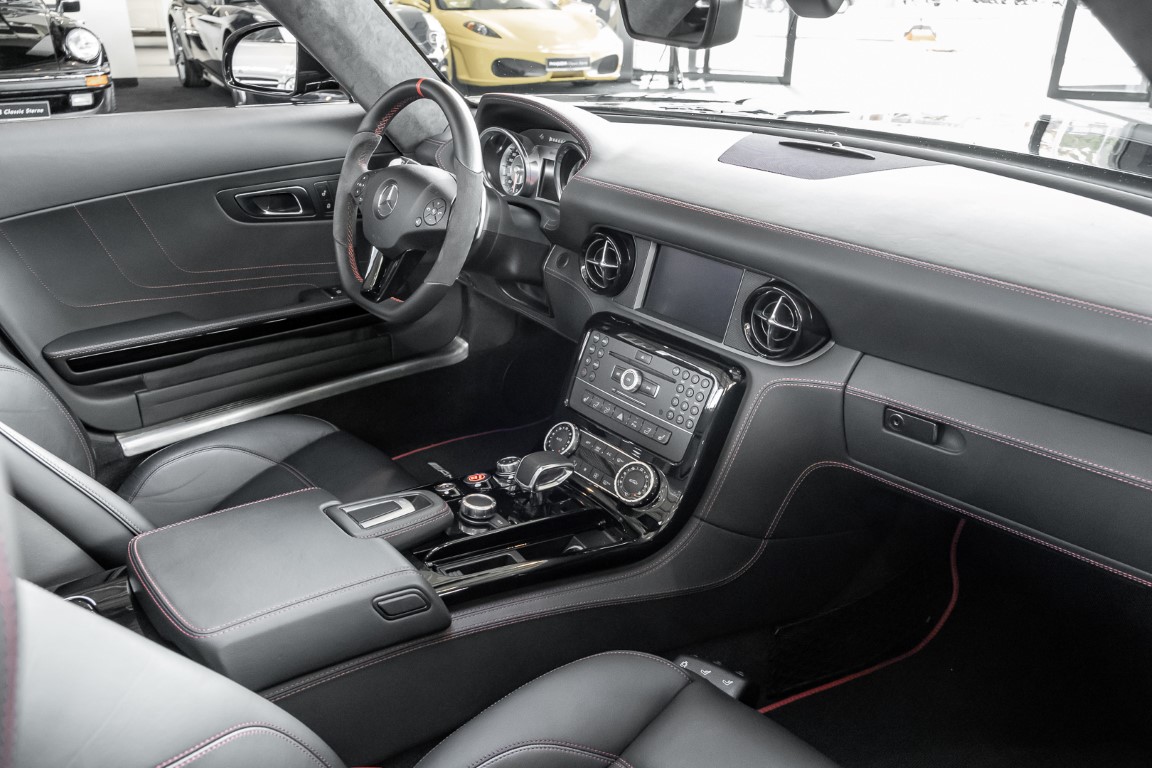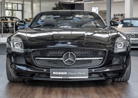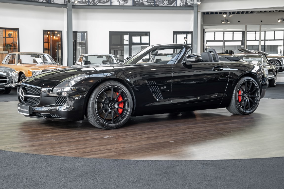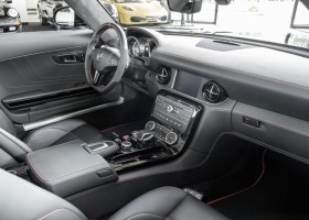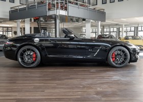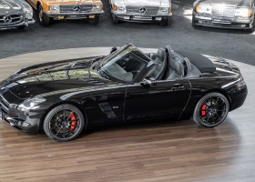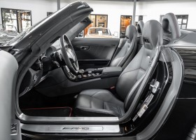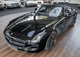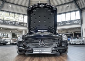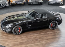 Im Herbst 2011 wurde die Roadster Variante des SLS auf der IAA in Frankfurt vorgestellt. Der Name SLS bedeutet: „Sport Leicht Super“. Der SLS ist das erste von AMG eigenständig entwickelte Fahrzeug. Ein einzelner Spezialist ist damit beschäftigt den Motor von Hand zusammenzusetzen. Auf einer eigens angebrachten Plakette „bürgt“ seine eingravierte Unterschrift für die von Ihm geleistete Qualitätsarbeit. Gebaut wird das Fahrzeug im Werk Sindelfingen. DER SLS AMG GT ist eine überarbeitete Variante des SLS AMG, dessen Motorleistung auf 435 Kw/591PS gesteigert wurde. Das AMG Ride Control Performance Fahrwerk und das Speedshift Automatikgetriebe wurden verbessert. Optische Änderungen durch abgedunkelte Scheinwerfer und Rückleuchten und ein GT-Emblem am Heck sollten den SLS AMG GT nach außen kenntlich machen. Das Interieur wurde mit Alcantara-Streifen auf den Sitzen, roten Nähten und schwarzen Hochglanz-Zierteilen verfeinert. Die Bauzeit war von 10.2012 bis 06.2014. Schon kurz nach Produktionsende der GT-Version stieg die Nachfrage in Sammlerkreisen enorm an. Die Listenpreise wurden schnell überboten. Heute ist ein GT mit wenigen Kilometern so gut wie nicht zu bekommen. Wir freuen uns sehr, Ihnen eines dieser seltenen Fahrzeuge hier anbieten zu können. Nach den bisherigen Erfahrungen ist neben bestem Werterhalt auch ein interessanter Wertzuwachs zu erwarten.