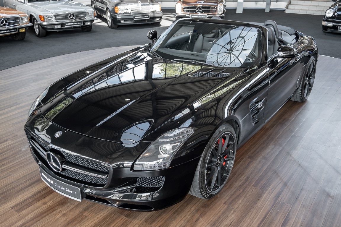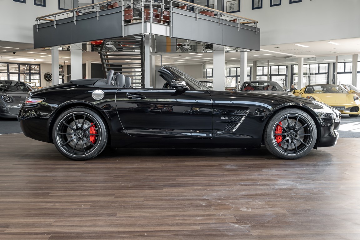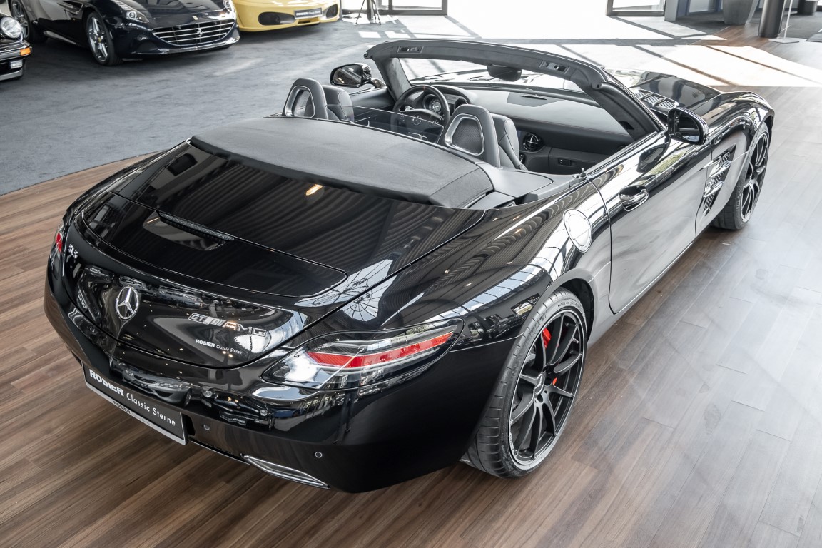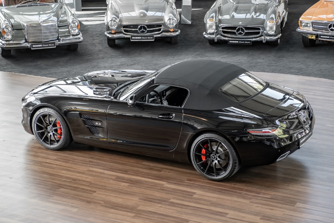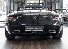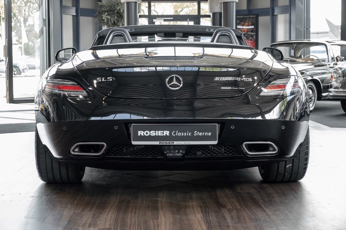Im Herbst 2011 wurde die Roadster Variante des SLS auf der IAA in Frankfurt vorgestellt. Der Name SLS bedeutet: „Sport Leicht Super“. Der SLS ist das erste von AMG eigenständig entwickelte Fahrzeug. Ein einzelner Spezialist ist damit beschäftigt den Motor von Hand zusammenzusetzen. Auf einer eigens angebrachten Plakette „bürgt“ seine eingravierte Unterschrift für die von Ihm geleistete Qualitätsarbeit. Gebaut wird das Fahrzeug im Werk Sindelfingen. DER SLS AMG GT ist eine überarbeitete Variante des SLS AMG, dessen Motorleistung auf 435 Kw/591PS gesteigert wurde. Das AMG Ride Control Performance Fahrwerk und das Speedshift Automatikgetriebe wurden verbessert. Optische Änderungen durch abgedunkelte Scheinwerfer und Rückleuchten und ein GT-Emblem am Heck sollten den SLS AMG GT nach außen kenntlich machen. Das Interieur wurde mit Alcantara-Streifen auf den Sitzen, roten Nähten und schwarzen Hochglanz-Zierteilen verfeinert. Die Bauzeit war von 10.2012 bis 06.2014. Schon kurz nach Produktionsende der GT-Version stieg die Nachfrage in Sammlerkreisen enorm an. Die Listenpreise wurden schnell überboten. Heute ist ein GT mit wenigen Kilometern so gut wie nicht zu bekommen. Wir freuen uns sehr, Ihnen eines dieser seltenen Fahrzeuge hier anbieten zu können. Nach den bisherigen Erfahrungen ist neben bestem Werterhalt auch ein interessanter Wertzuwachs zu erwarten.