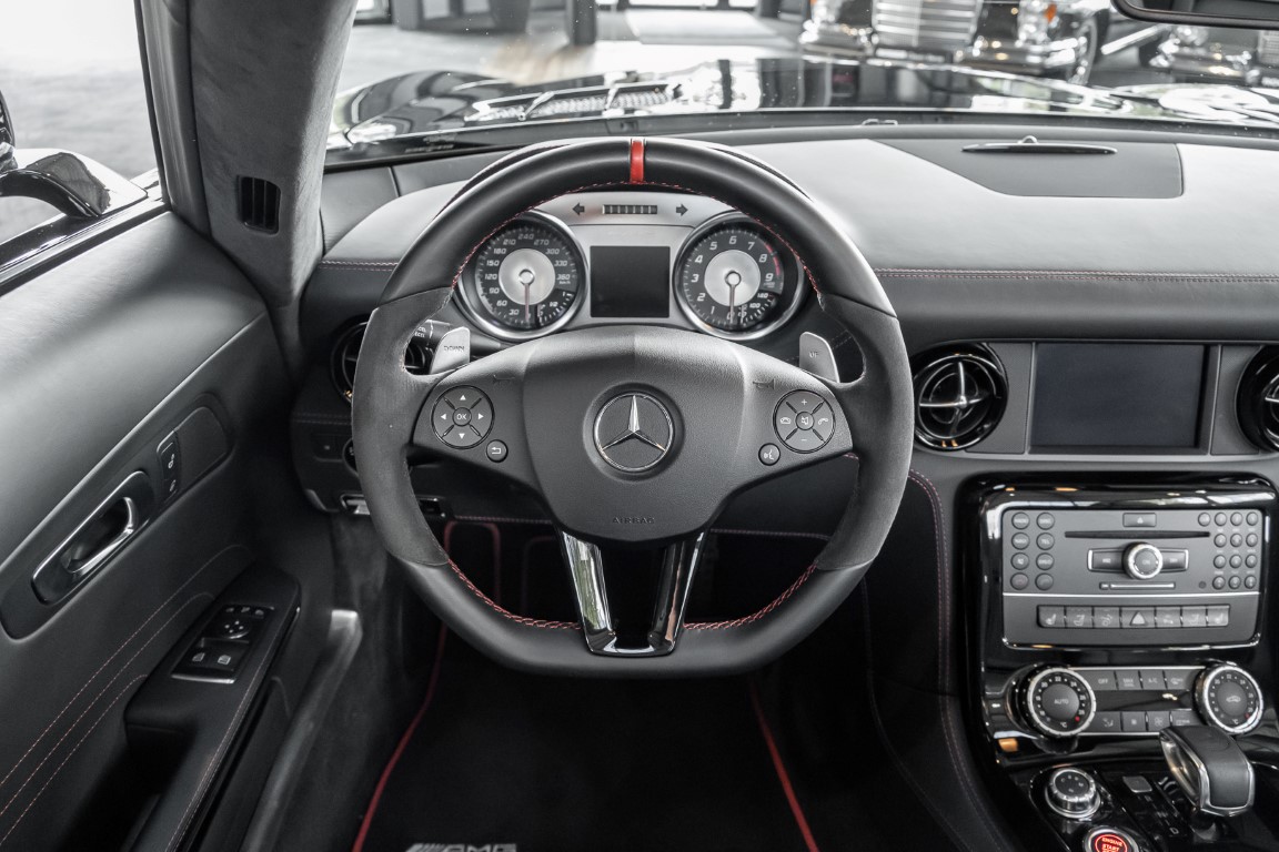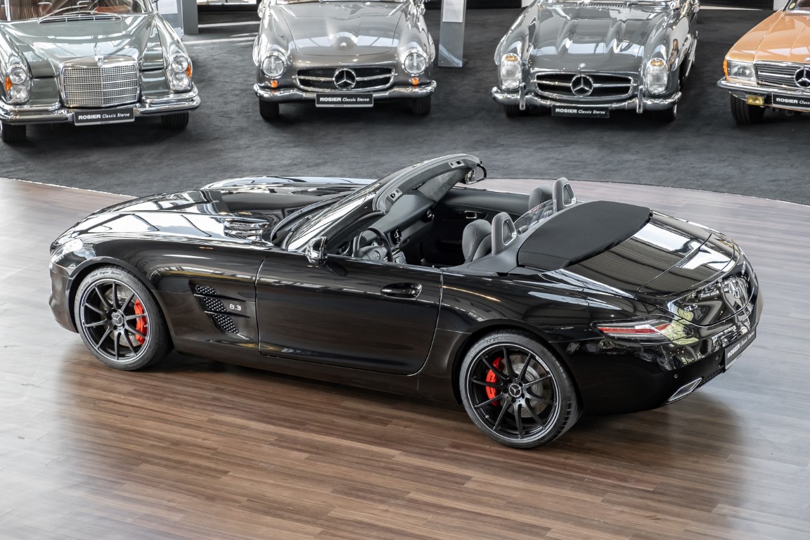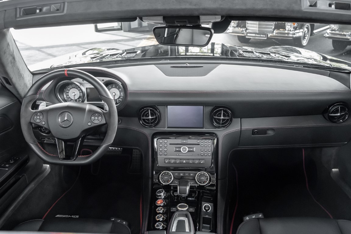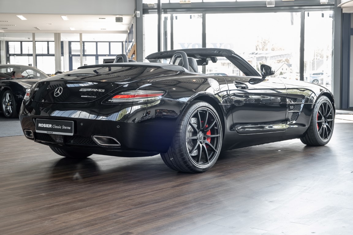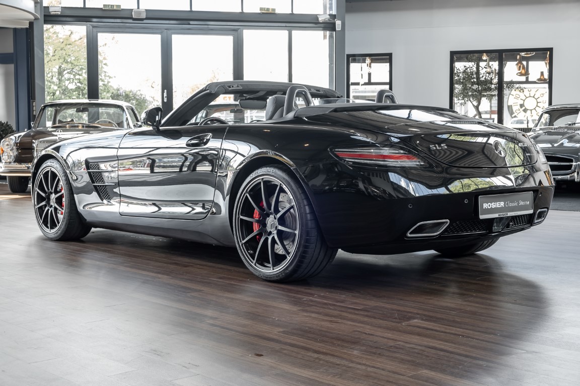 Im Herbst 2011 wurde die Roadster Variante des SLS auf der IAA in Frankfurt vorgestellt. Der Name SLS bedeutet: „Sport Leicht Super“. Der SLS ist das erste von AMG eigenständig entwickelte Fahrzeug. Ein einzelner Spezialist ist damit beschäftigt den Motor von Hand zusammenzusetzen. Auf einer eigens angebrachten Plakette „bürgt“ seine eingravierte Unterschrift für die von Ihm geleistete Qualitätsarbeit. Gebaut wird das Fahrzeug im Werk Sindelfingen. DER SLS AMG GT ist eine überarbeitete Variante des SLS AMG, dessen Motorleistung auf 435 Kw/591PS gesteigert wurde. Das AMG Ride Control Performance Fahrwerk und das Speedshift Automatikgetriebe wurden verbessert. Optische Änderungen durch abgedunkelte Scheinwerfer und Rückleuchten und ein GT-Emblem am Heck sollten den SLS AMG GT nach außen kenntlich machen. Das Interieur wurde mit Alcantara-Streifen auf den Sitzen, roten Nähten und schwarzen Hochglanz-Zierteilen verfeinert. Die Bauzeit war von 10.2012 bis 06.2014. Schon kurz nach Produktionsende der GT-Version stieg die Nachfrage in Sammlerkreisen enorm an. Die Listenpreise wurden schnell überboten. Heute ist ein GT mit wenigen Kilometern so gut wie nicht zu bekommen. Wir freuen uns sehr, Ihnen eines dieser seltenen Fahrzeuge hier anbieten zu können. Nach den bisherigen Erfahrungen ist neben bestem Werterhalt auch ein interessanter Wertzuwachs zu erwarten.