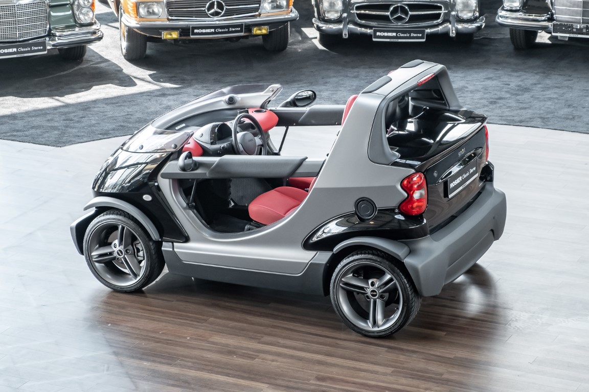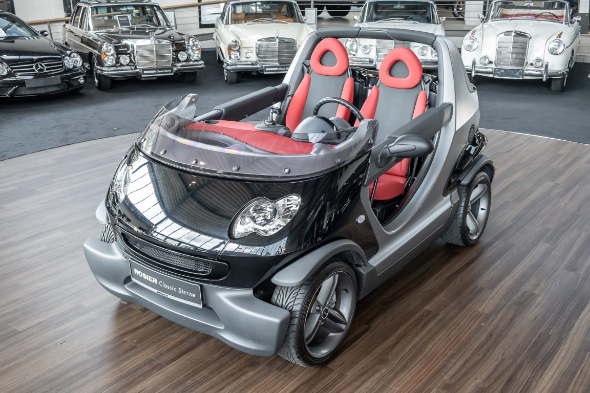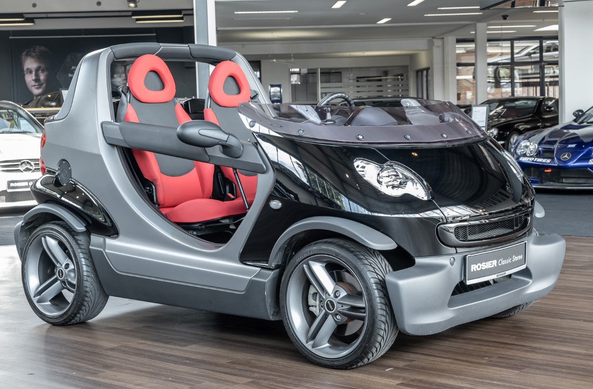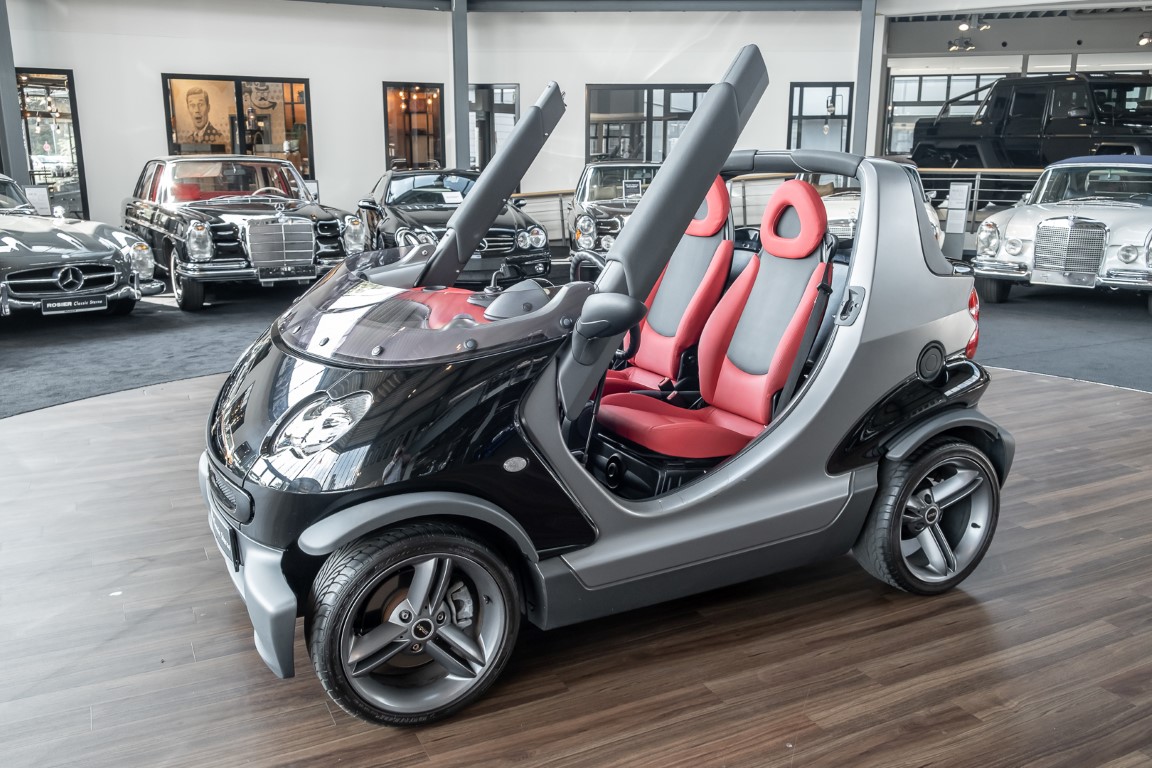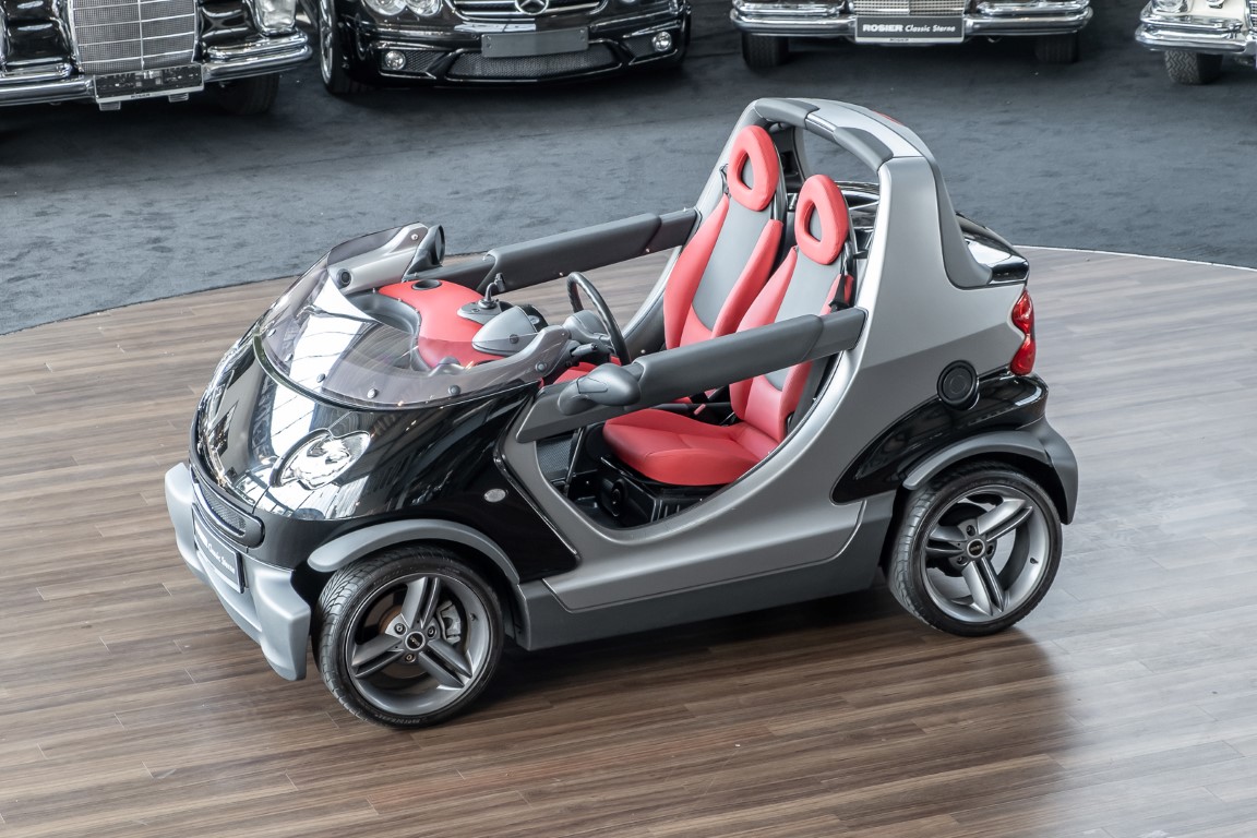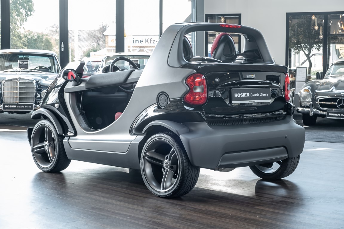 Der Smart Crossblade ist ganz sicher ein Fahrzeug für Individualisiten. Das in Kleinserie gebaute und auf 2000 Exemplare begrenzte Spaßmobil verspricht ein Fahrgefühl der ganz besonderen Art. Durch die offene Bauweise fühlt sich der Fahrer eher wie auf dem Motorrad, als in einem Auto. Die 70 Pferdestärken haben kaum Last mit dem 730 kg leichten Smart, der erst bei 135 km/h elektronisch begrenzt wird. Durch einen cleveren Materialmix kann auch regnerisches Wetter dem Fahrzeug nichts anhaben. Instrumententafel und Sitze sind mit einem wasserfesten feuerroten Kunststoff bezogen, der Boden des Innenraums ist wie eine Wanne gefertigt deren vier Ablaufkanäle bei starkem Regen das Wasser nach draußen leiten.