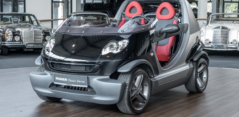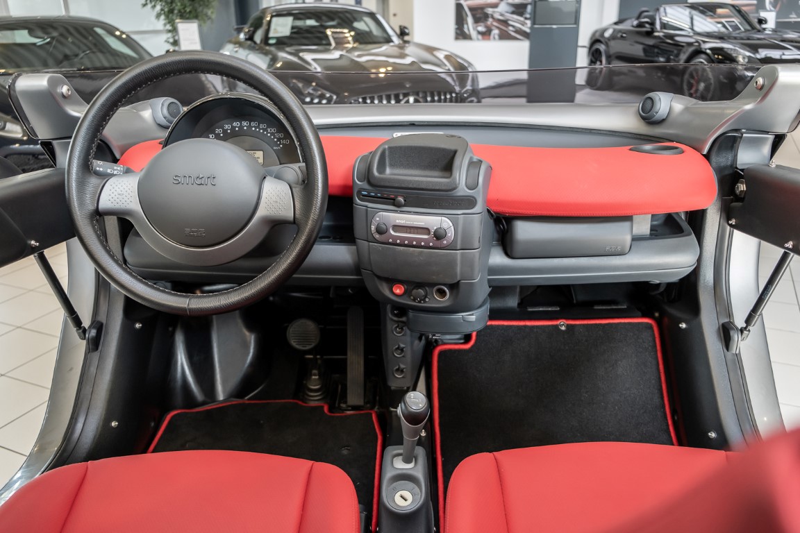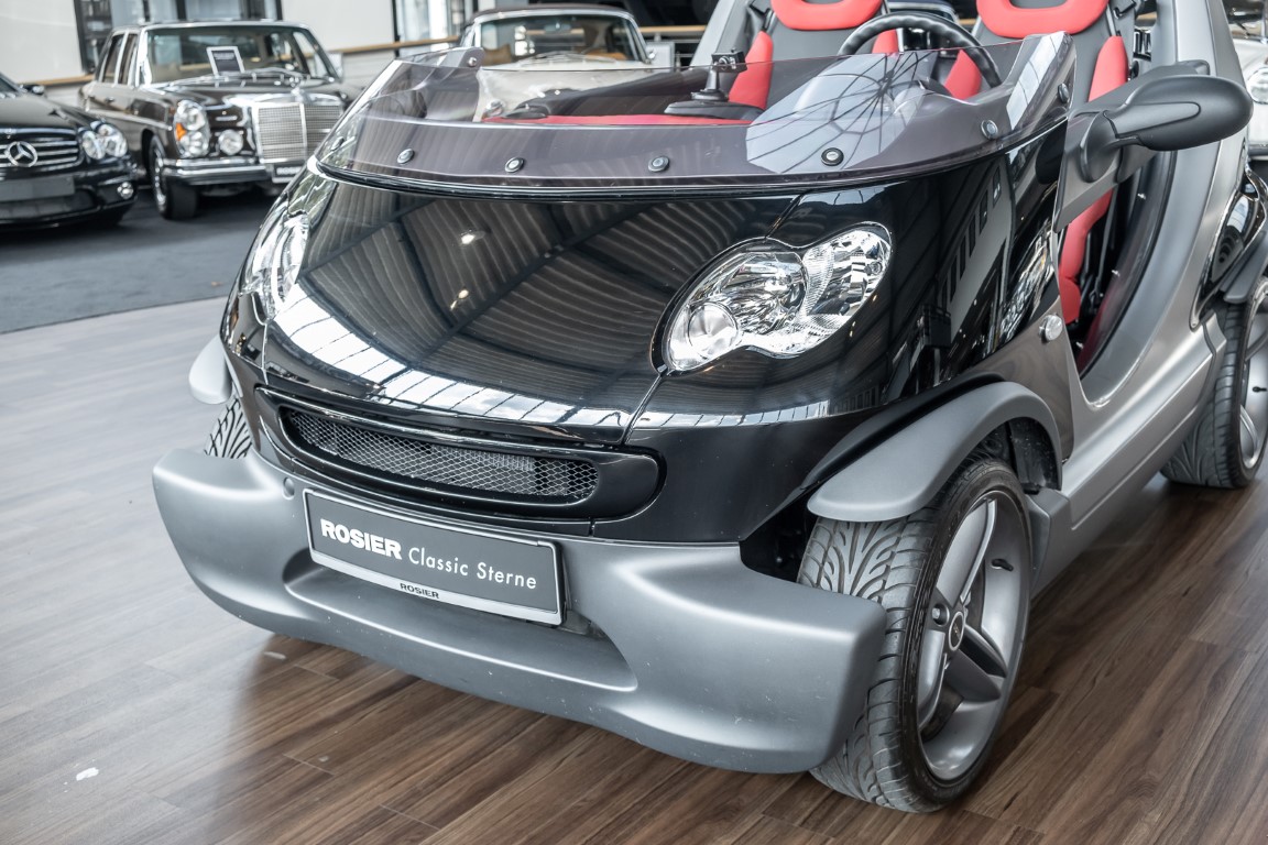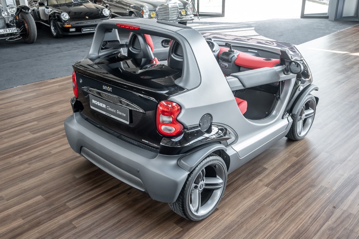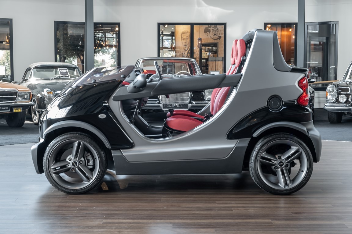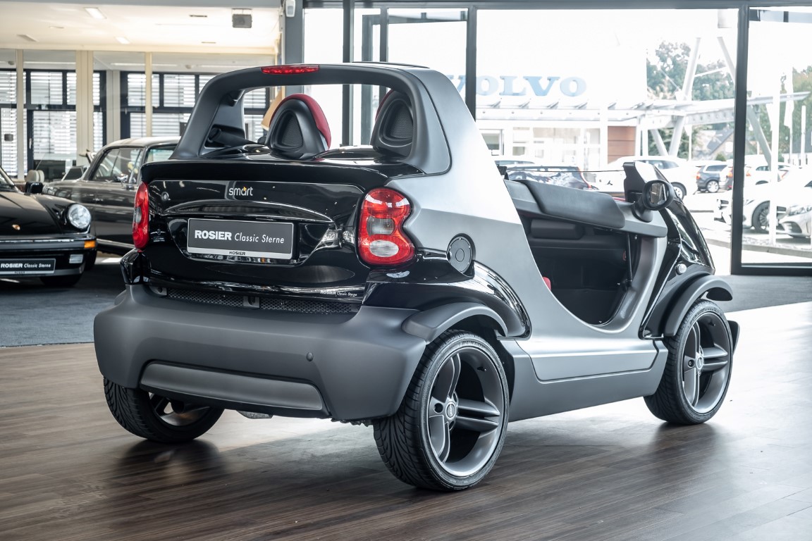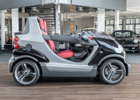 Der Smart Crossblade ist ganz sicher ein Fahrzeug für Individualisiten. Das in Kleinserie gebaute und auf 2000 Exemplare begrenzte Spaßmobil verspricht ein Fahrgefühl der ganz besonderen Art. Durch die offene Bauweise fühlt sich der Fahrer eher wie auf dem Motorrad, als in einem Auto. Die 70 Pferdestärken haben kaum Last mit dem 730 kg leichten Smart, der erst bei 135 km/h elektronisch begrenzt wird. Durch einen cleveren Materialmix kann auch regnerisches Wetter dem Fahrzeug nichts anhaben. Instrumententafel und Sitze sind mit einem wasserfesten feuerroten Kunststoff bezogen, der Boden des Innenraums ist wie eine Wanne gefertigt deren vier Ablaufkanäle bei starkem Regen das Wasser nach draußen leiten.