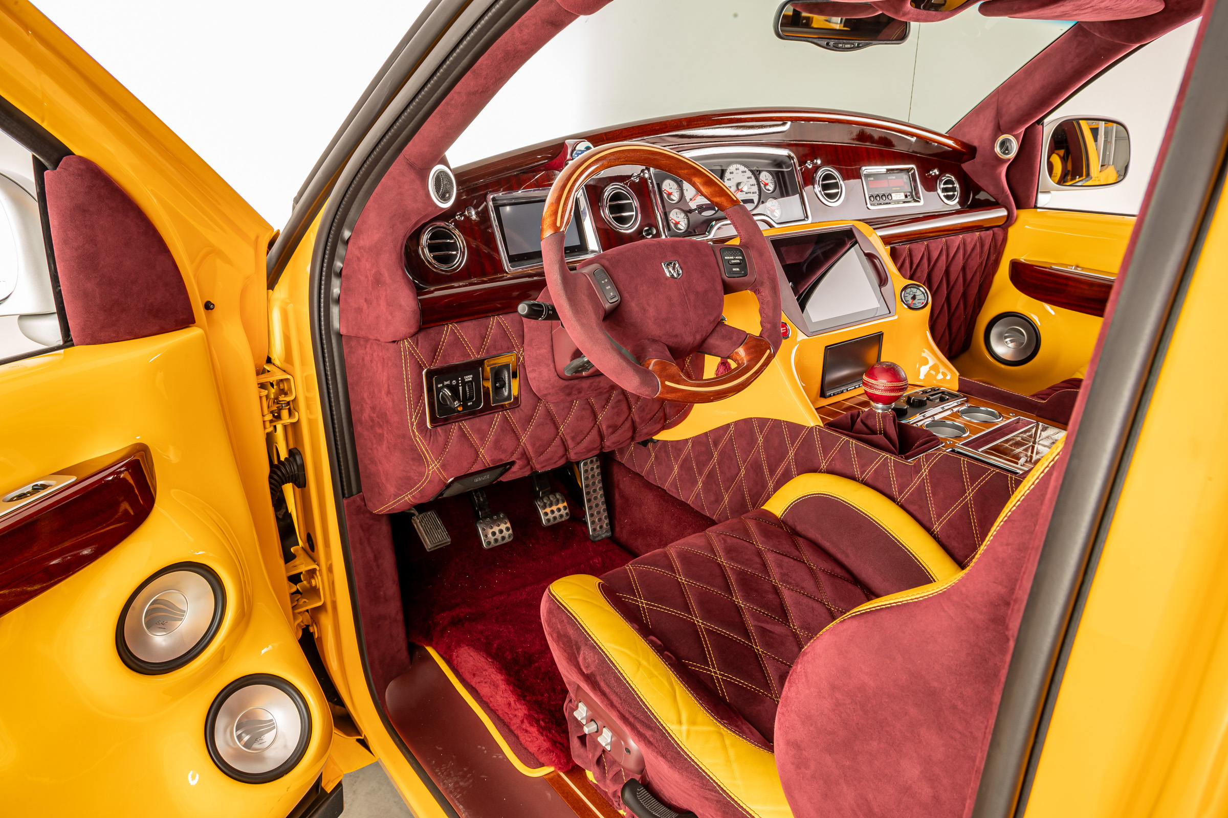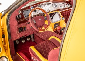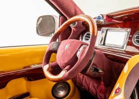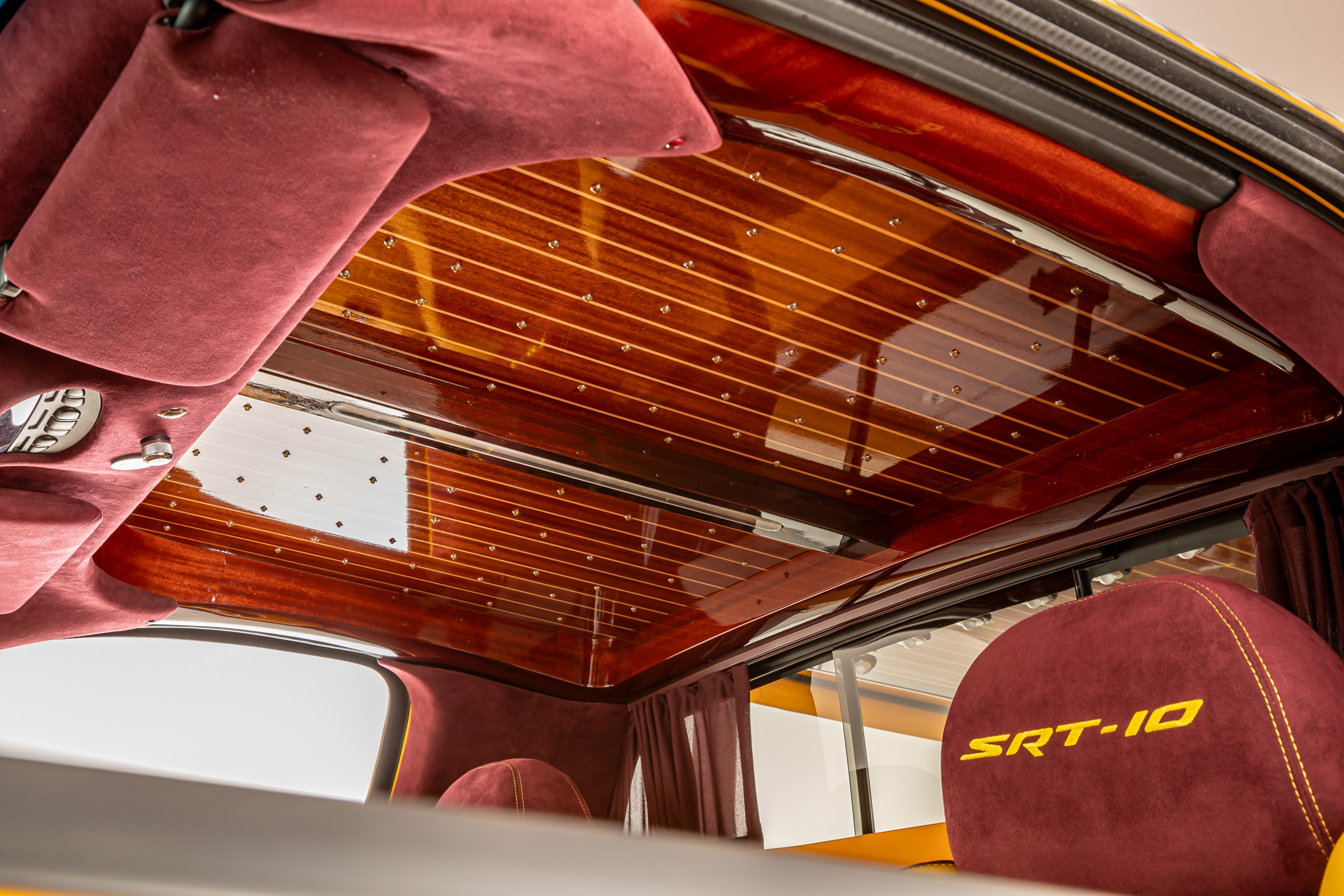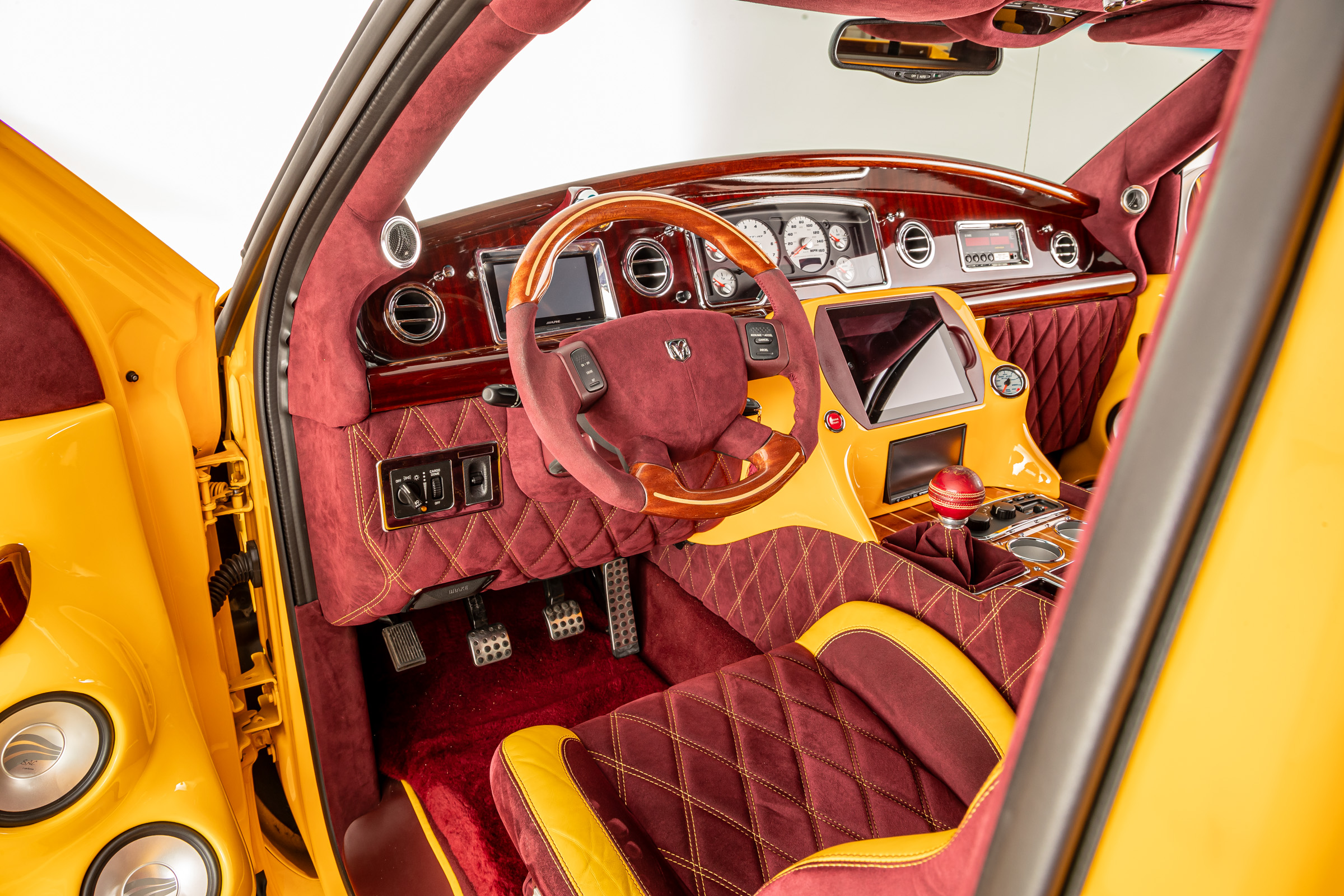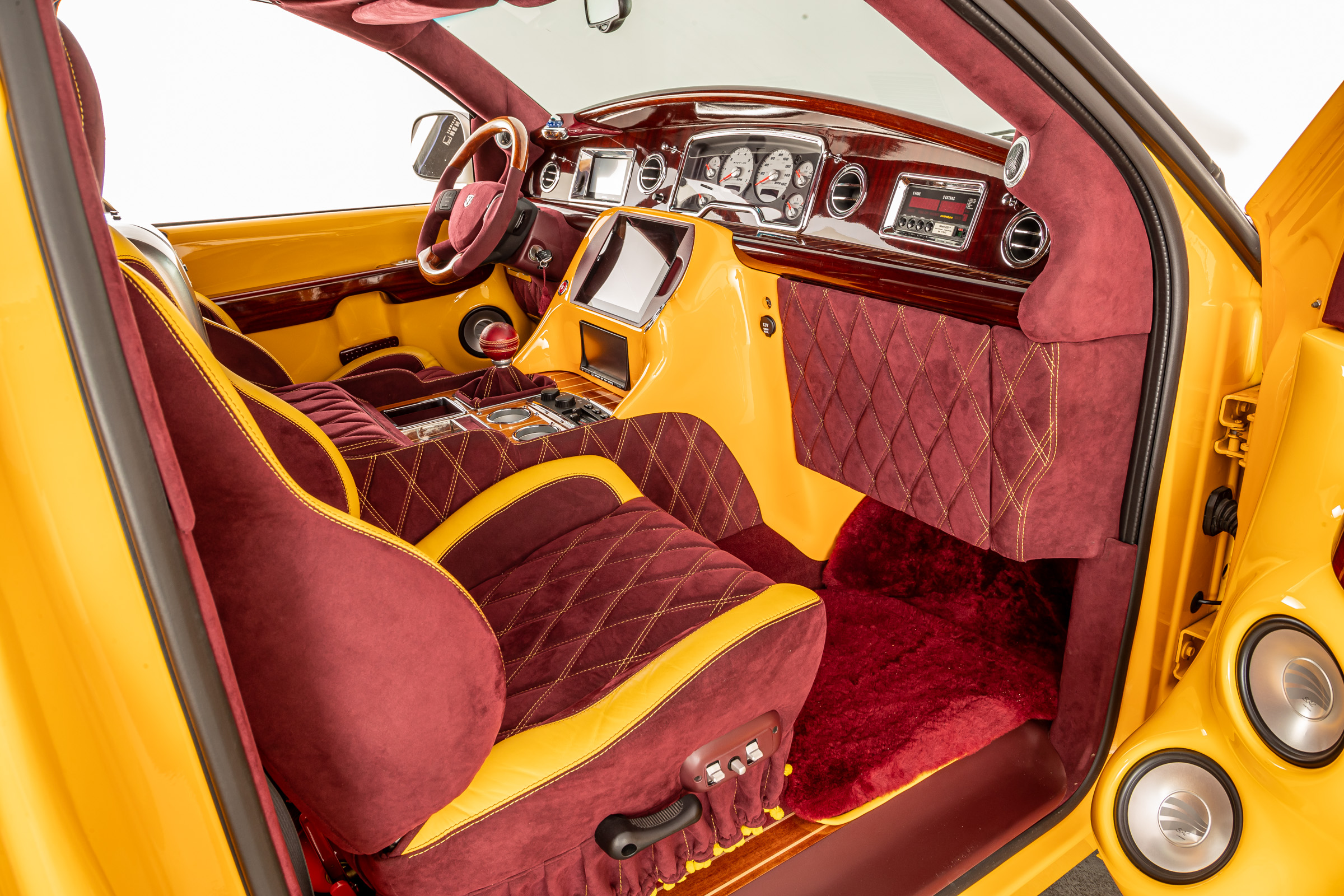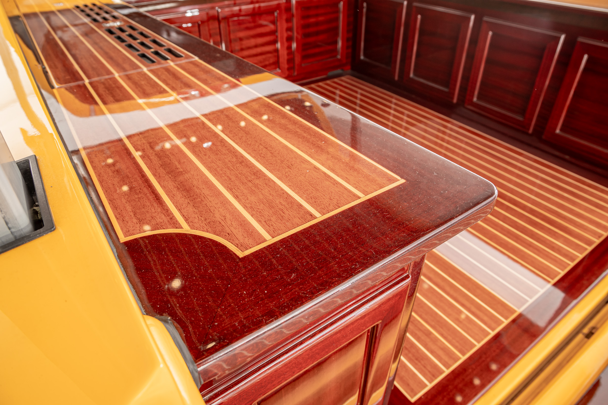 A lover of very special automobile rarities had this vehicle rebuilt regardless of cost and without compromise. Starting with an interior in the finest Alcantara, which was completely redesigned by hand in great detail. The finest fabrics and decorative stitching come together to create a work of art of craftsmanship. Rare precious woods, which were adapted to the interior by a renowned boat builder, present a look that creates an exciting contrast to the vehicle through its special use.