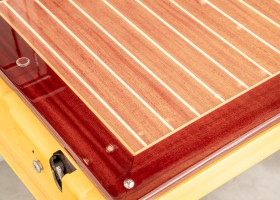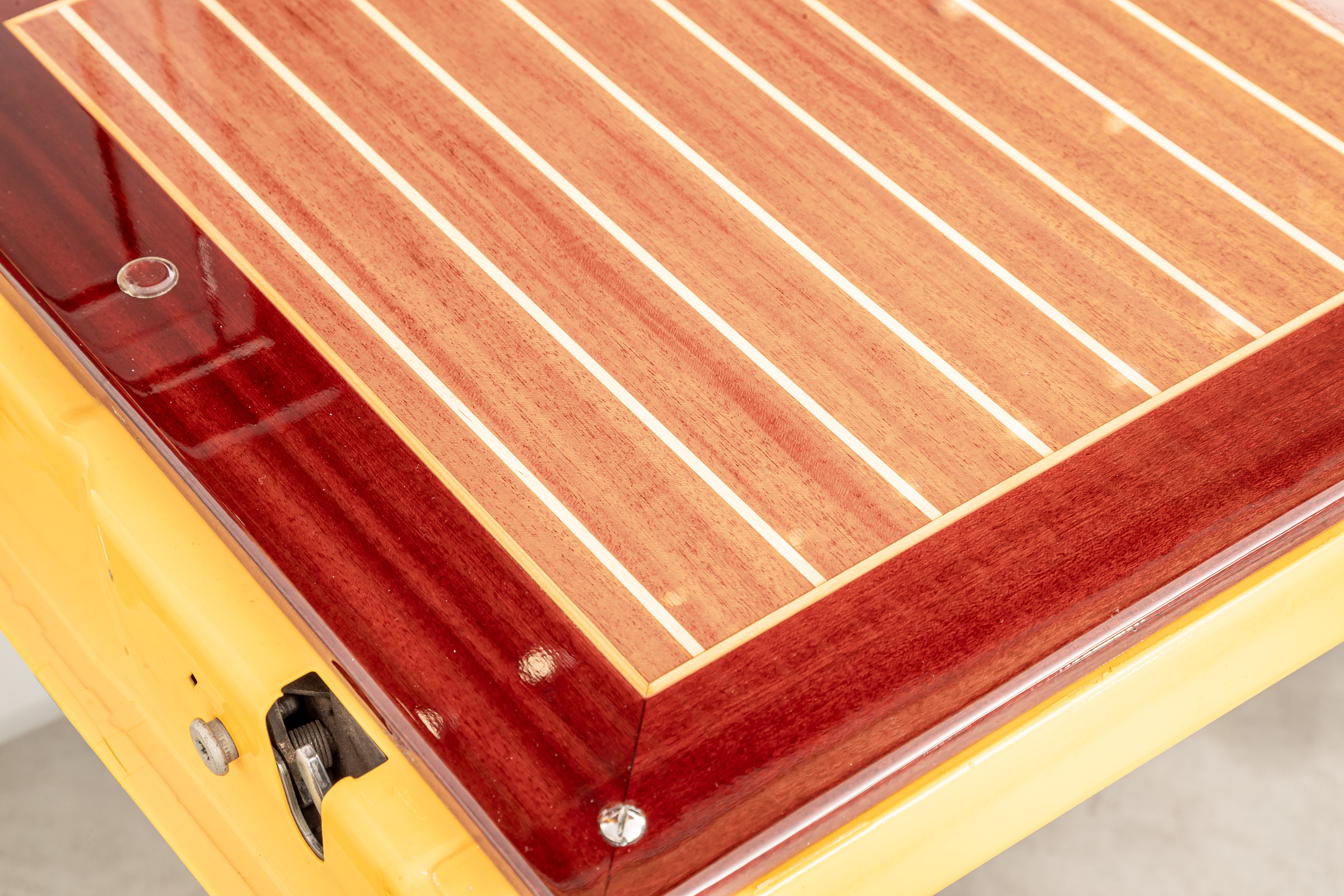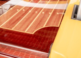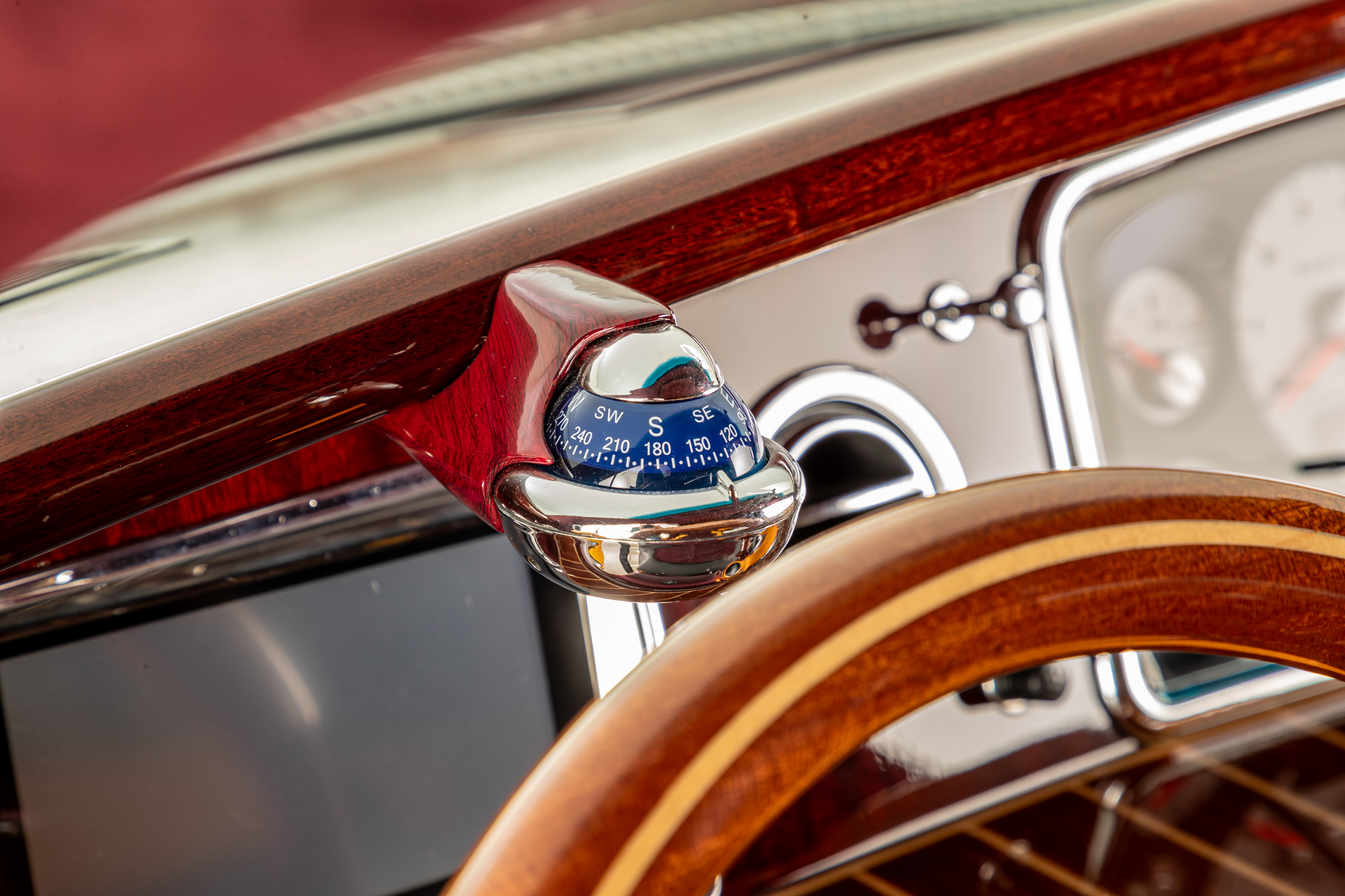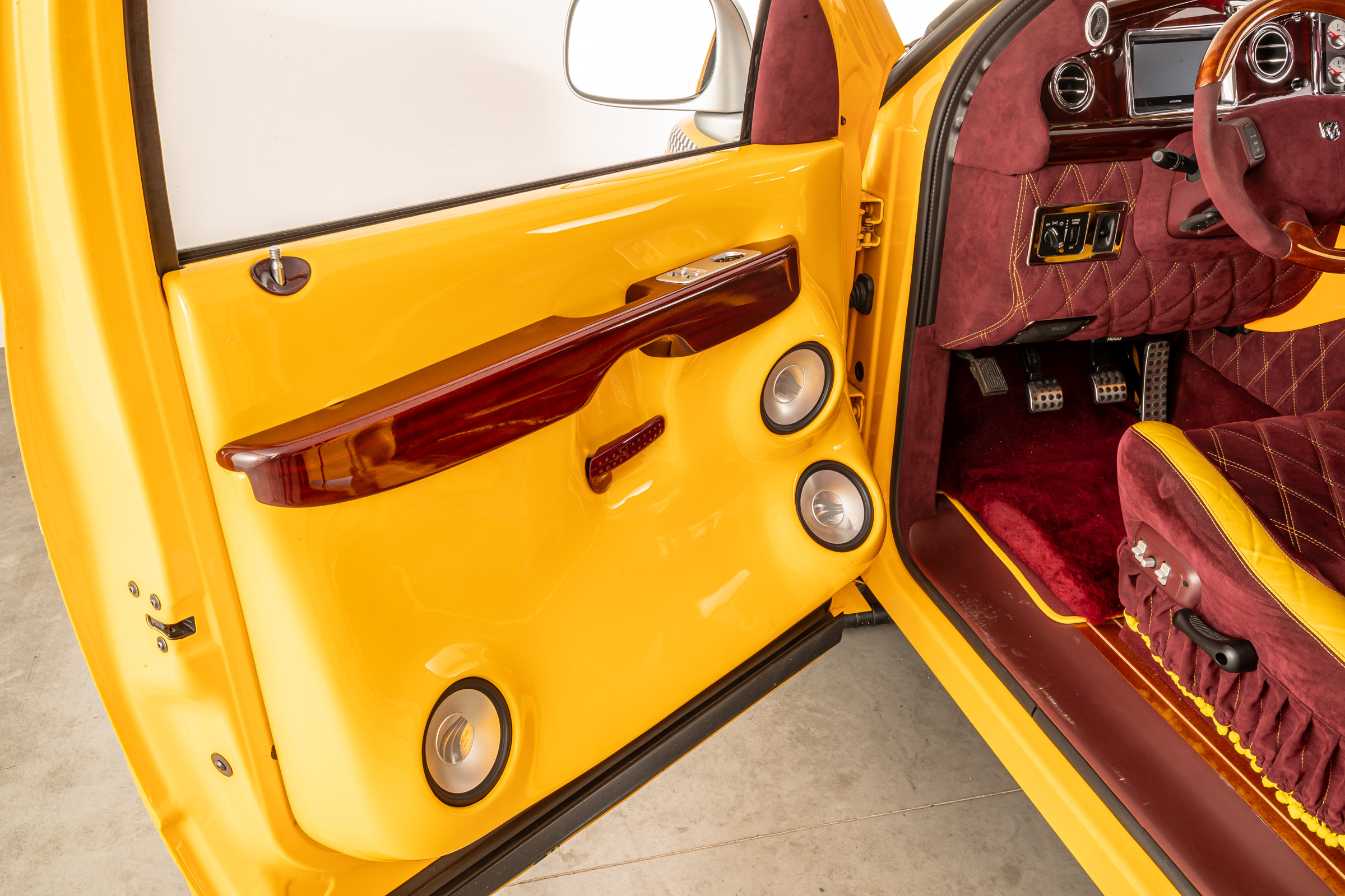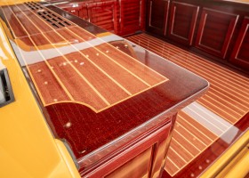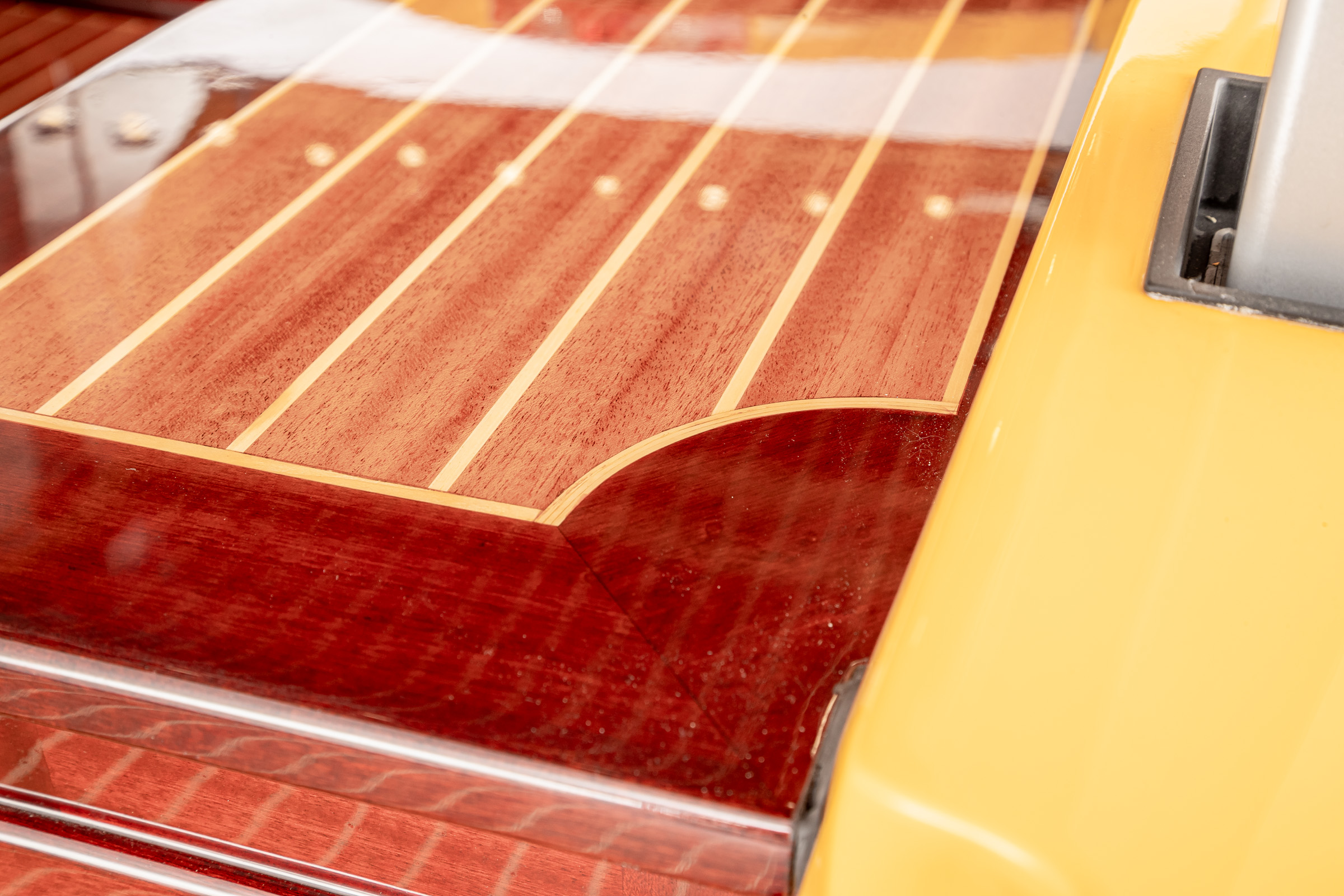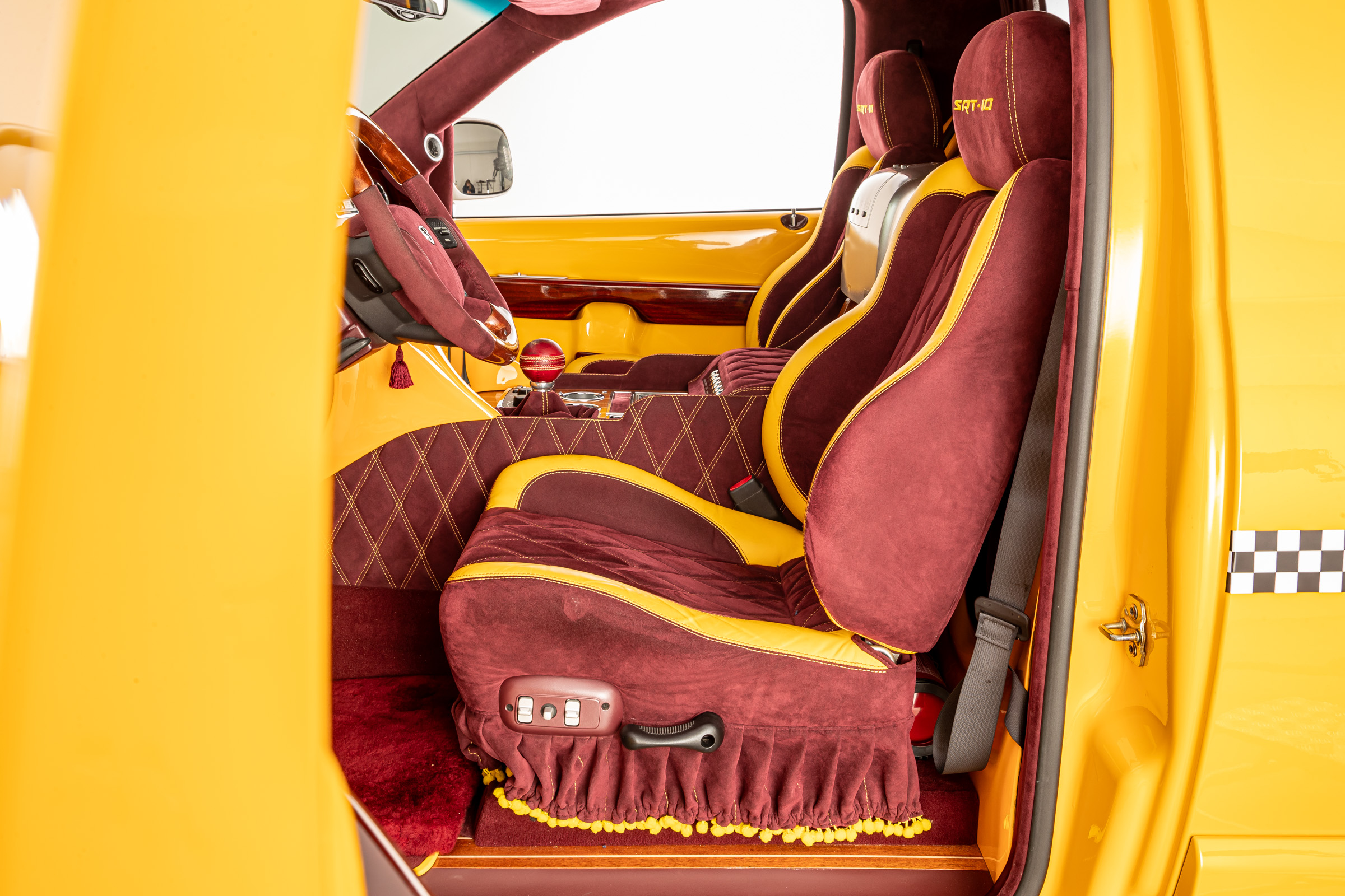A lover of very special automobile rarities had this vehicle rebuilt regardless of cost and without compromise. Starting with an interior in the finest Alcantara, which was completely redesigned by hand in great detail. The finest fabrics and decorative stitching come together to create a work of art of craftsmanship. Rare precious woods, which were adapted to the interior by a renowned boat builder, present a look that creates an exciting contrast to the vehicle through its special use.