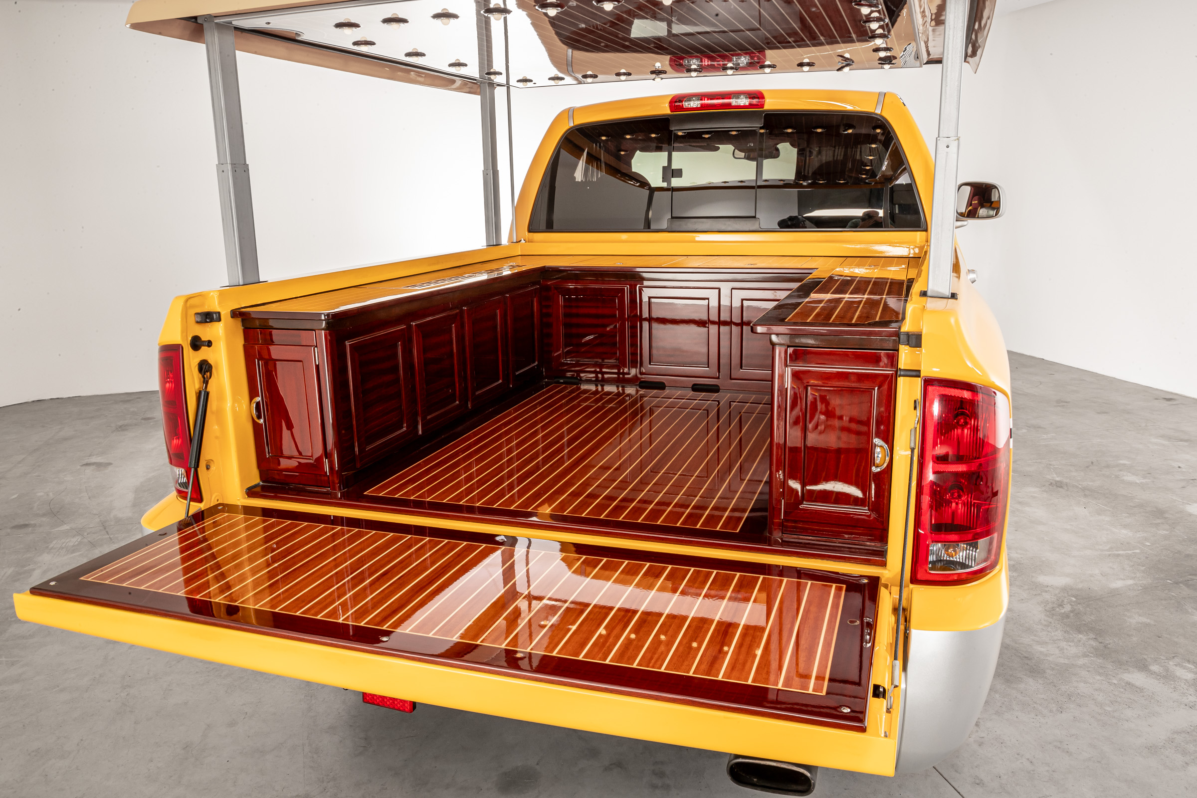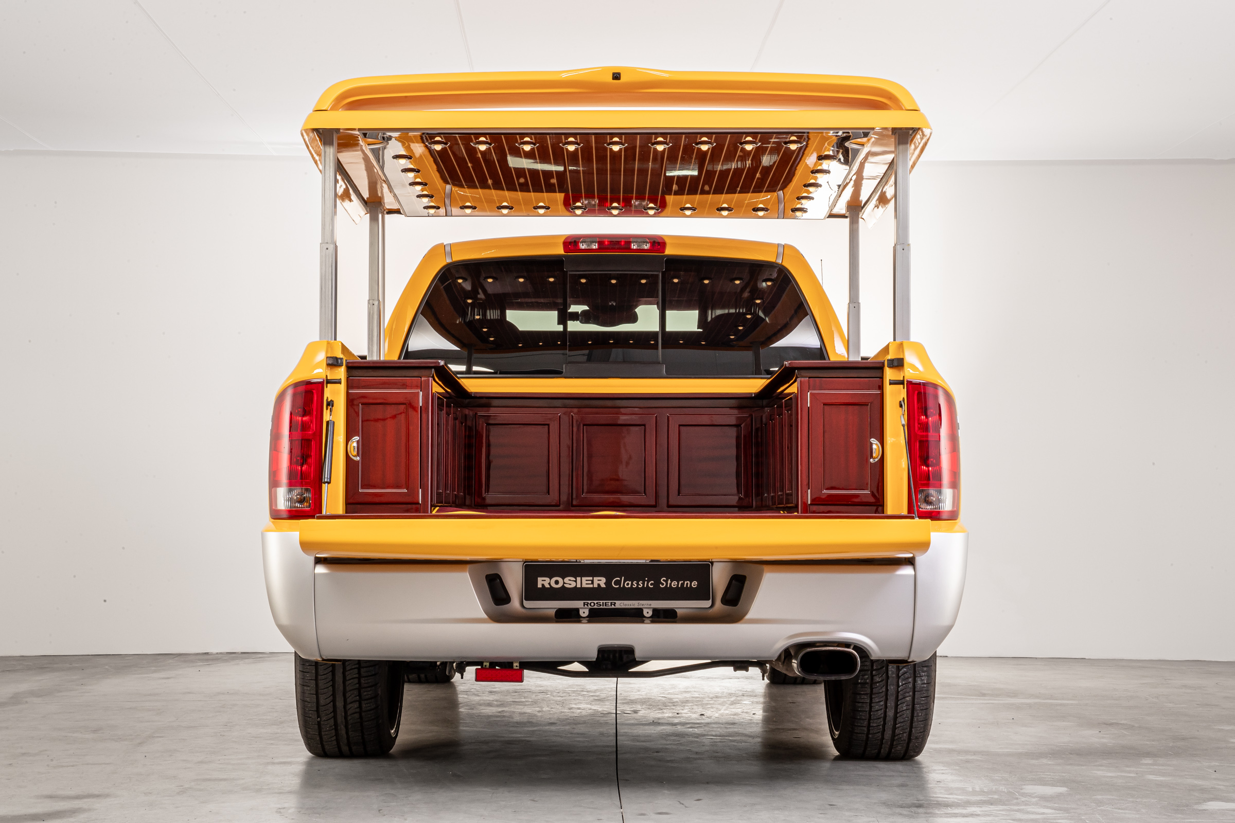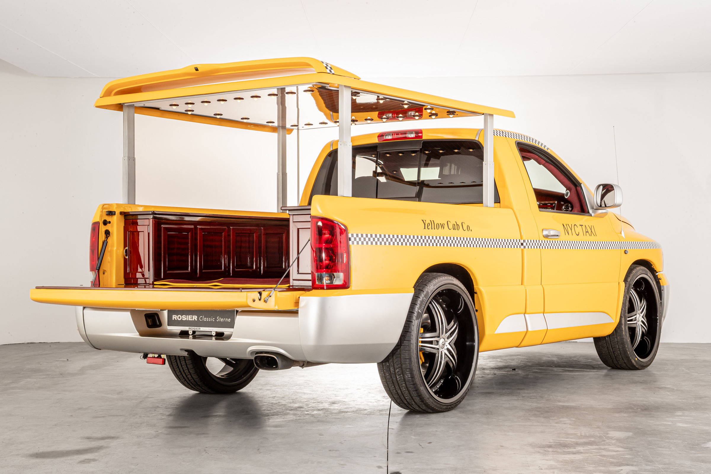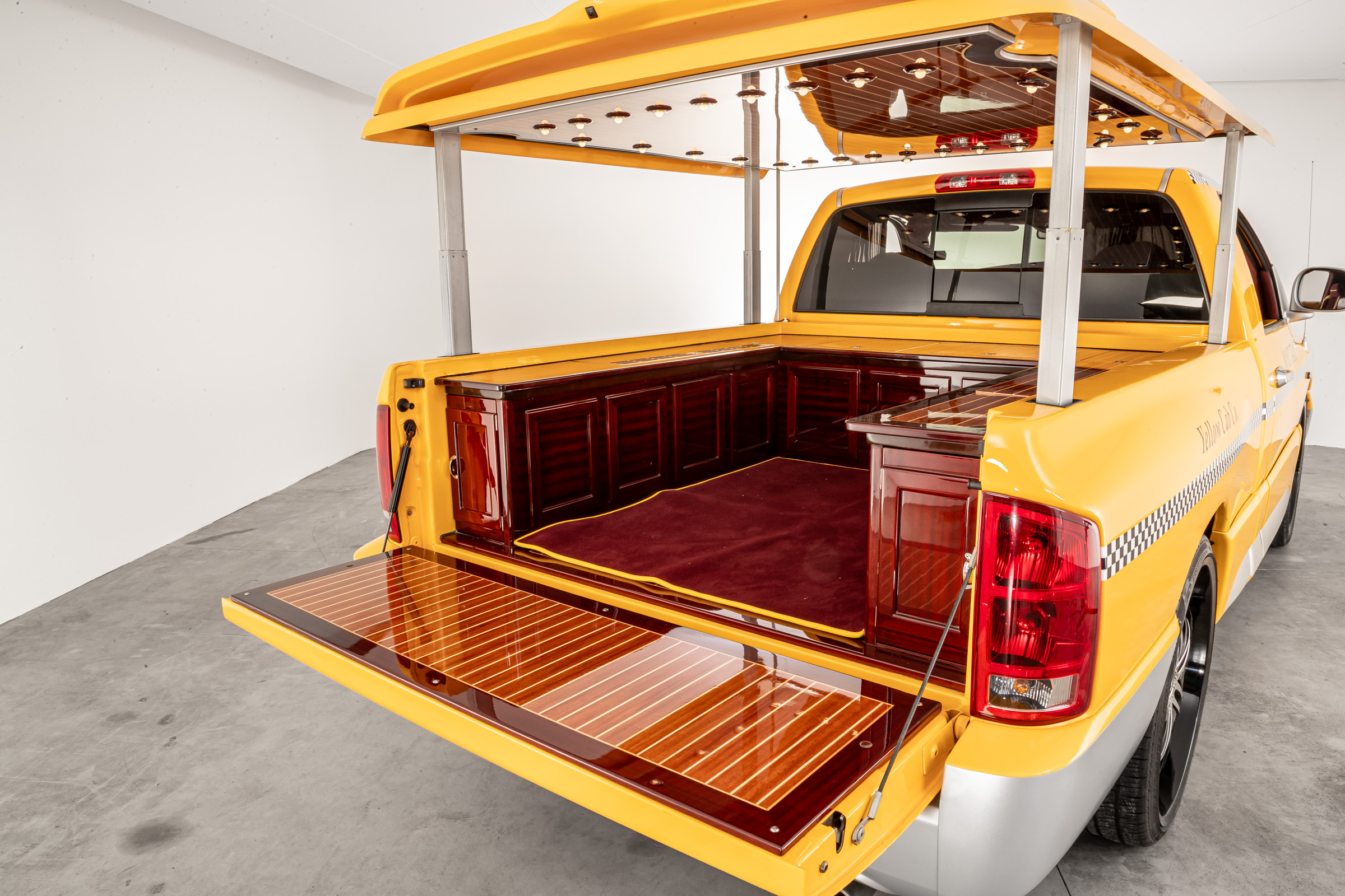 An elaborate two-layer paintwork in the legendary NYC cab design means that this unique RAM attracts attention from afar, which will not soon fade due to its unique appearance. All kinds of technical features, such as a powerful audio system, a starry sky and an ice cube machine with refrigerator, will make the heart of any enthusiast beat faster! The highlight is revealed when the vehicle is stationary, when the electric rear cover provides a view of the completely new loading area, also with a ship's look. An absolute show magnet whose uniqueness is beyond question.