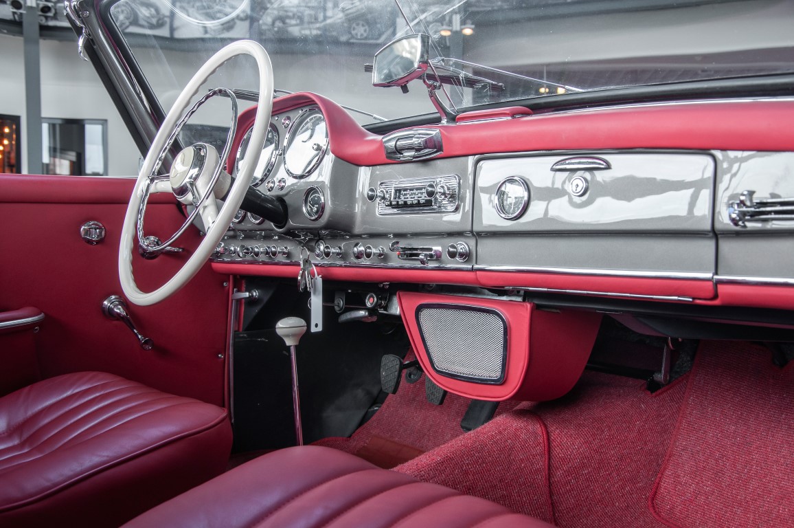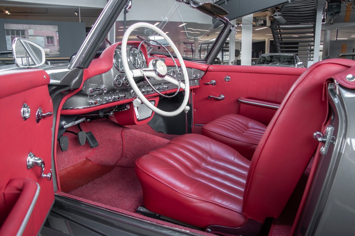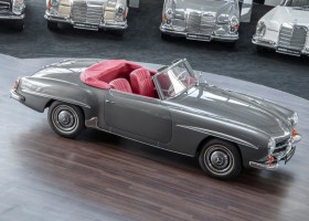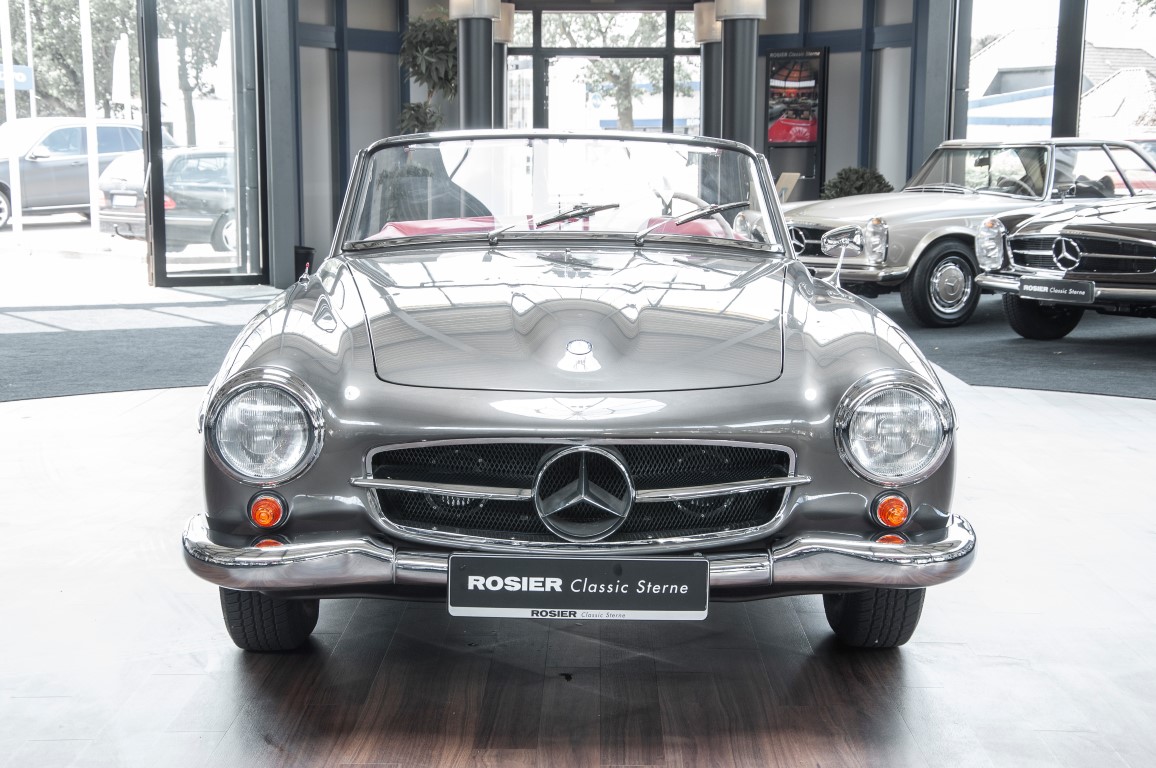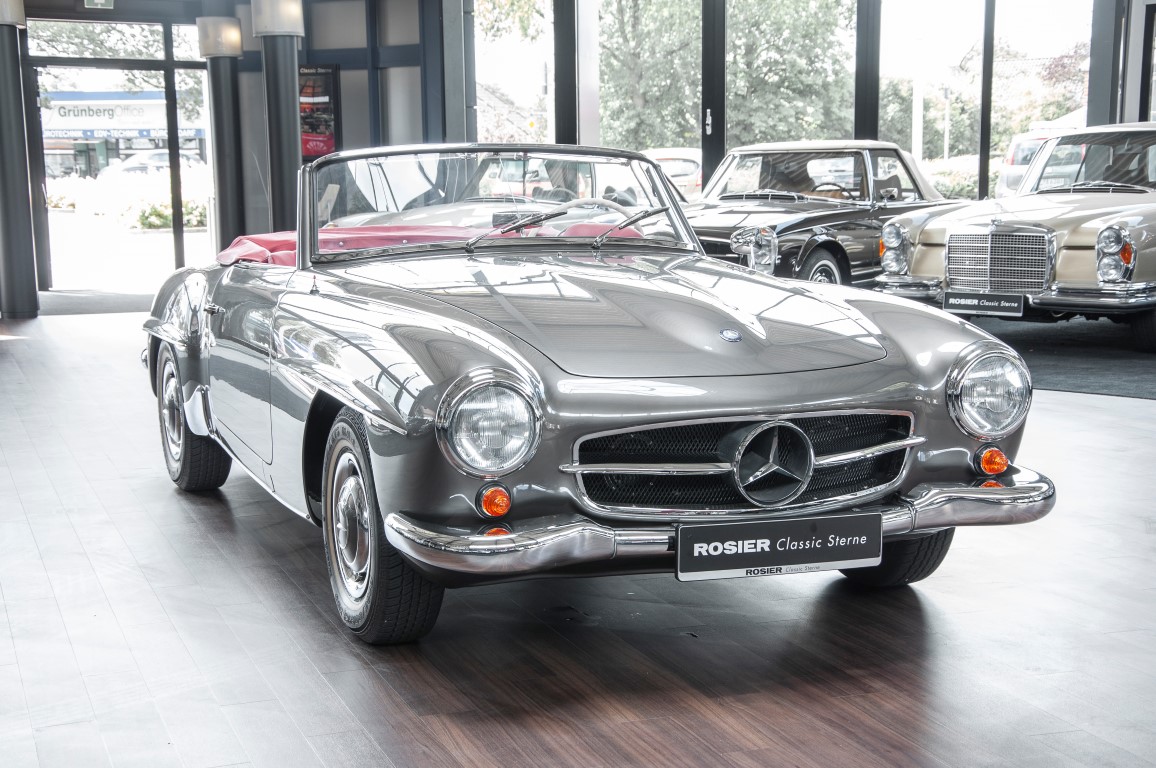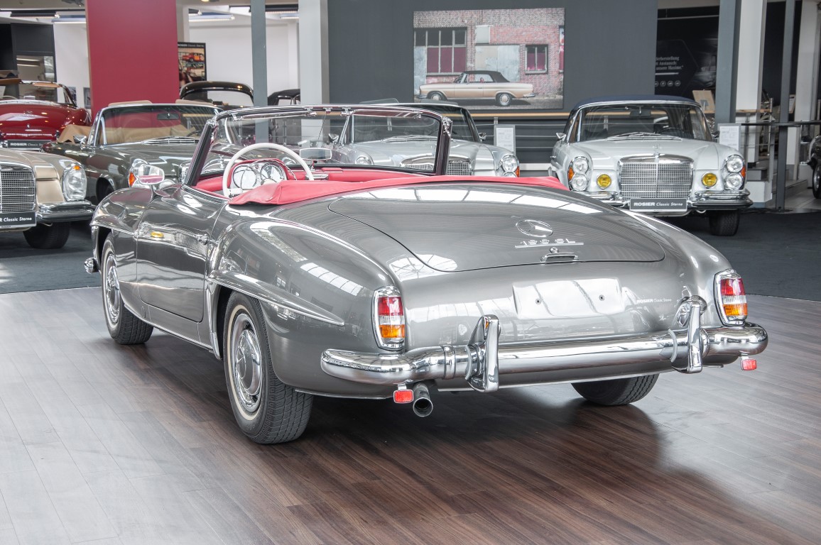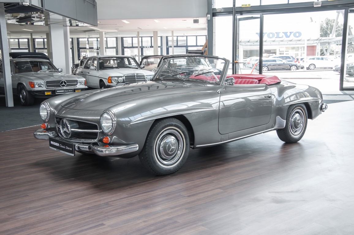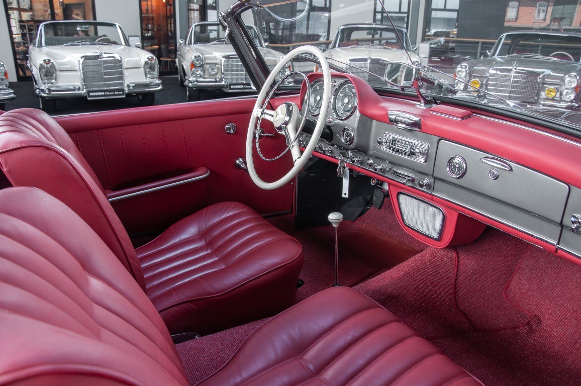 This highly elegant Mercedes-Benz 190SL Roadster was delivered in April 1959 to the general agent of Daimler-Benz, Joseph F. Weckerle, in Morocco, which had meanwhile become independent. He was a big fan of this elegant roadster series and liked to sell it to the wealthy upper class to which he maintained excellent contacts. He himself had already won the "Casablanca Grand Prix" in 1956 in a Mercedes-Benz 190SL touring sports car and had thus made a good name for himself. As a result, the roadster found its way to the USA. There it was very popular and was regarded as one of the most elegant vehicles of the 1950s and early 1960s. In 2011, the 190SL returned to its native country, Germany. A Mercedes specialist near the Swabian capital Stuttgart had acquired it. He subjected the 190SL Roadster to a detailed full restoration. The result of Swabian craftsmanship was fantastic. Everything presented itself as new. The colour scheme in the original Mercedes-Benz colour, DB 172 "anthracite grey metallic" in combination with dark red leather, made the 190SL look like its big brother the 300SL. A uniquely beautiful charisma. A prominent Swabian soon succumbed to the charm of this roadster and still owned the car today. Let yourself be captivated by the charm of this roadster, too, and soon start wonderful trips with the roof open and enjoy the friendly waving of many a participant in the traffic.