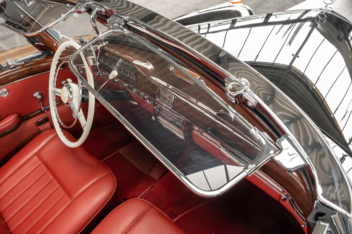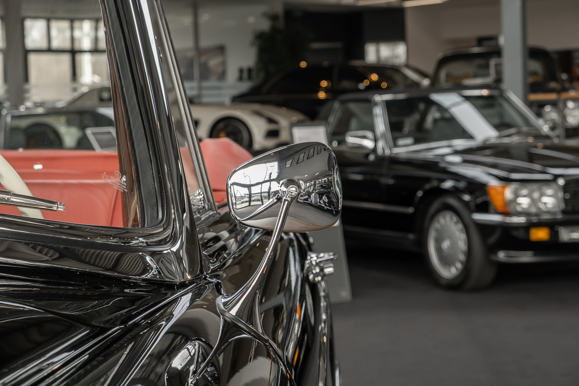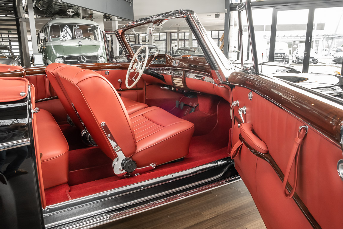 This highly elegant Mercedes-Benz 220S Ponton Cabriolet was delivered to its first owner in the spring of 1957 via Mercedes-Benz Los Angeles, California/USA. The car remained in sunny California all these years. In 1972 it was sold via Auto Europa in West Hollywood to Mr. Stan Silverman, in Fremont California. In 1978 the car was bought by Mr. John H. Welborne in Los Angeles, California and in 2016 it came into the possession of the Mercedes-Benz partner BRABUS in Bottrop. Here it was completely restored to the highest standards for a customer and collector. The result is a dream: strictly according to data card, the pontoon was brought to new life. The new car-like condition makes the elegant convertible sparkle and shine like a gemstone. The engine runs silky smooth, the transmission shifts like a new car. Everything is in top condition. The collector has only moved the car from time to time, to avoid stationary damage. The car has always been parked in a dehumidified, air-conditioned hall. Maintenance work was carried out at the Classic Stars of Rosier in Oldenburg. Now, due to a change in collection, the car is to be sold into a new loving hand. A unique chance for a collector's item in best quality. We are happy to advise you.