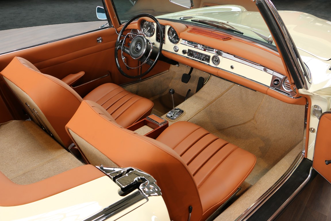 Diese 230 SL Pagode W113 wurde nach dem Grundsatz der Mercedes-Benz Philosophie restauriert: „Das Beste, oder nichts.“ Absolut jede Baugruppe wurde im Detail befundet und im Anschluss in akribischer Genauigkeit wieder zusammengesetzt. Oberste Priorität war es, der Werksauslieferung möglichst nahe zukommen. Für alle nicht mehr lieferbaren originalen Mercedes-Benz Ersatzteile wurden individuelle Lösungen gesucht und gefunden. Teile wurden neuaufgearbeitet bzw. durch hochwertige Teile ersetzt oder nachkonstruiert. Lackierung, Interieur, Verdeck & die Technik wurden nach Herstellervorgaben restauriert. Alle Maßnahmen für eine Europäisierung wurden veranlasst und umgesetzt. Überzeugen Sie sich selbst von der Qualität des Ergebnisses.