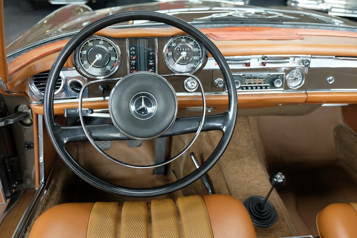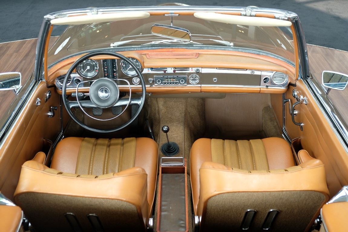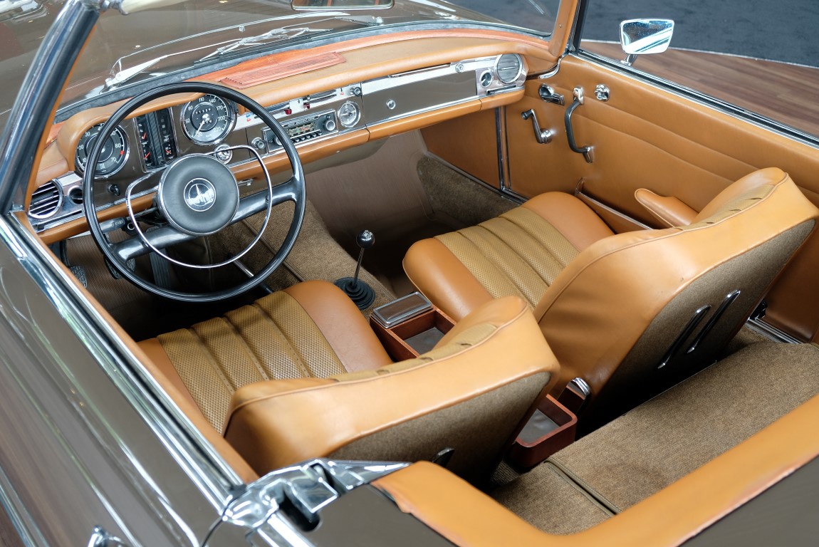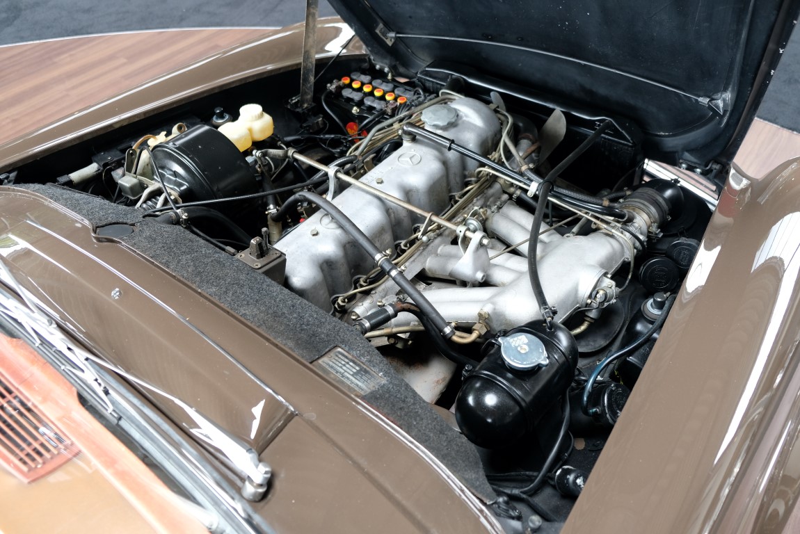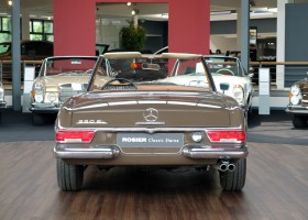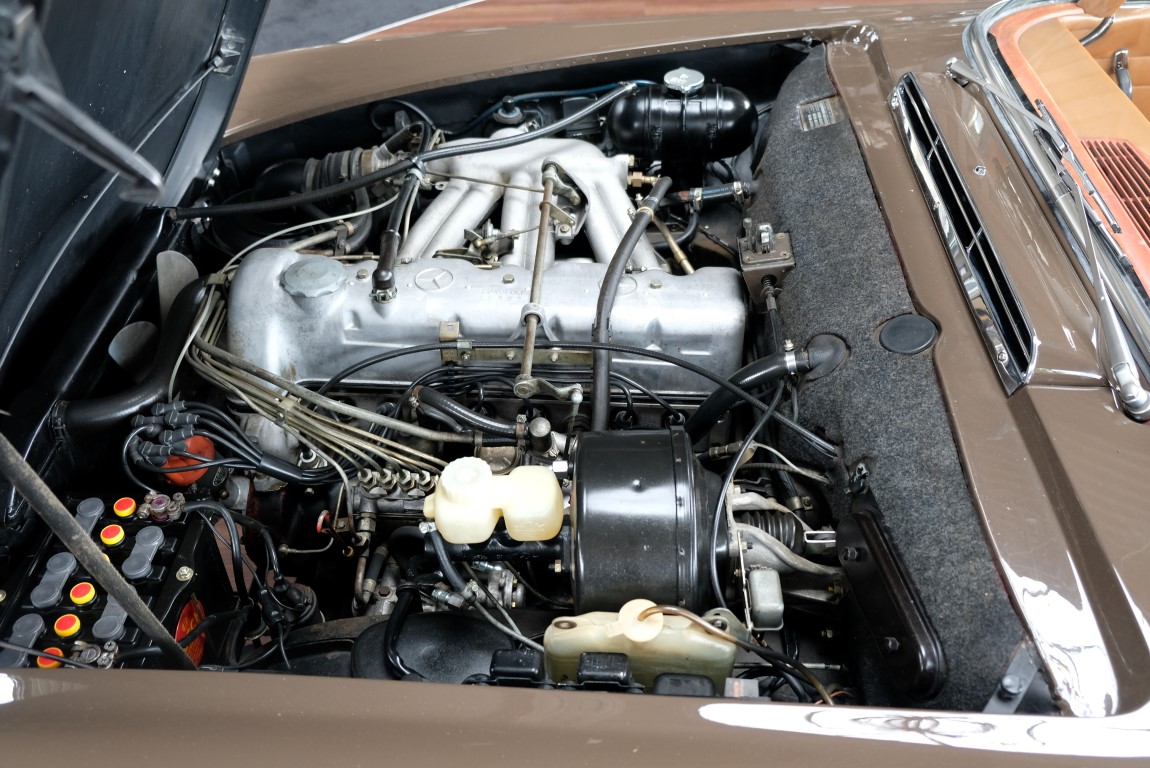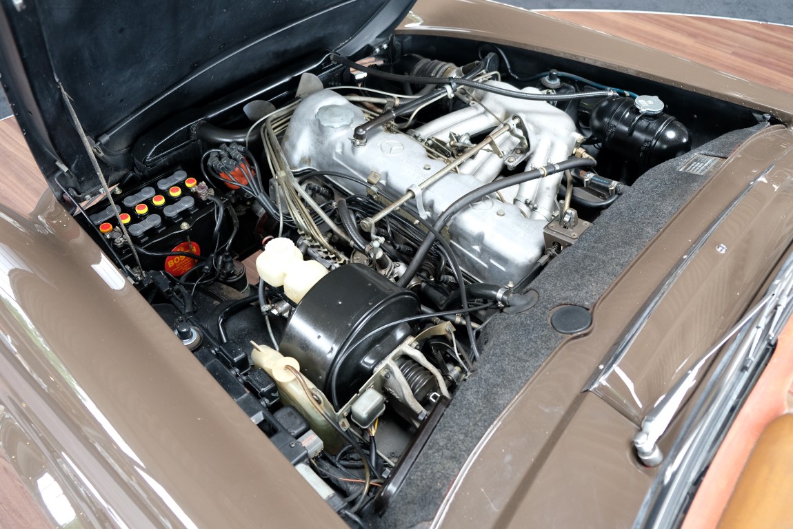 The 250 SL pagoda offered here was delivered on August 2, 1967 to a successful Dealer in Milan / Italy by the Mercedes-Benz Garage Genghini / Milano. The delivery color was Havana brown in conjunction with Havana-brown coupe roof and cognac-colored leather. Hard to beat in elegance was this color combination. The equipment included the very expensive 5-speed gearbox, which is still preserved today, as well as the original engine. The car remained for many years in sunny Italy and came in October 2013 in the possession of a doctor in Geneva / Switzerland. In 2016, the pagoda acquired a Mercedes-Benz partner from Germany and brought him back to his native country. Here he underwent the pagoda of a complex, expert restoration and put the car in its current state of . A pagoda right to drive and enjoy.