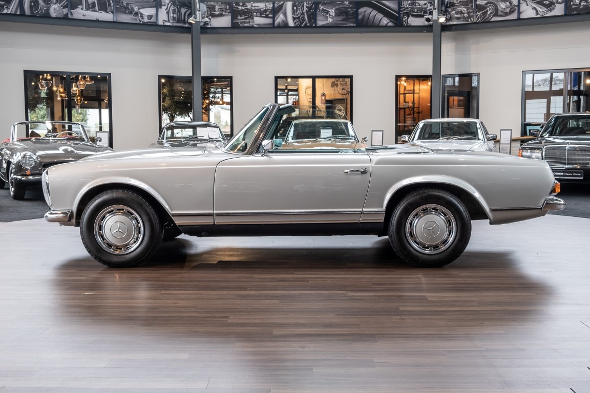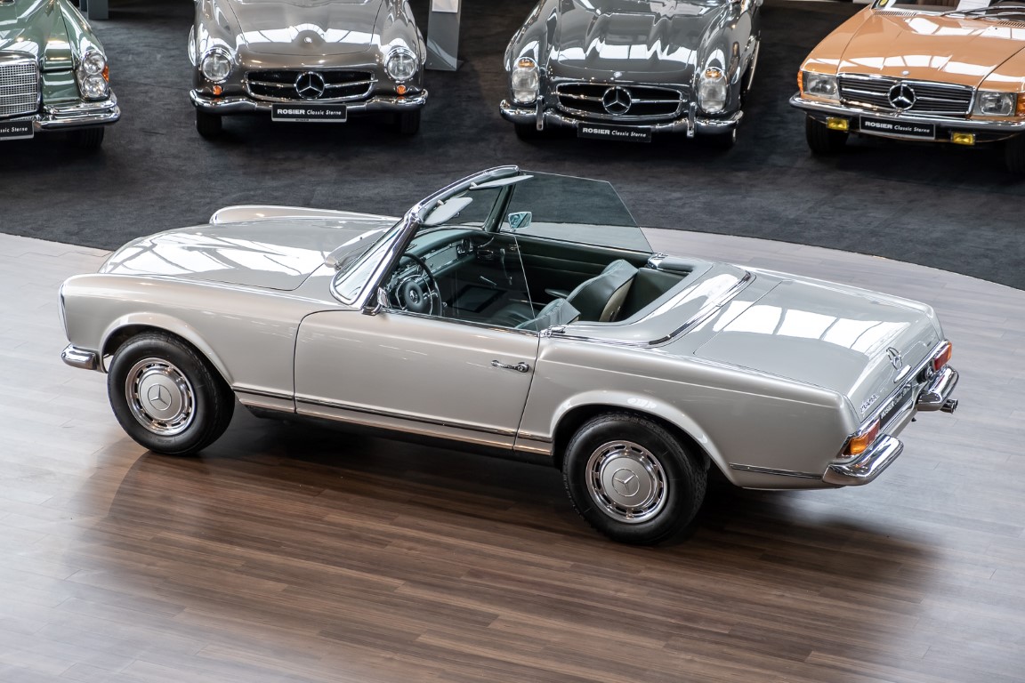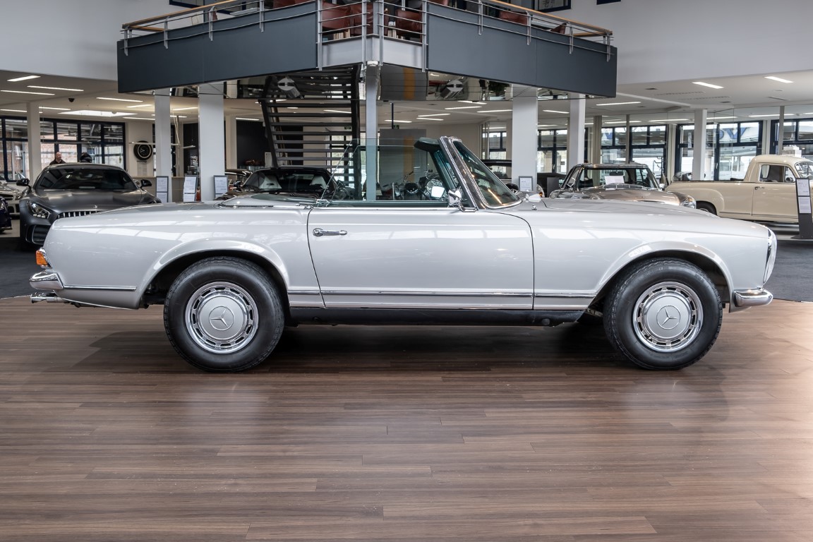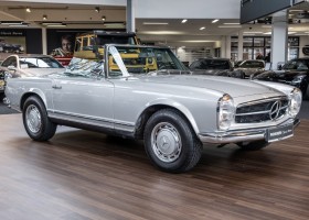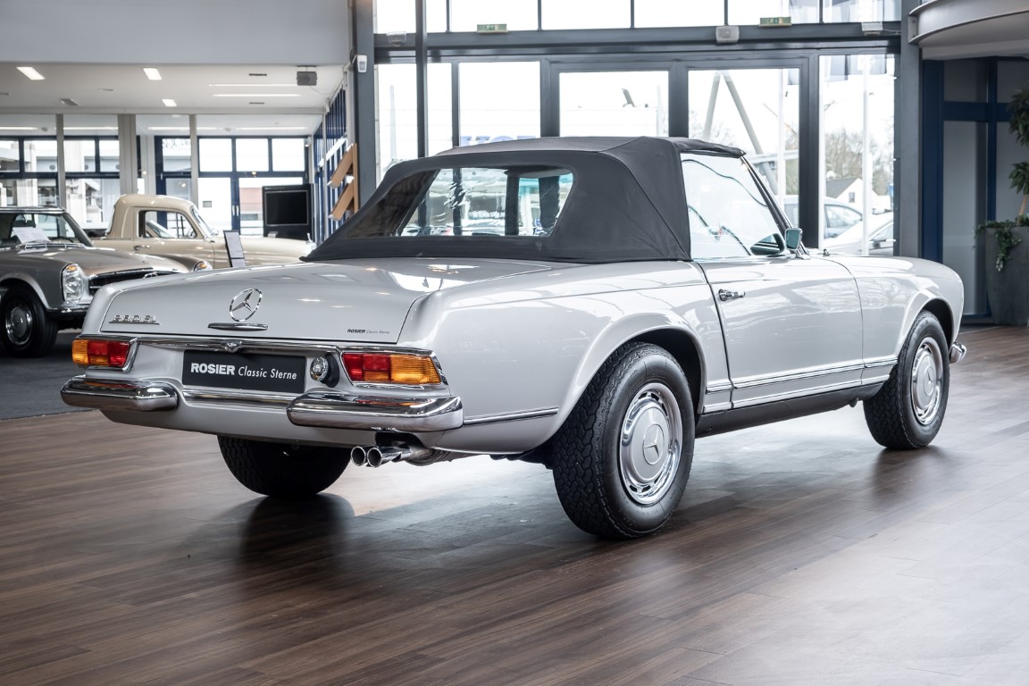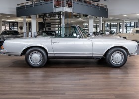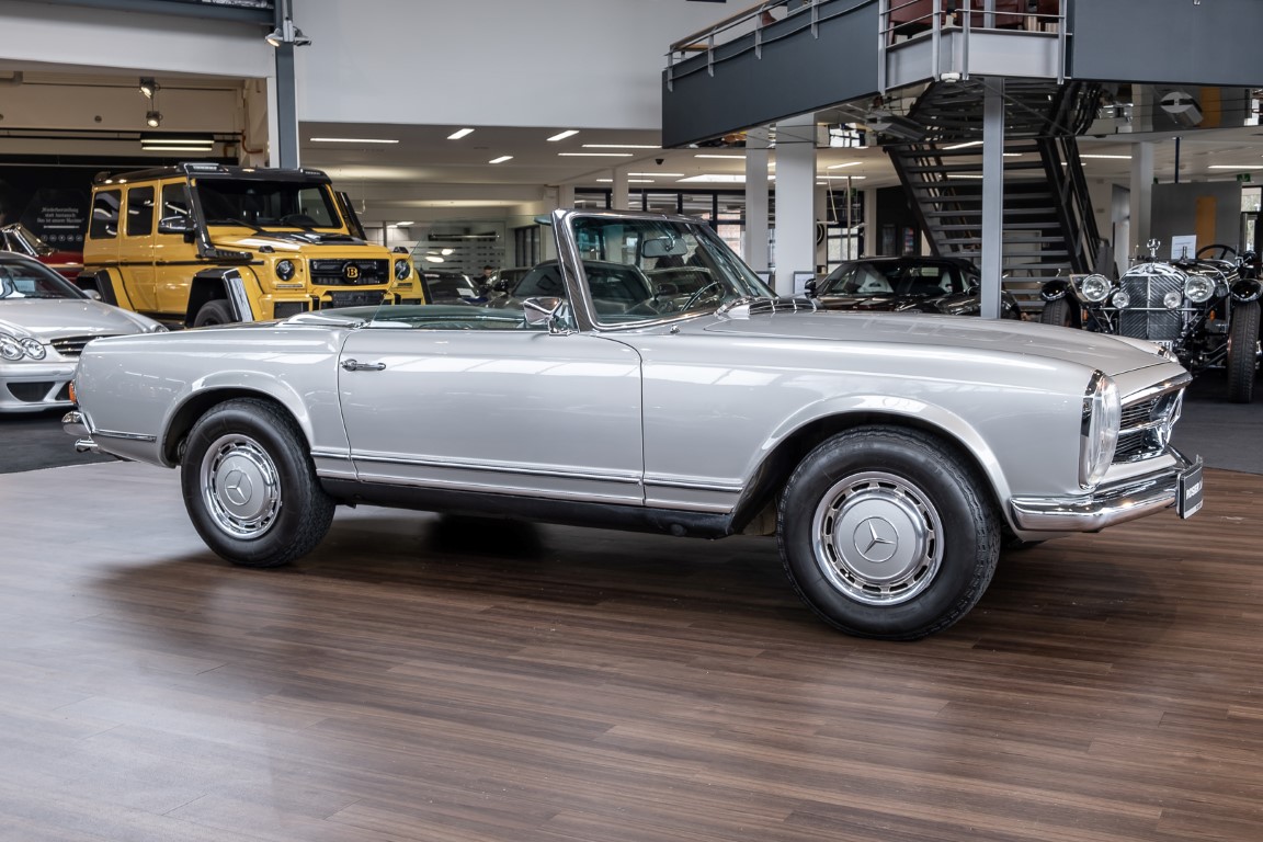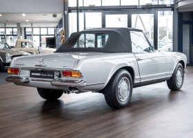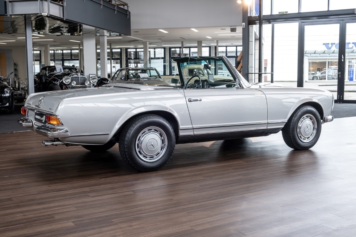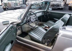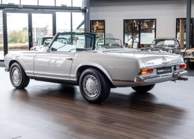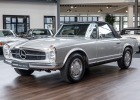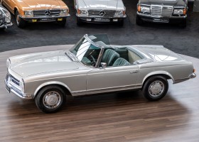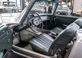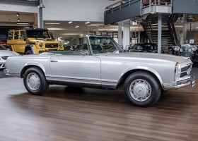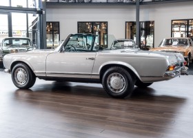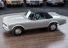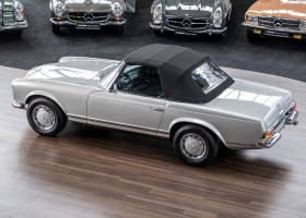 This 280 SL Pagoda has a french design. First delivery and is in a fantastic original condition. The underbody is untouched and sensational for a vehicle of this age. In February 2011 the engine of the roadster was completely disassembled and then completely overhauled. The soft top was renewed. To put a vehicle in this condition after a restoration is impossible, because the light patina is the charm of this authentic pagoda. The original mileage is 58.900 km and can be attested. Technically this SL was carefully checked and revised, all service works are documented comprehensibly since 2011. Data card, service booklet etc. are available in the original. A rare opportunity to purchase such a vehicle with a unique charisma. A great investment.