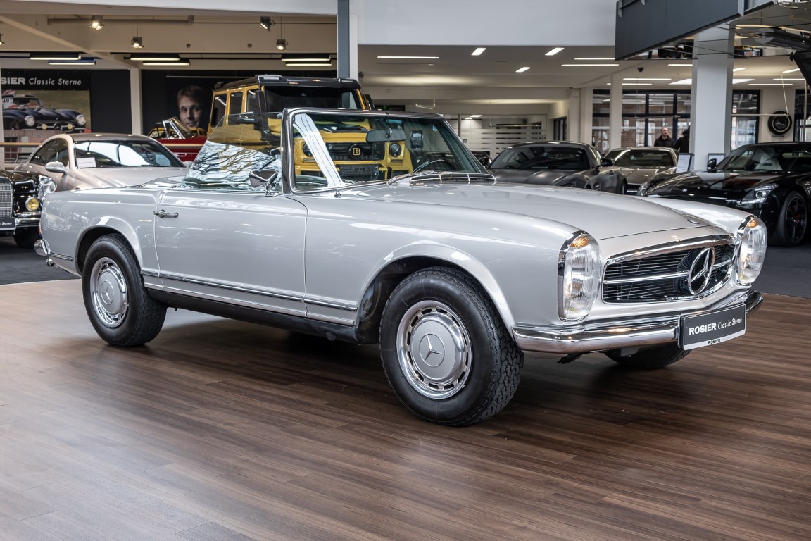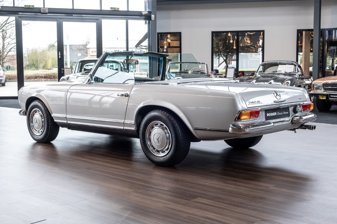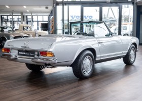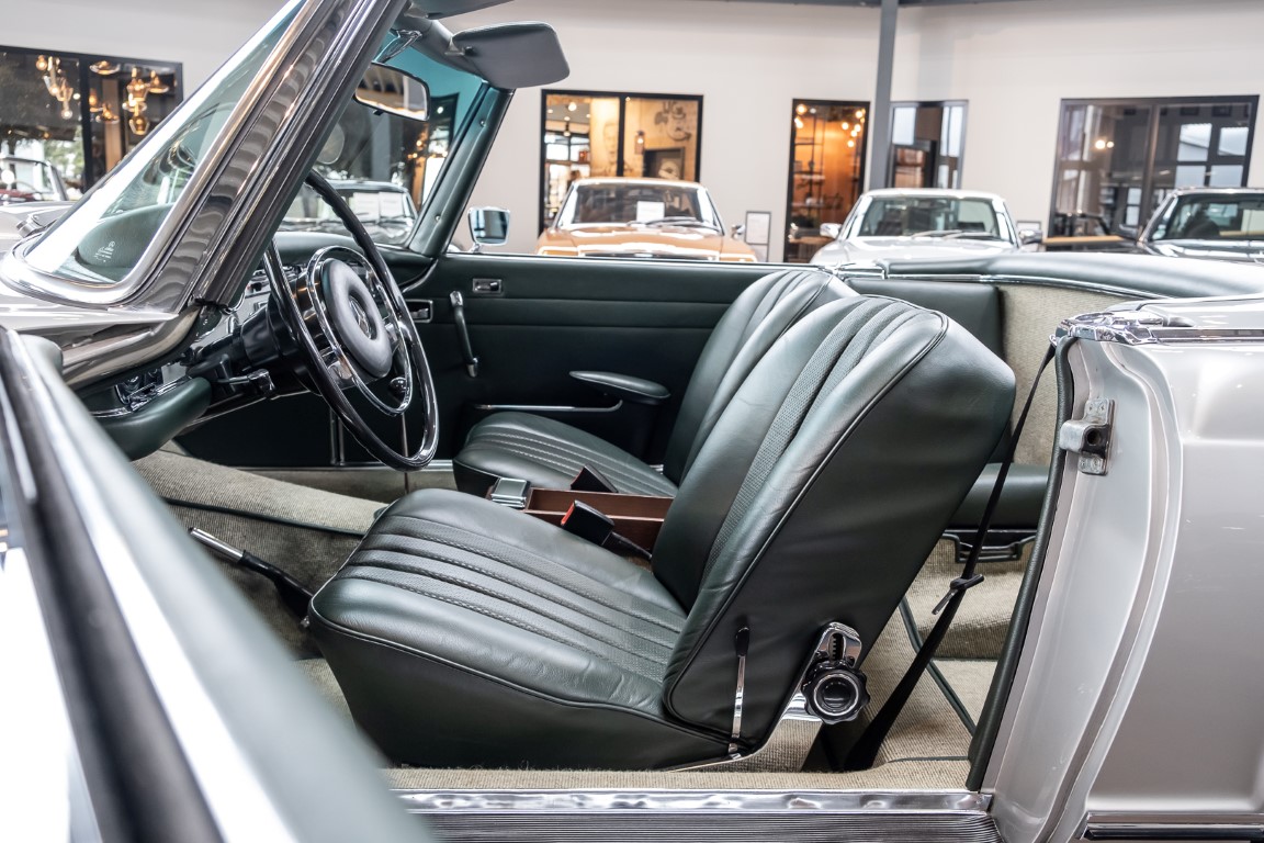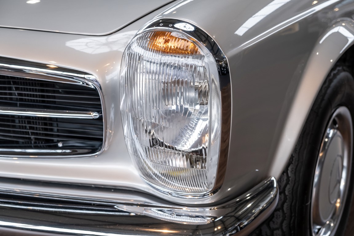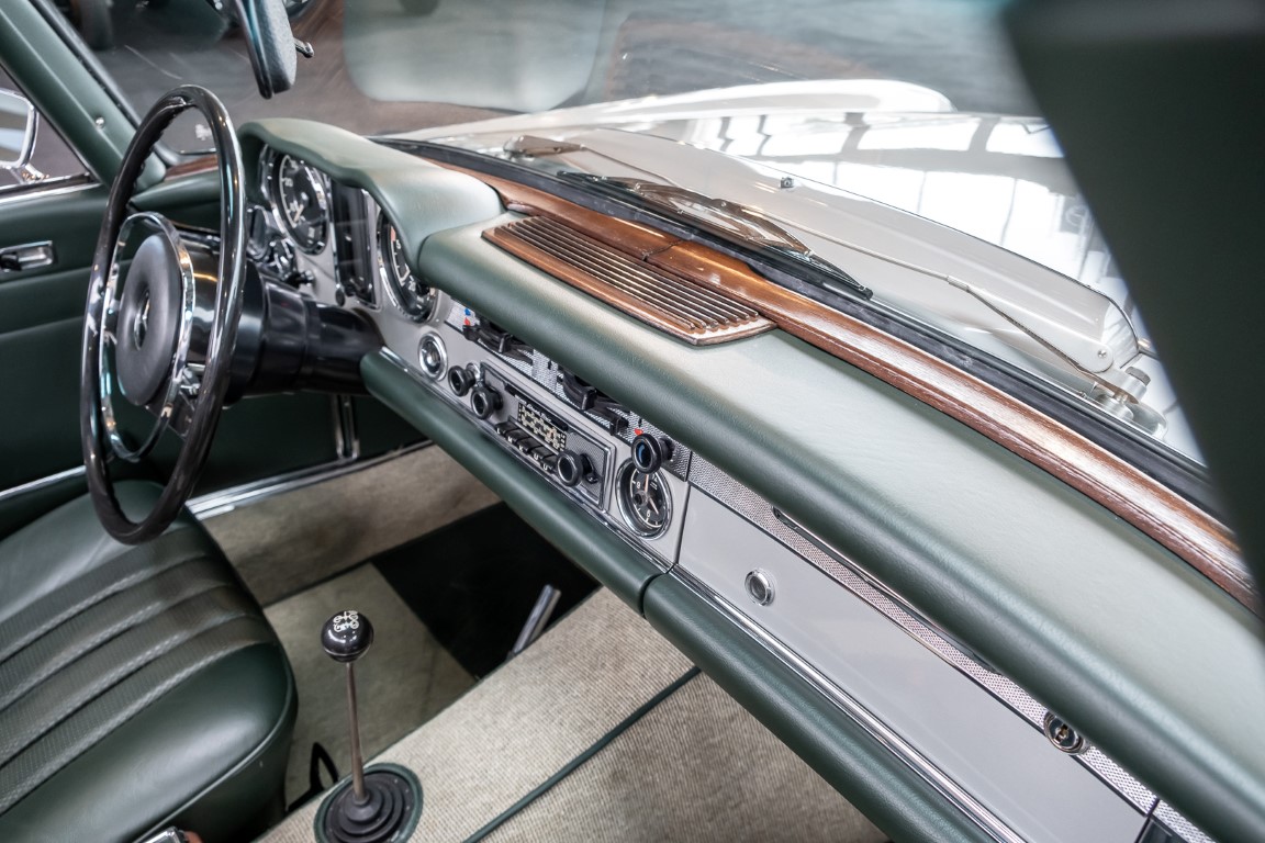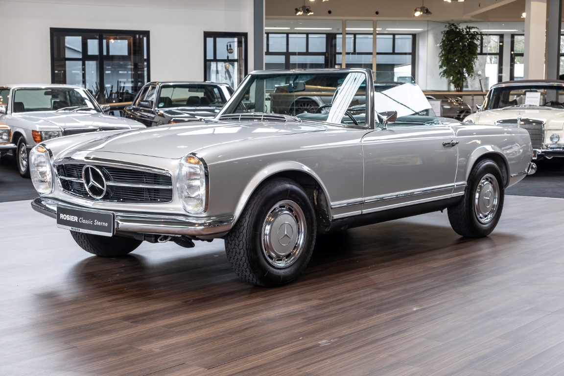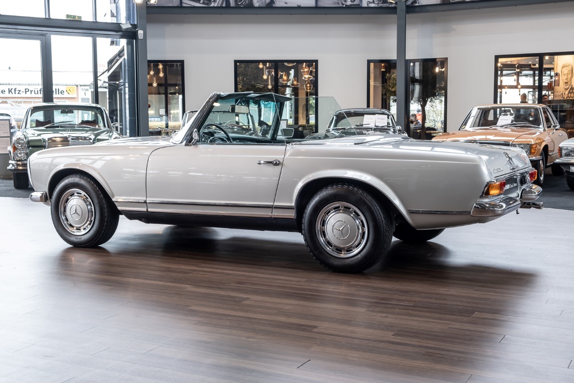 This 280 SL Pagoda has a french design. First delivery and is in a fantastic original condition. The underbody is untouched and sensational for a vehicle of this age. In February 2011 the engine of the roadster was completely disassembled and then completely overhauled. The soft top was renewed. To put a vehicle in this condition after a restoration is impossible, because the light patina is the charm of this authentic pagoda. The original mileage is 58.900 km and can be attested. Technically this SL was carefully checked and revised, all service works are documented comprehensibly since 2011. Data card, service booklet etc. are available in the original. A rare opportunity to purchase such a vehicle with a unique charisma. A great investment.
