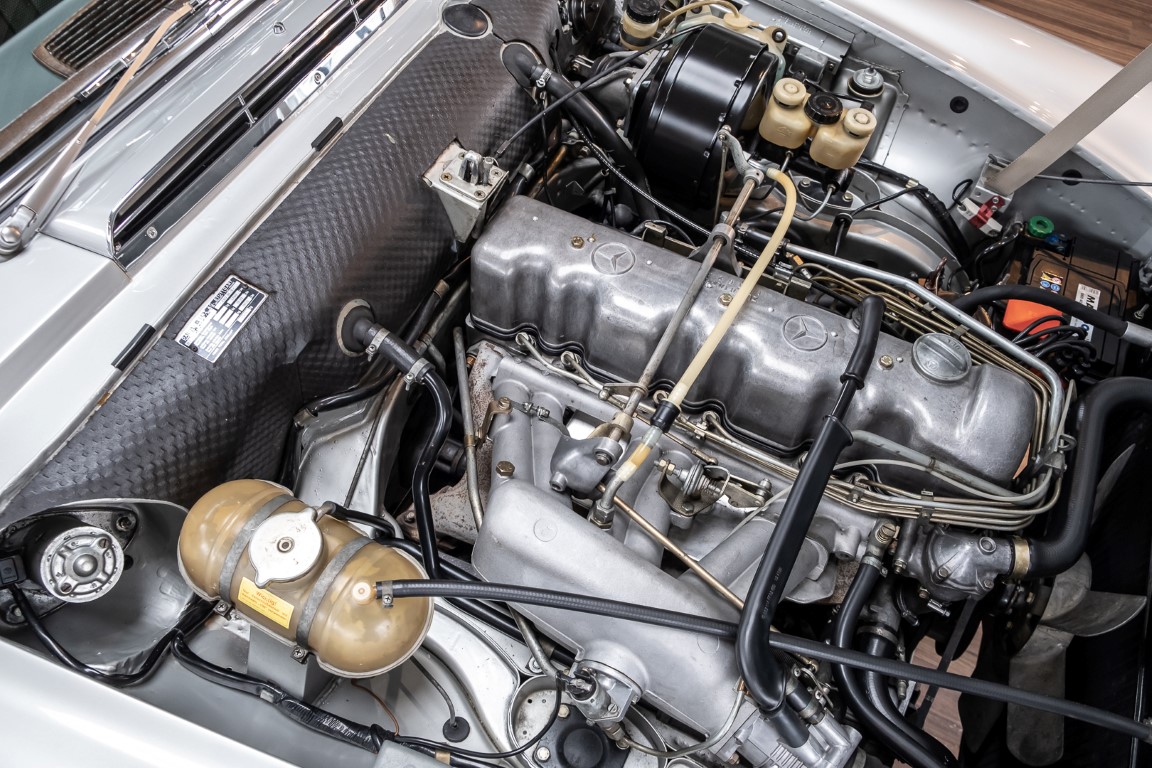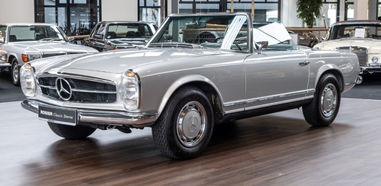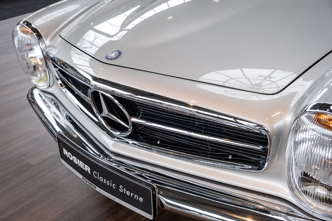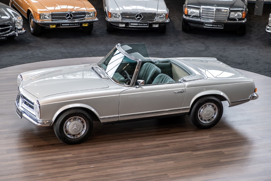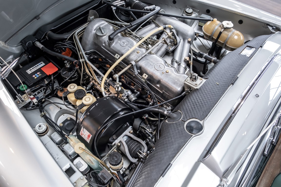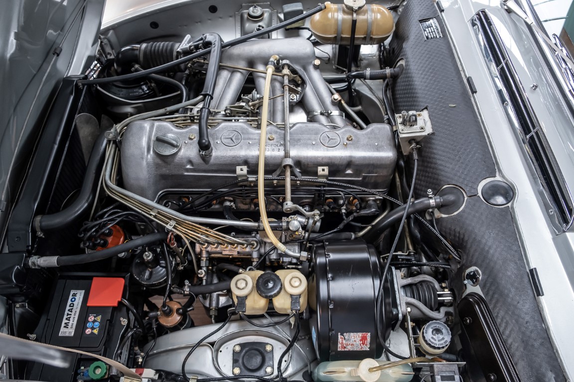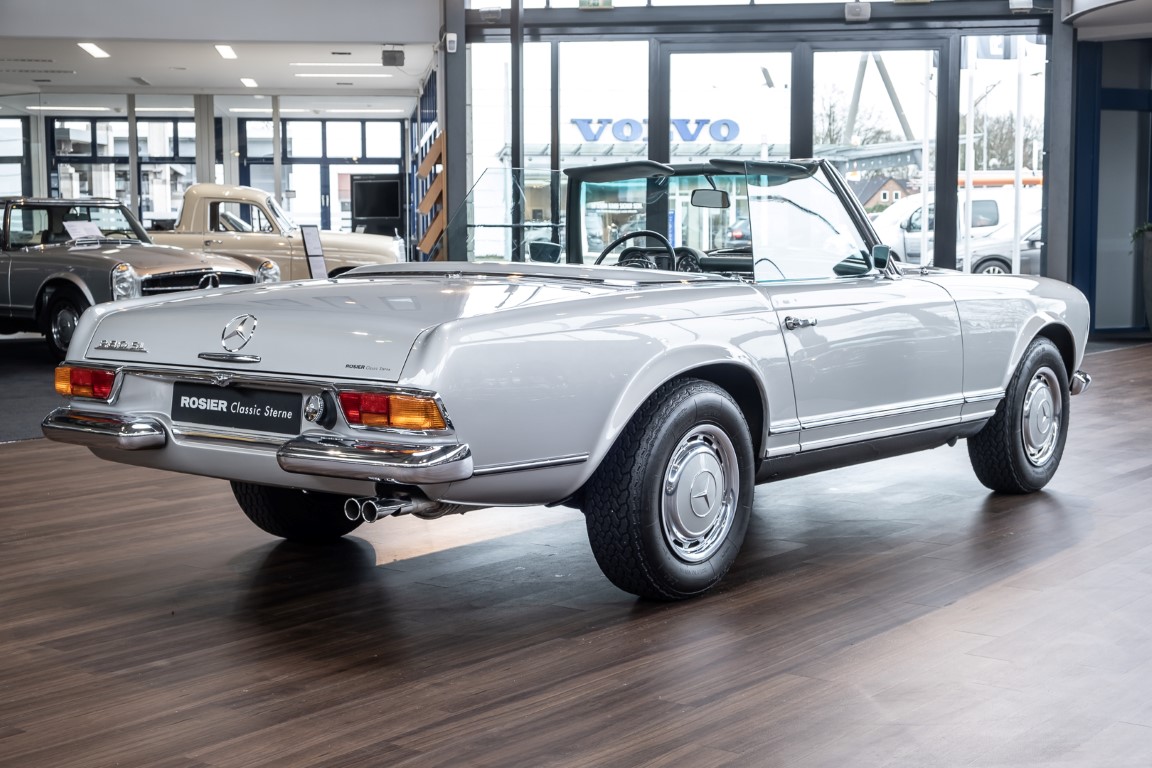 This 280 SL Pagoda has a french design. First delivery and is in a fantastic original condition. The underbody is untouched and sensational for a vehicle of this age. In February 2011 the engine of the roadster was completely disassembled and then completely overhauled. The soft top was renewed. To put a vehicle in this condition after a restoration is impossible, because the light patina is the charm of this authentic pagoda. The original mileage is 58.900 km and can be attested. Technically this SL was carefully checked and revised, all service works are documented comprehensibly since 2011. Data card, service booklet etc. are available in the original. A rare opportunity to purchase such a vehicle with a unique charisma. A great investment.