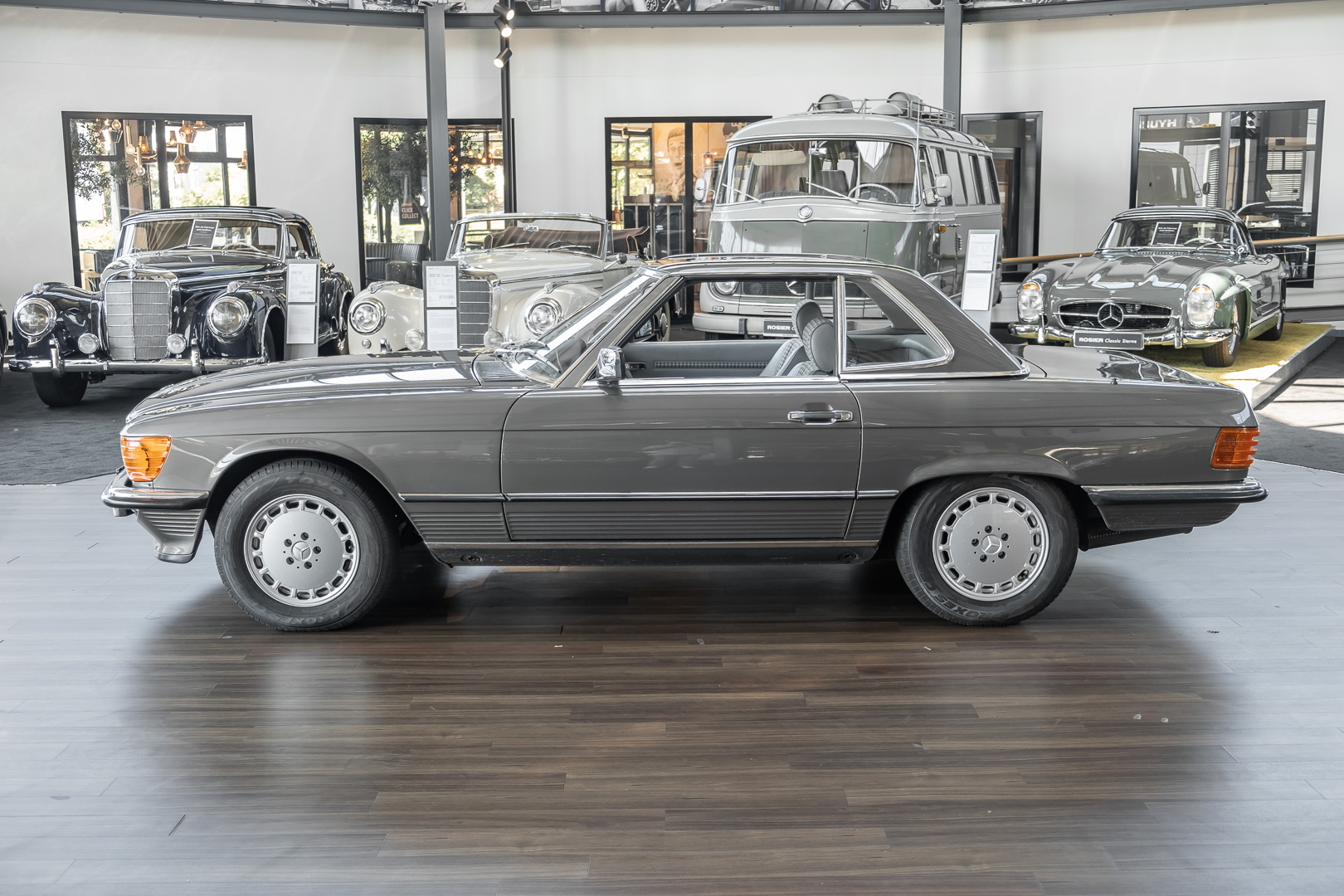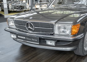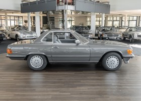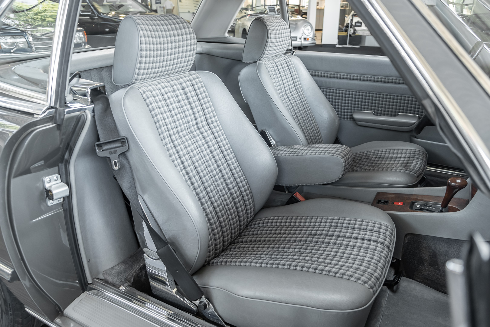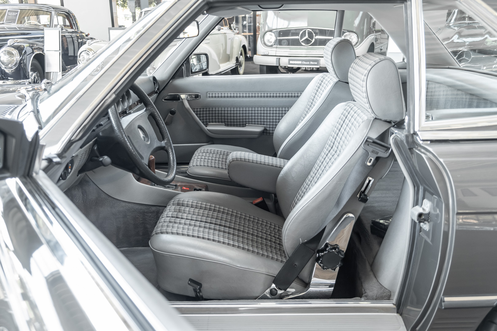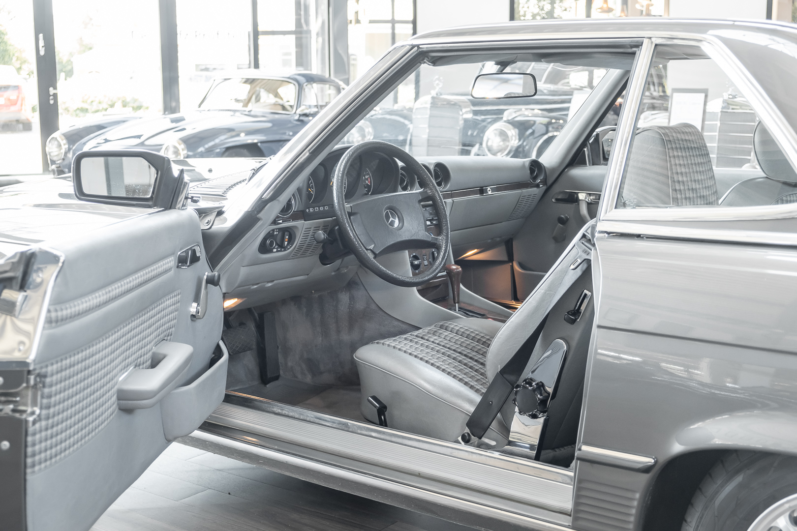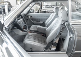 New in the showroom: 300 SL of the 107 model series in anthracite gray metallic in perfect combination with gray check fabric seats. With a mileage of only 41,000 km and a well-maintained Mercedes service booklet this 300 SL presents itself in top condition without exception. The vehicle is currently being reconditioned, further information will follow.