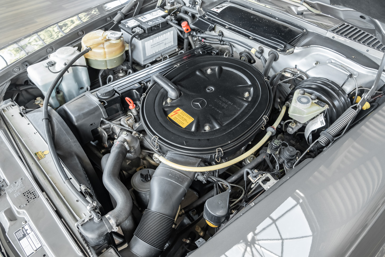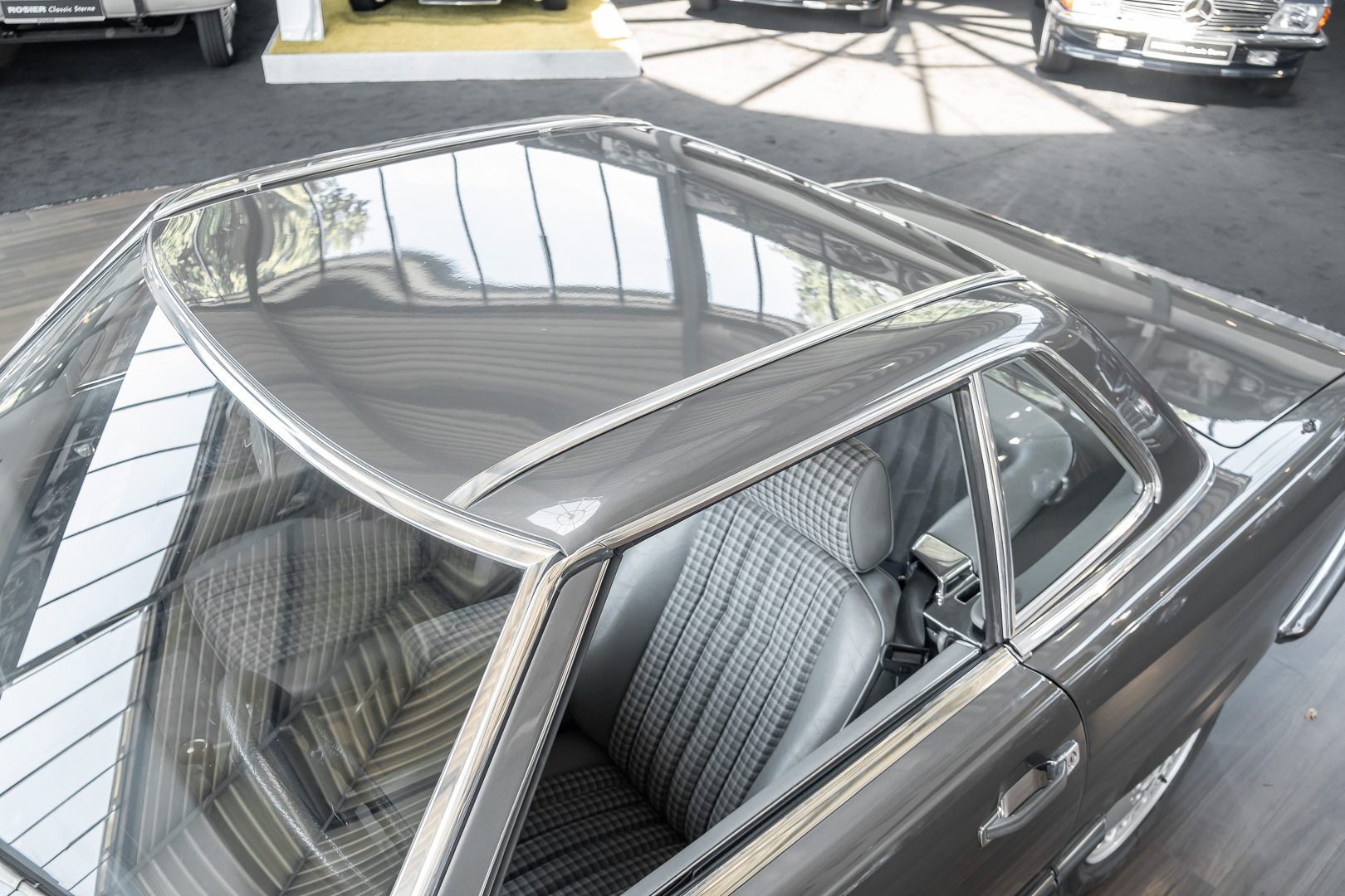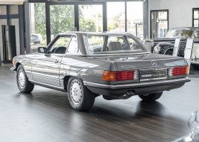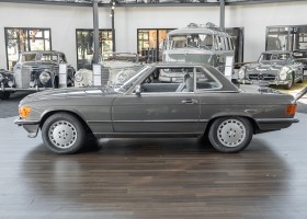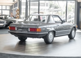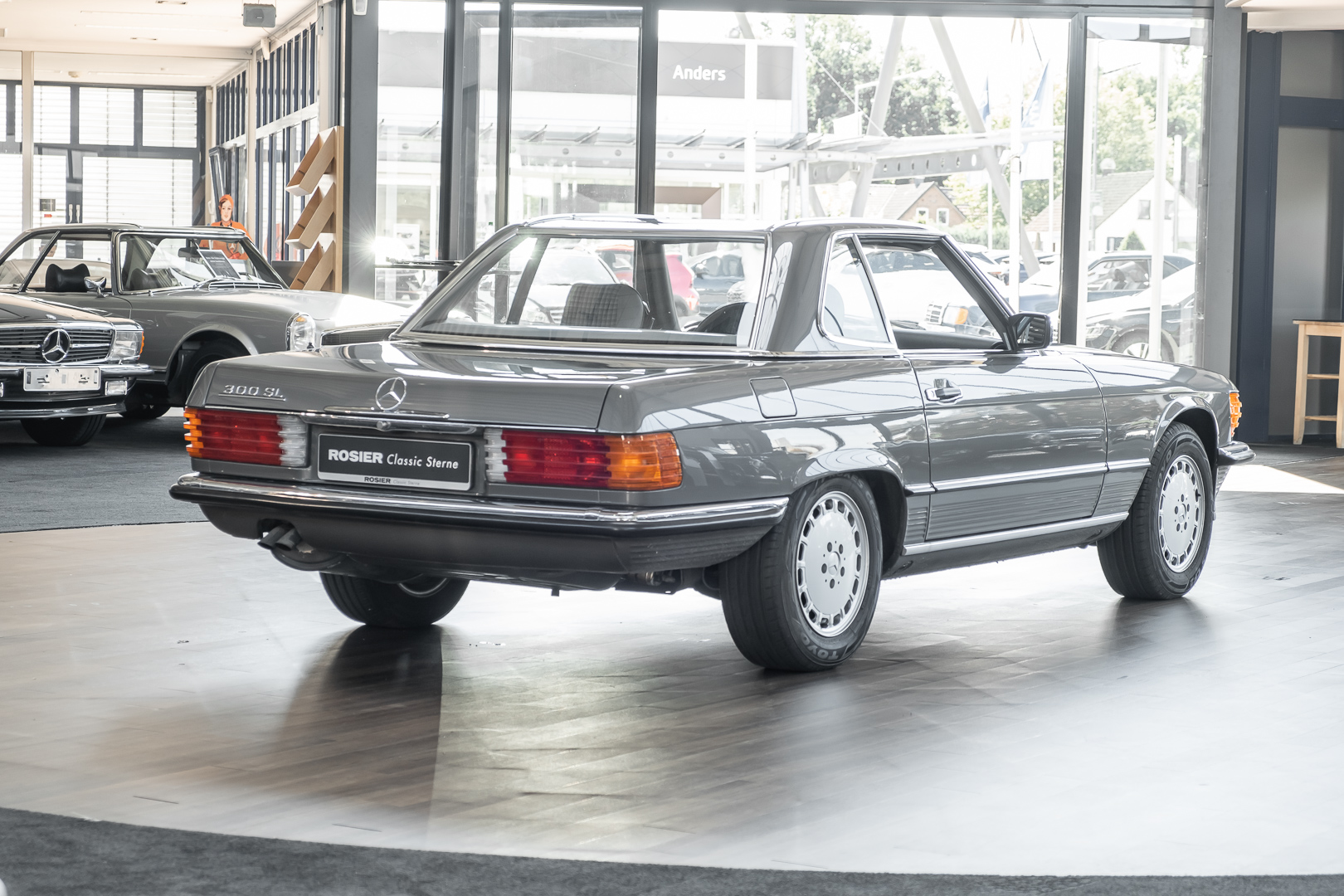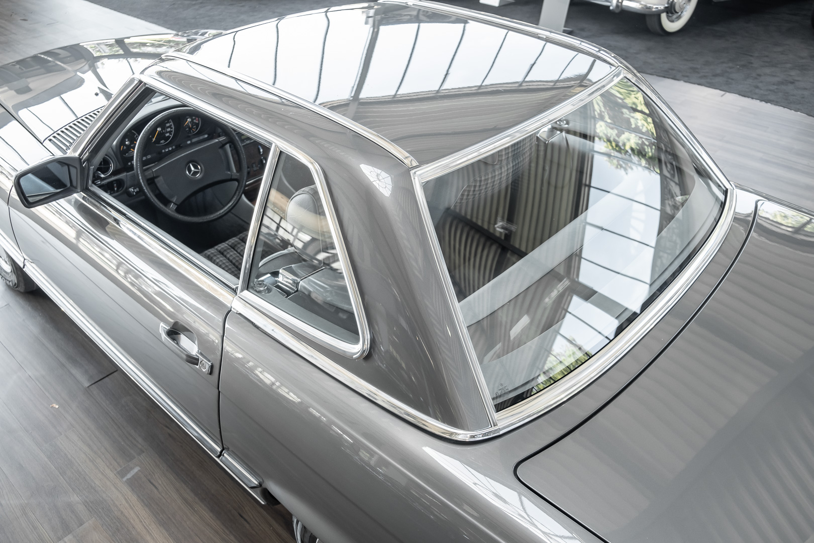 New in the showroom: 300 SL of the 107 model series in anthracite gray metallic in perfect combination with gray check fabric seats. With a mileage of only 41,000 km and a well-maintained Mercedes service booklet this 300 SL presents itself in top condition without exception. The vehicle is currently being reconditioned, further information will follow.
