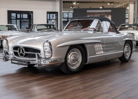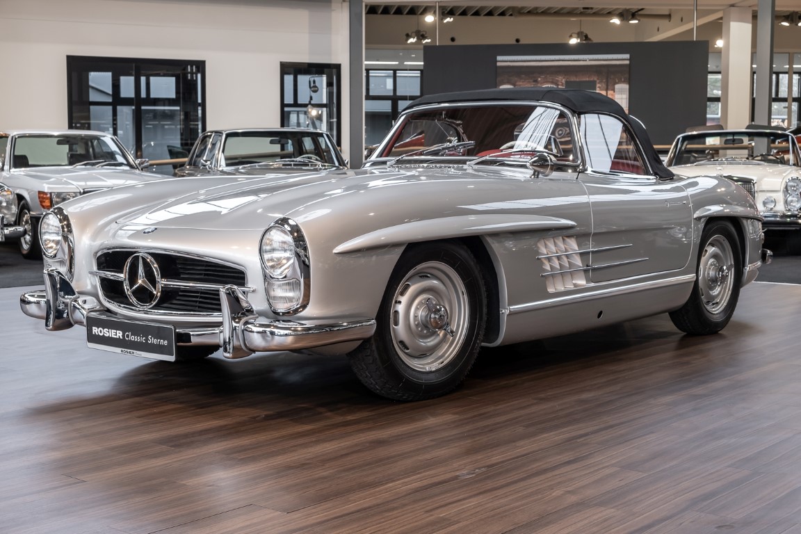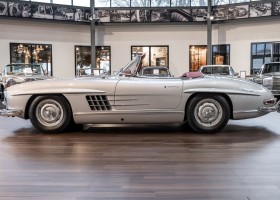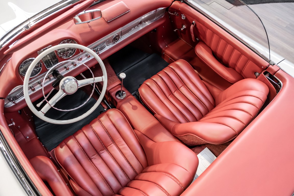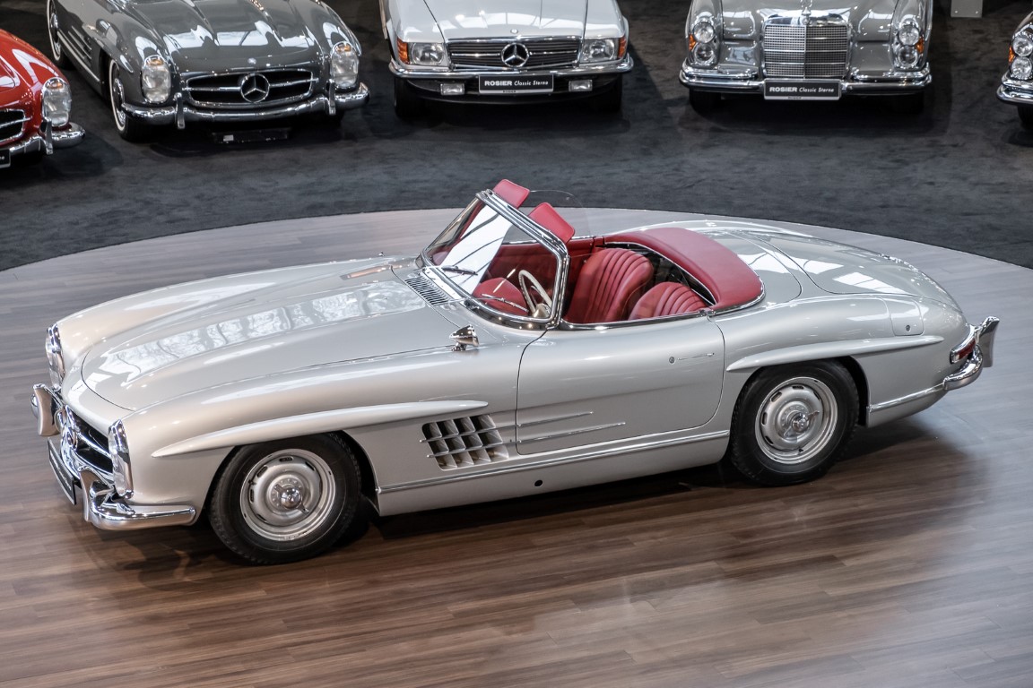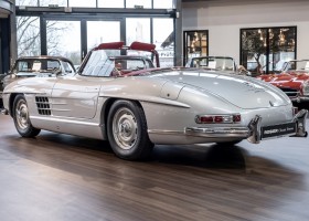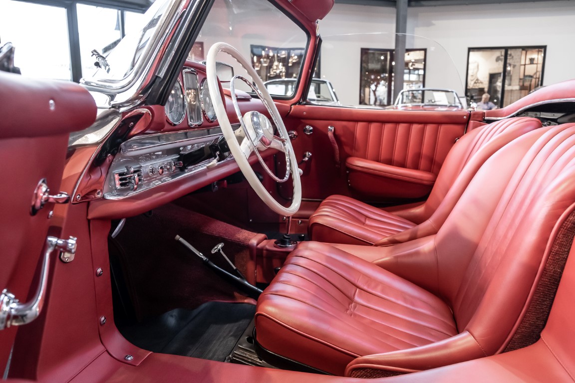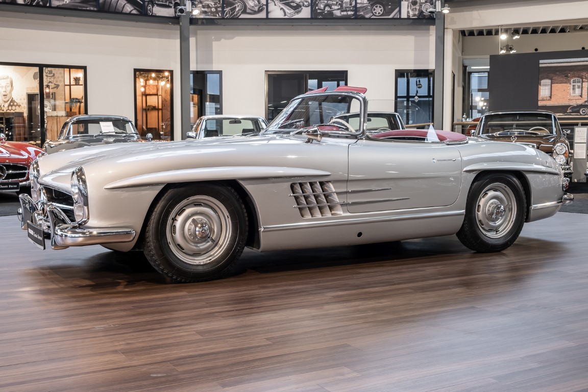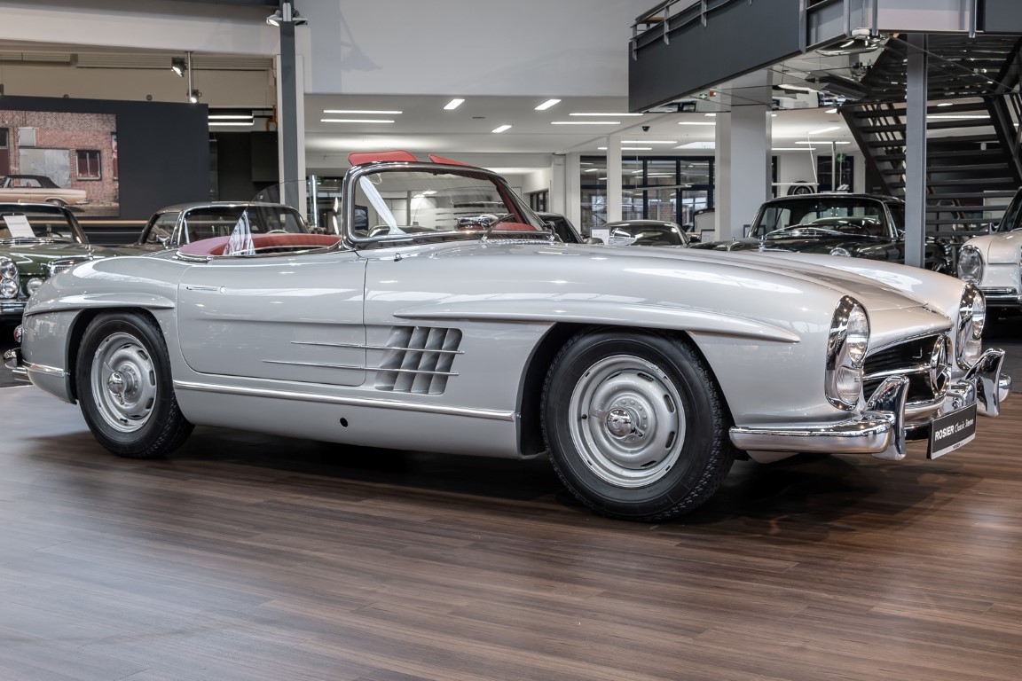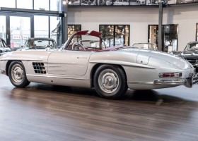 This Mercedes-Benz 300SL Roadster was completed in the factory on 9 December 1957 and made available for delivery to the customer. The first owner was the ROMA garage of Robert May & Sohn in the east of Frankfurt am Main. The car was subsequently sold to the USA. Bob Estes, a very well known car collector had brought it from Virginia in 1997 and included it in his collection. The documented speedometer reading at that time was 84,514 mls. Bob Estes hardly ever drove the car and handed it over to his son Dale Estes, who obviously did not find the time to drive the elegant roadster either. In 2001 the car was purchased by the renowned Mercedes classic expert Scott Grundfor in Kalamazoo Michigan. The excellent condition of the car and today's speedometer reading of only 84,983 indicates that the car has also undergone a major overhaul here. In 2001 the car went to Dr. Morton C. Wellington in Jacksonville/Florida, a lover and also collector of classic cars. Dr. Wellington is well known in the local classic car scene for his participation in top-class Concours events with his 1926 Rolls-Royce Piccadilly Roadster. 2012 the elegant 300SL Roadster was acquired by Richard Wolf, a respected history professor at the University of Santa Barbara. Afterwards the vehicle was added to an exquisite collection of exquisite individual pieces, from which the vehicle is now being sold. A uniquely beautiful matching numbers roadster in original paint and interior color scheme, equipped with rare Rudge hub caps. Do not miss it.